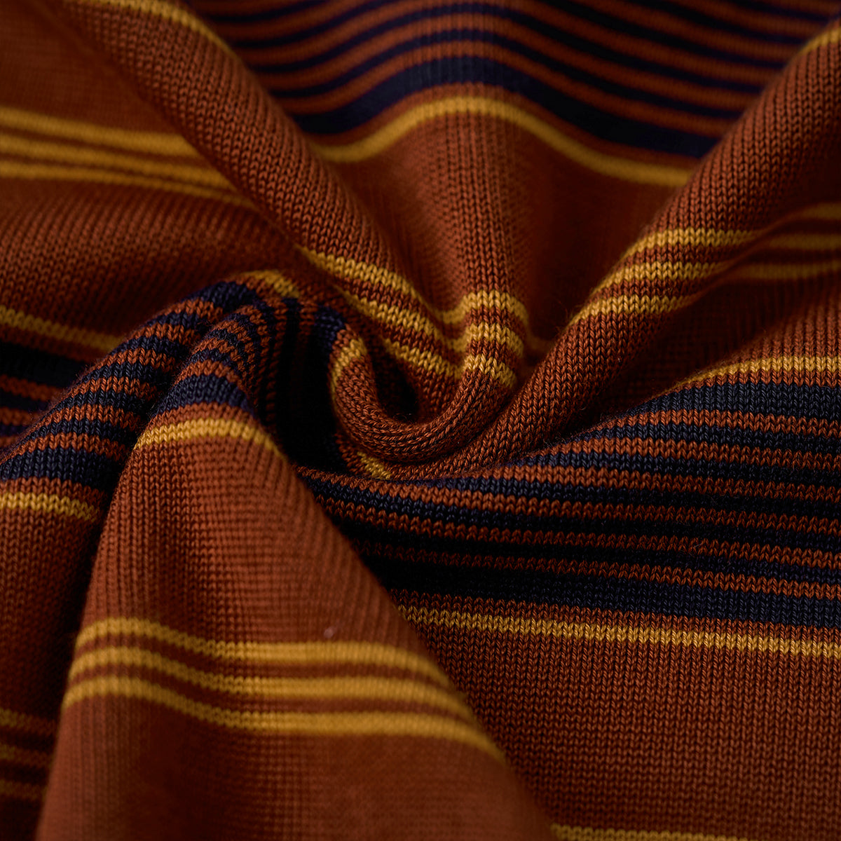 太さや間隔の異なるラインが複数並び、単調にならないデザイン。細いボーダーが太いラインの間を埋めることで、視覚的に複雑さと奥行きを演出。各ボーダーは色のコントラストが強すぎず、全体的に調和が取れている。