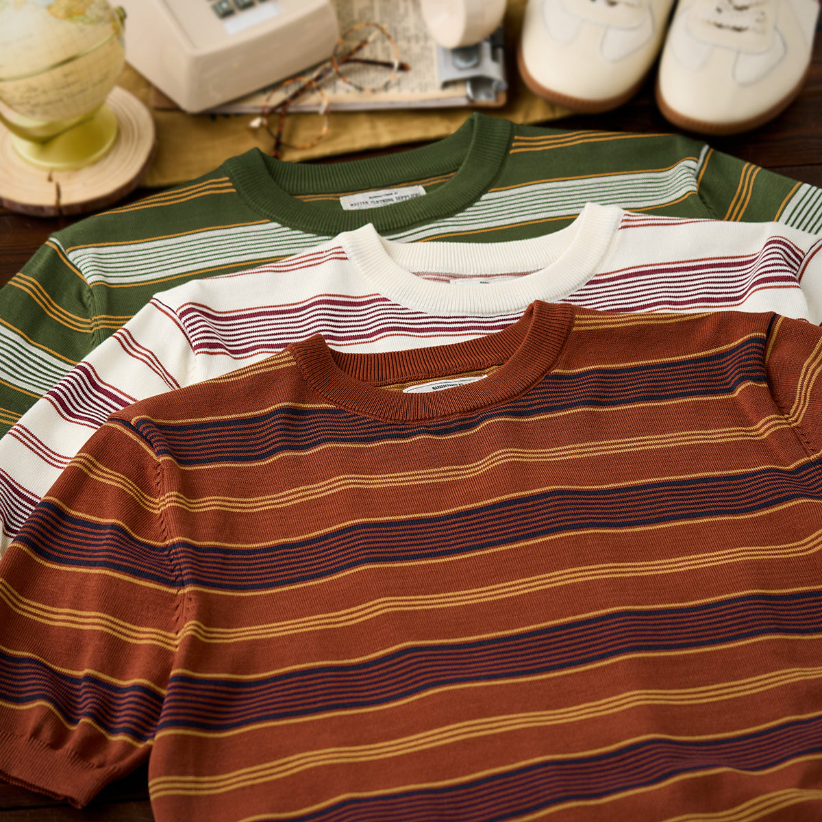 4色展開 マルチボーダーニットヘビーウェイトTee