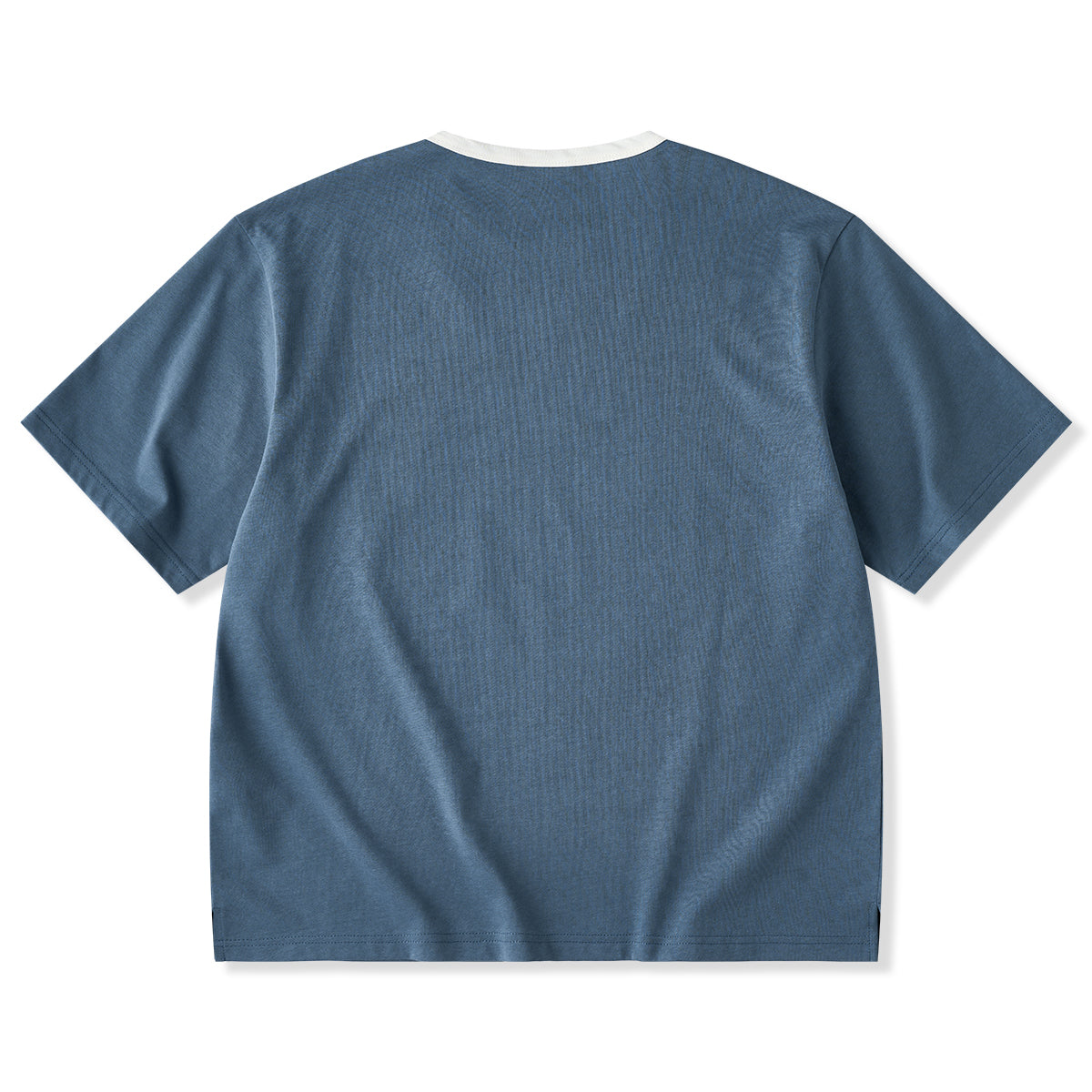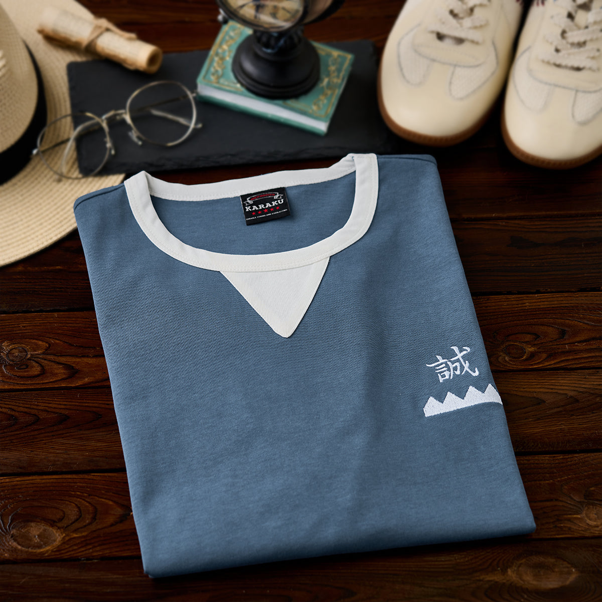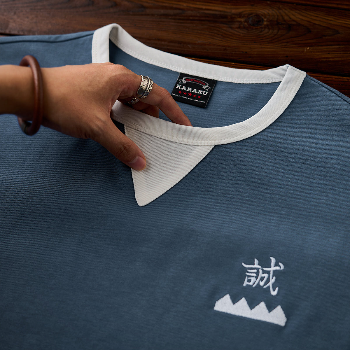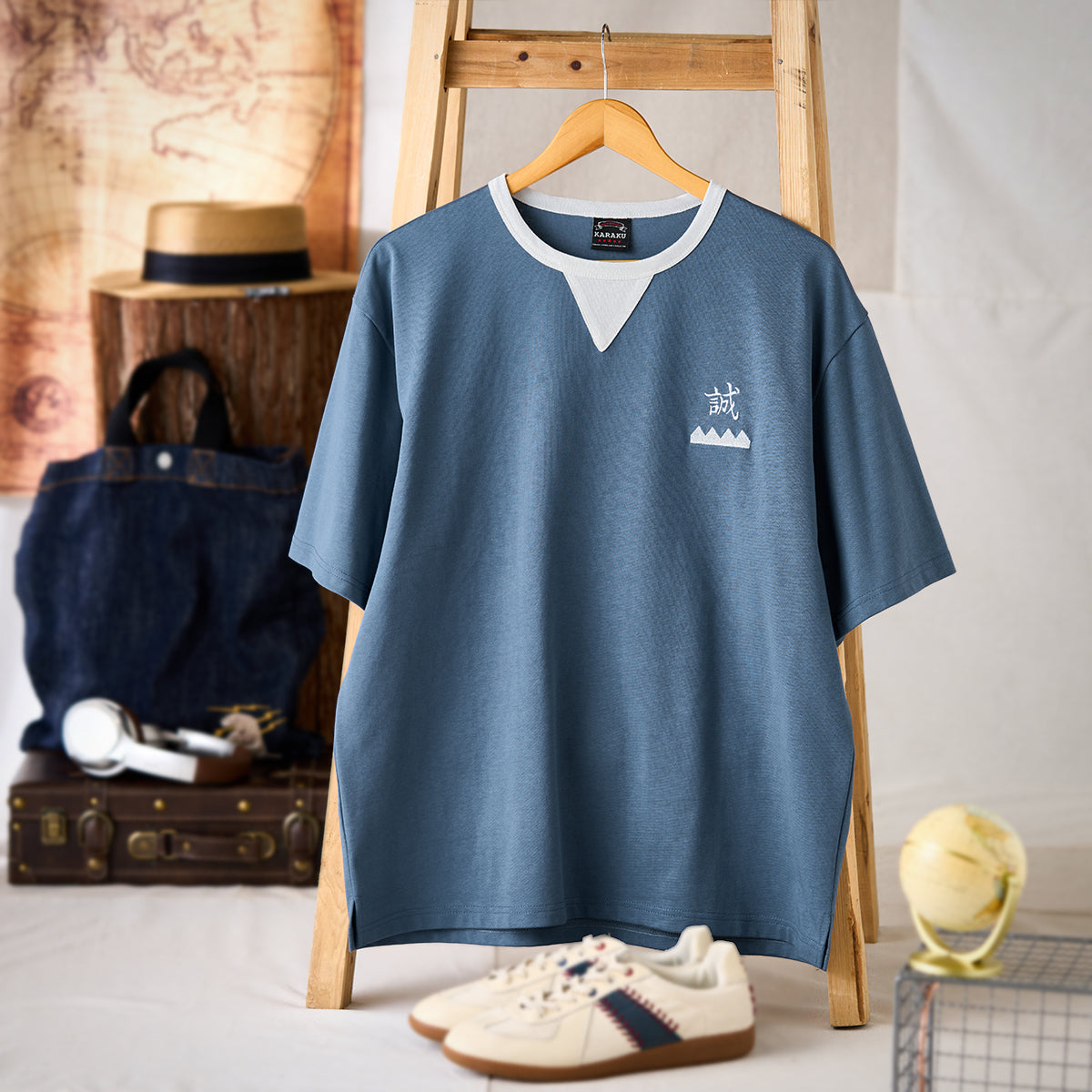 「誠」ワンポイント刺繍 襟配色切り替えコットンTee