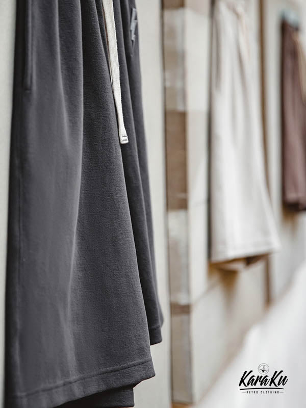 スポーティーかつカジュアルな雰囲気で、普段使いがしやすい、そして何より履き心地楽ちんなコットンショーツが登場!汎用性抜群のスウェット風パンツがショーツタイプになってリリース。使い勝手が抜群で様々なシーンにピッタリの一点です。デザインの面では、汗が溜まりやすいウエスト部は、高ストレッチニットで快適さを向上しています。更に、ウエスト部は刺繍に仕上げているので、立体感があるデザインがさりげないワンポイント。ウエストゴム入りで着脱も簡単でサイズ調整も自由自在。ちょうど5分丈に仕立てたシルエットは、カジュアルさと上品さを両立します。これからの暑い時期に1枚持っておくと便利で使い勝手のあるアイテム。シンプルなデザインでコーディネートしやすく、街からアウトドアシーンで着用できます。