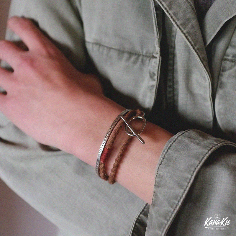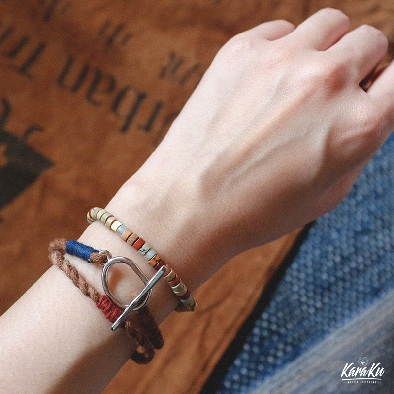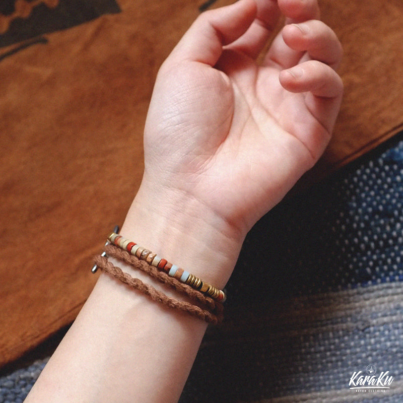 同時に、このブレスレットは持続可能な発展と環境保護への関心も伝えています。植物染め手紡ぎ綿麻糸は天然の染料を使用しており、環境への影響を軽減しています。