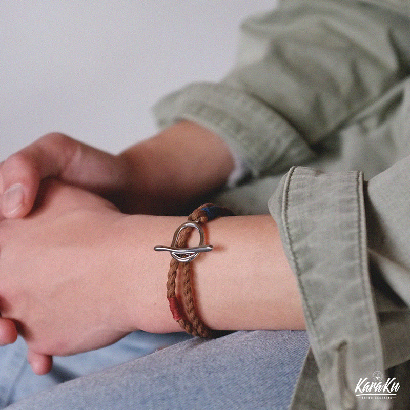 ブレスレットの編み込み技術は手作業で行われ、それぞれの糸はユニークであり、一つとして同じものはない。