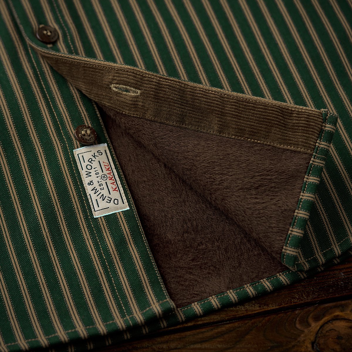 襟や袖口の裏にはコーデュロイ素材を切り替え、