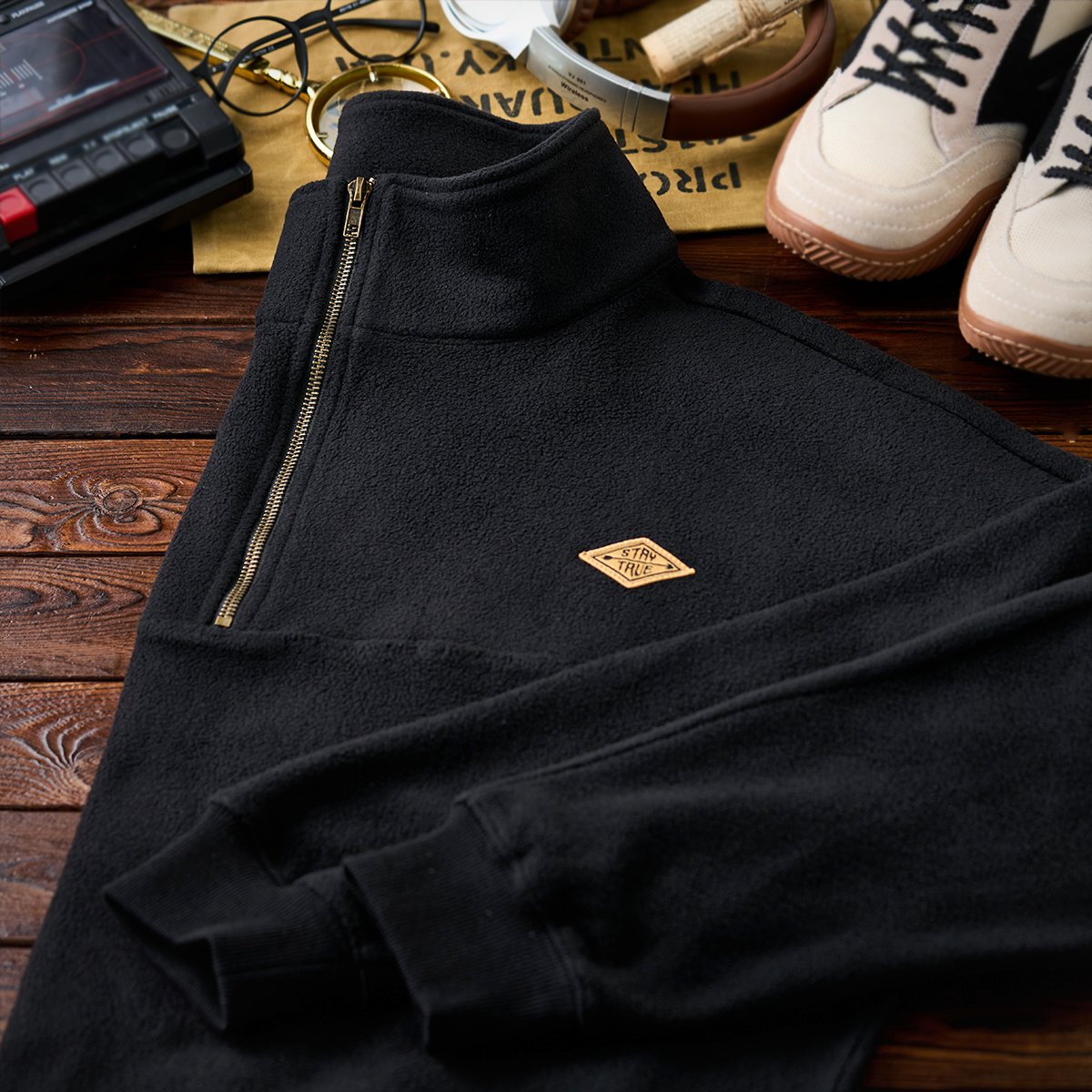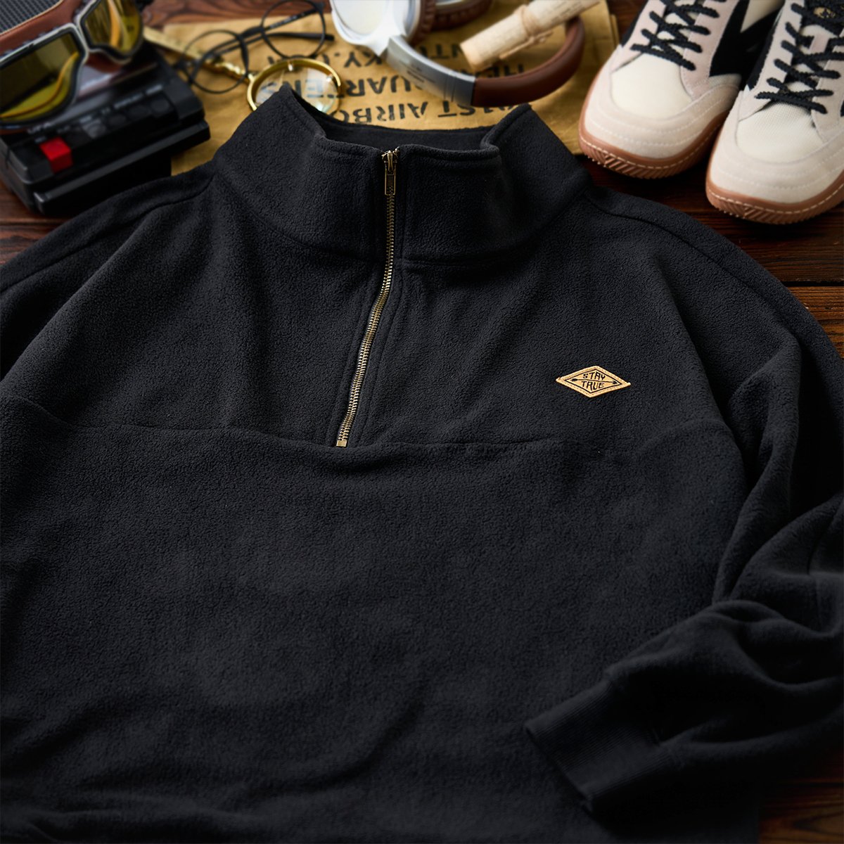 商品名称:「STAY TRUE」刺繍ワッペン カシミヤライクハーフジップハイネックスウェット