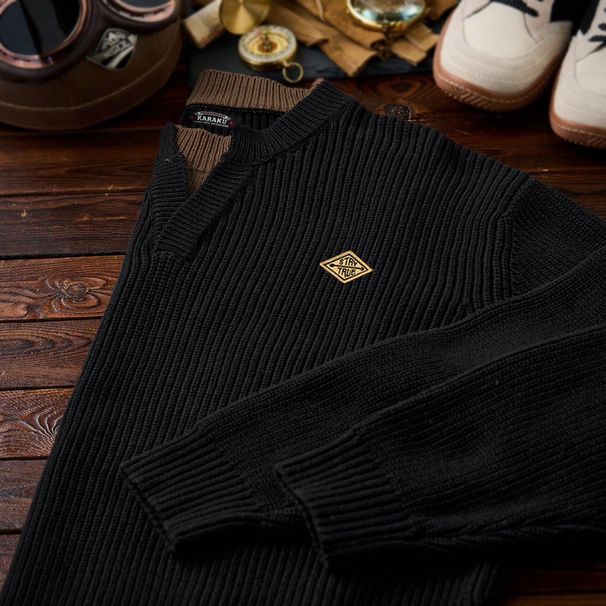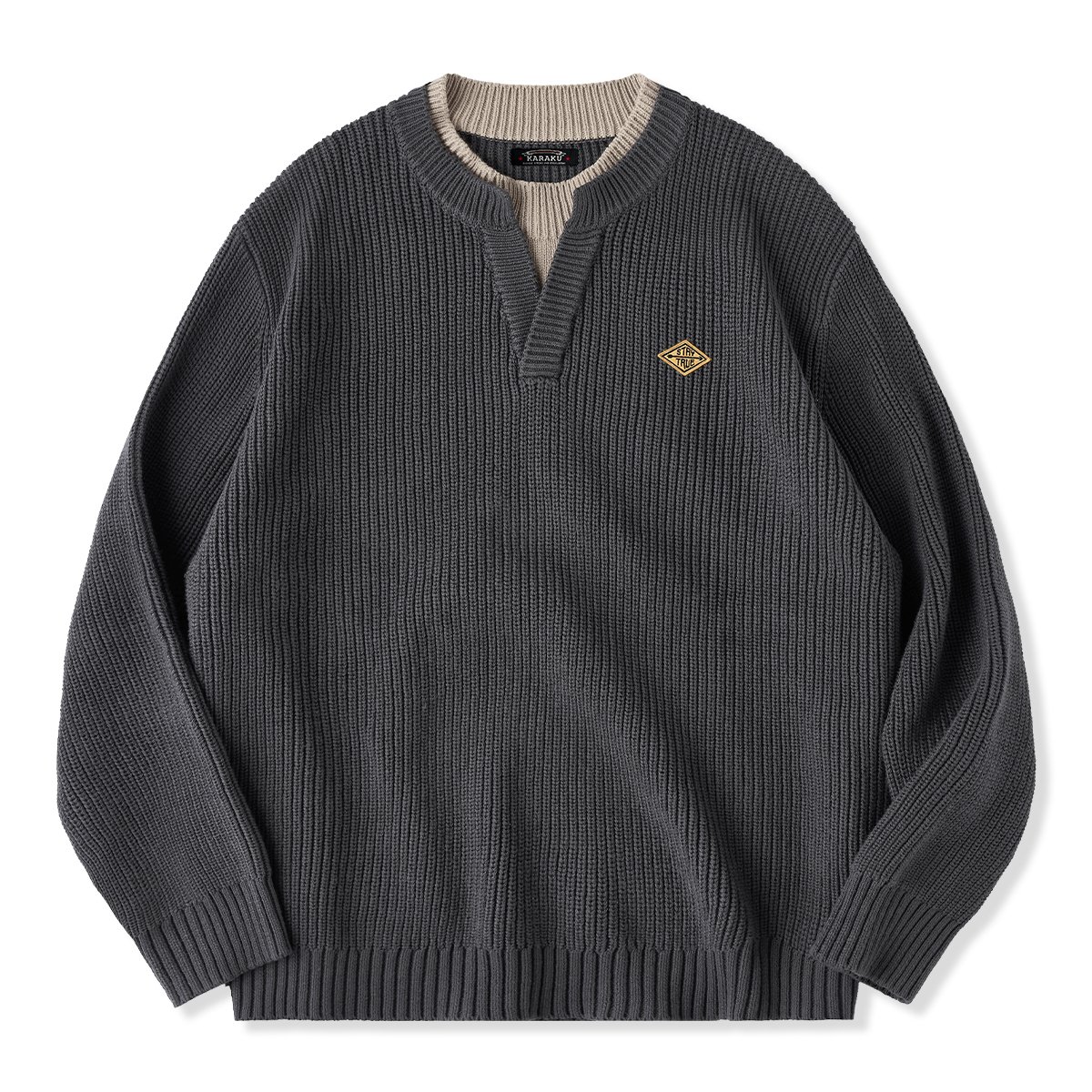 ③【新色追加】「STAY TRUE」刺繍ワッペン 配色切替フェイクレイヤードニットセーター