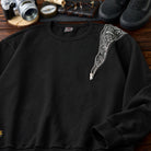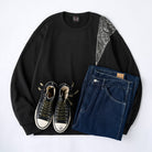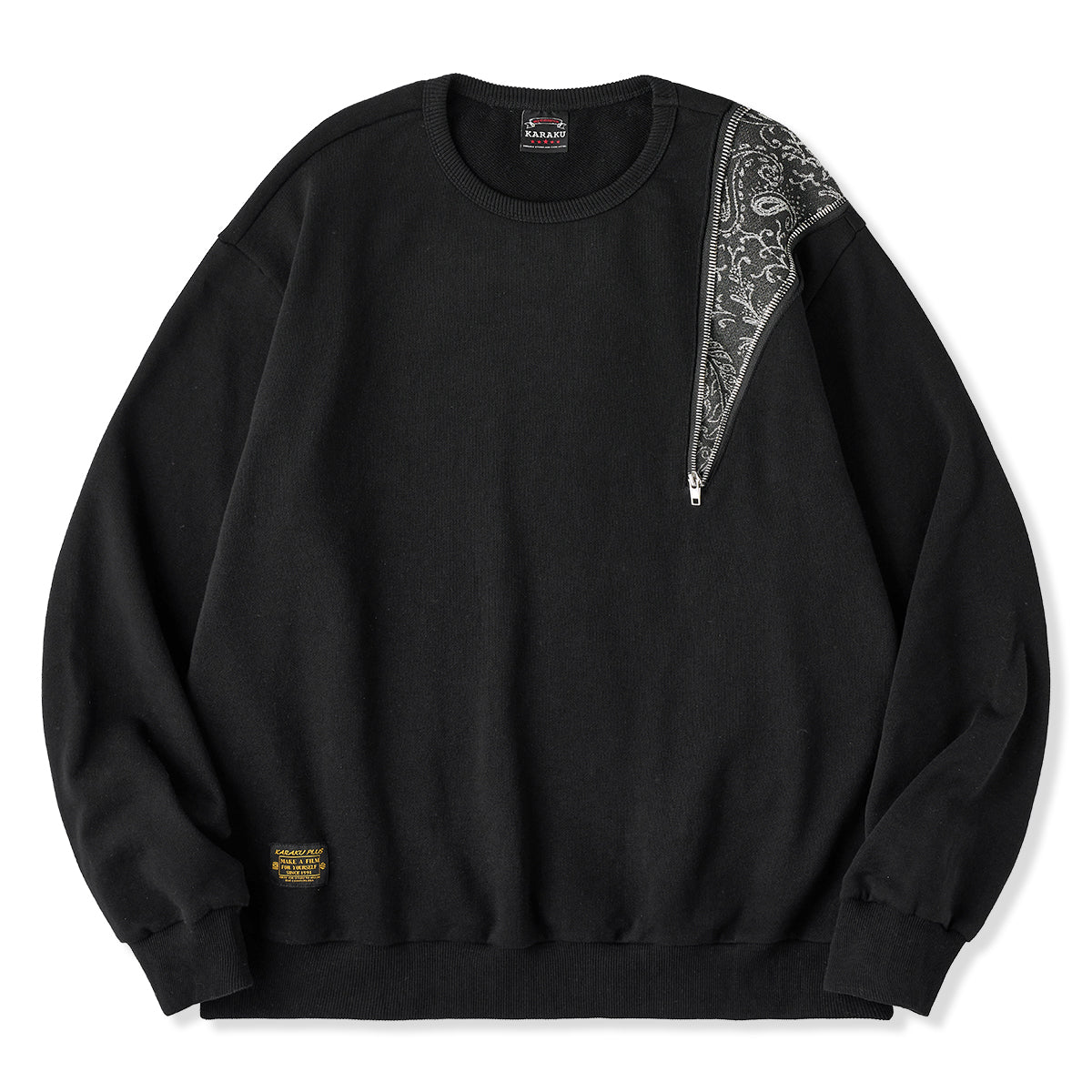 【予約】ペイズリー柄デニム切替&ジップ入り クルーネックプルオーバースウェット