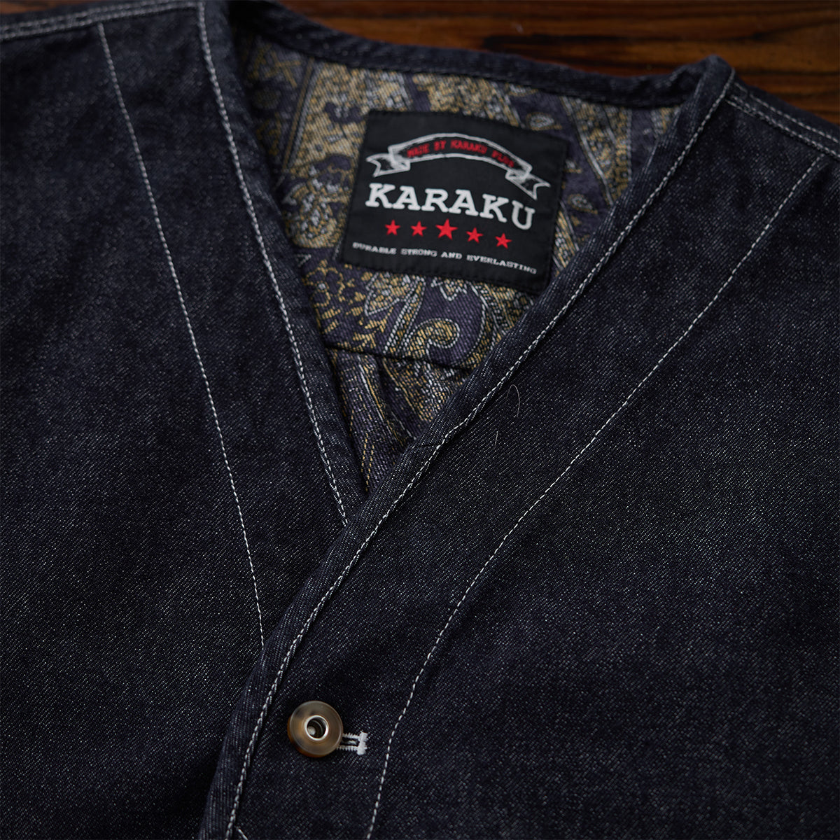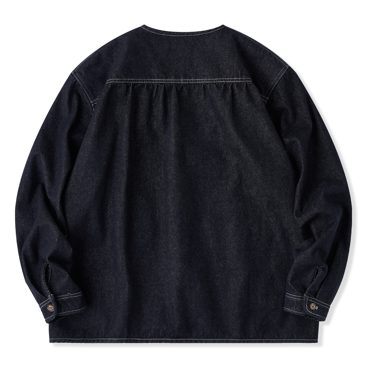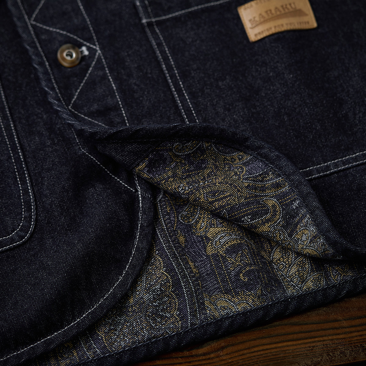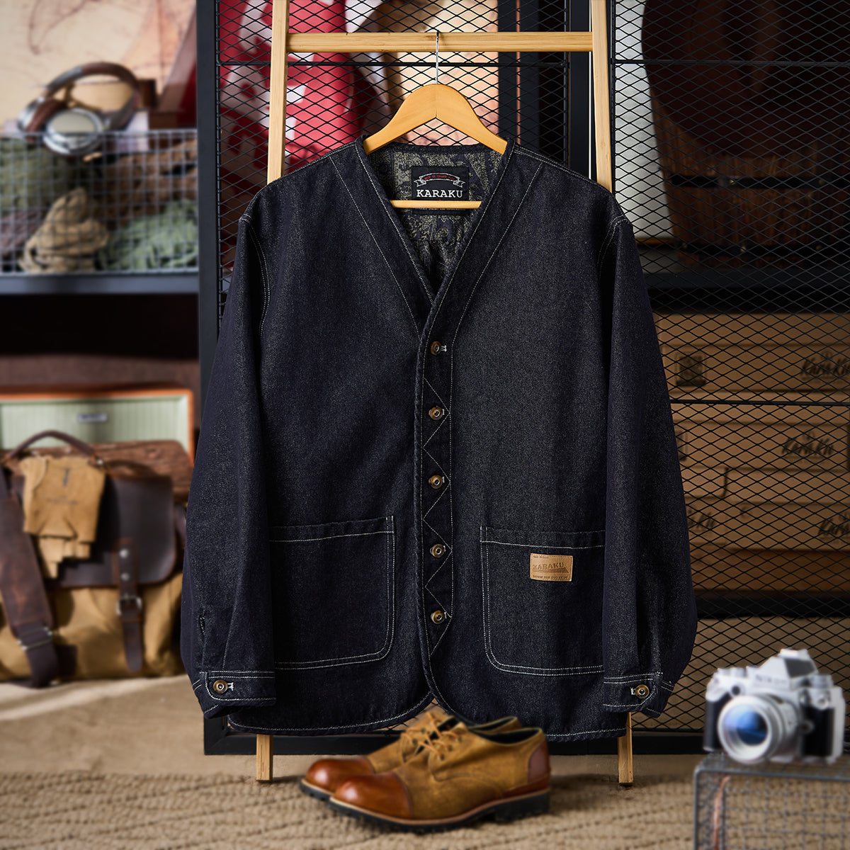 【予約】裏ペイズリー柄 ノーカラーⅤネックデニムジャケット
