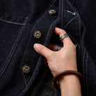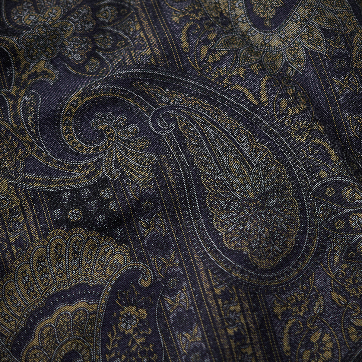 裏地にペイズリー柄を採用している点が特徴的です。表面はシンプルなデザインですが、ボタンを開けた際や袖をまくったときにペイズリー柄が見えることで、遊び心が感じられます。