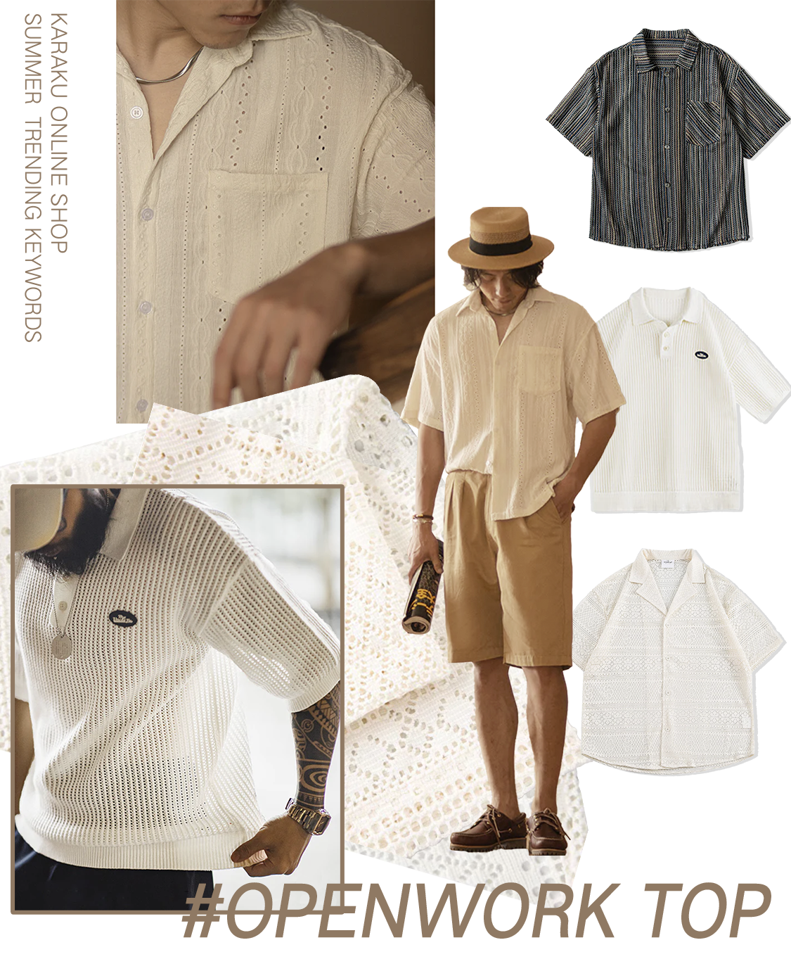 Salah satu item trend yang menarik perhatian dalam fesyen lelaki Jepun pada musim panas 2024 ialah atasan kerawang. Sesuai untuk musim panas sebagai lapisan yang bernafas dan ringan.