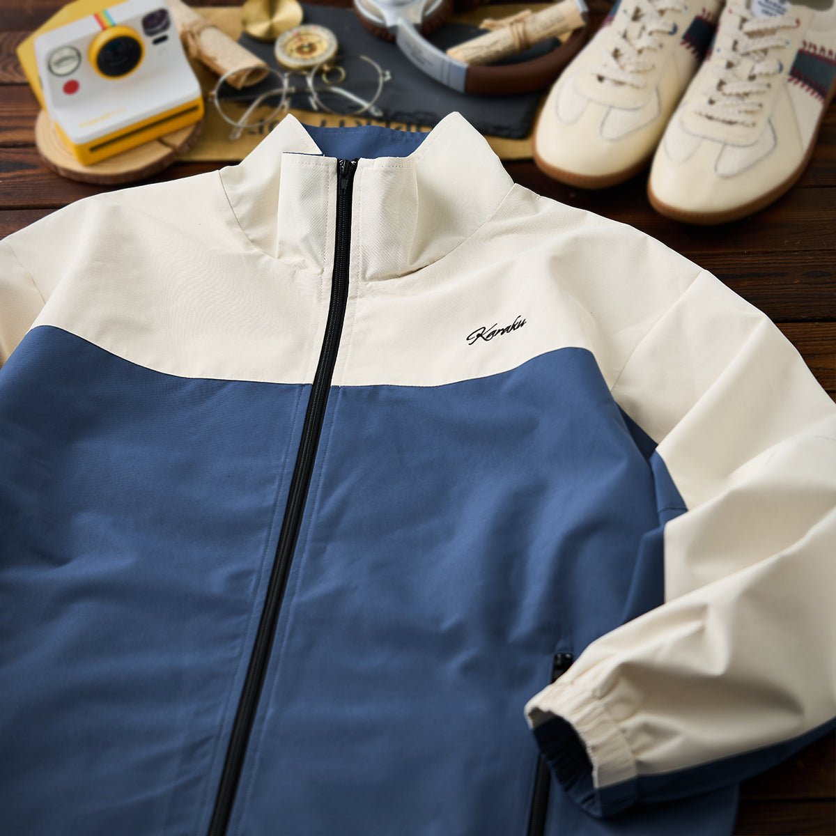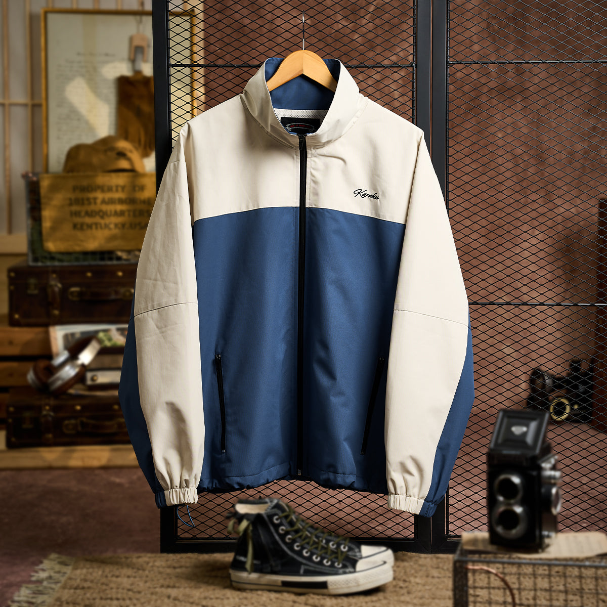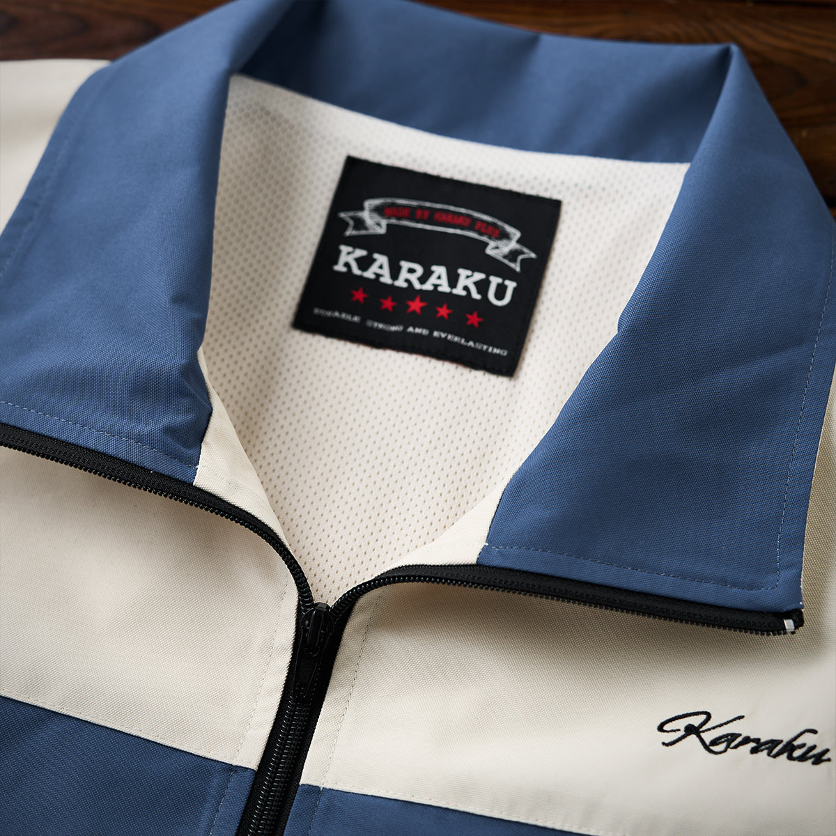 【予約】「KaraKu」刺繡ロゴ 裏メッシュ配色切替スタンドカラージャケット