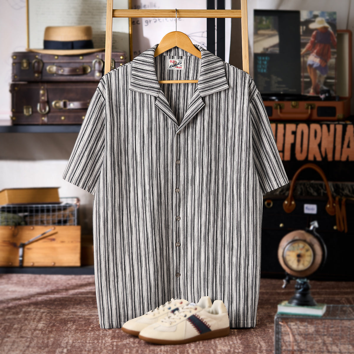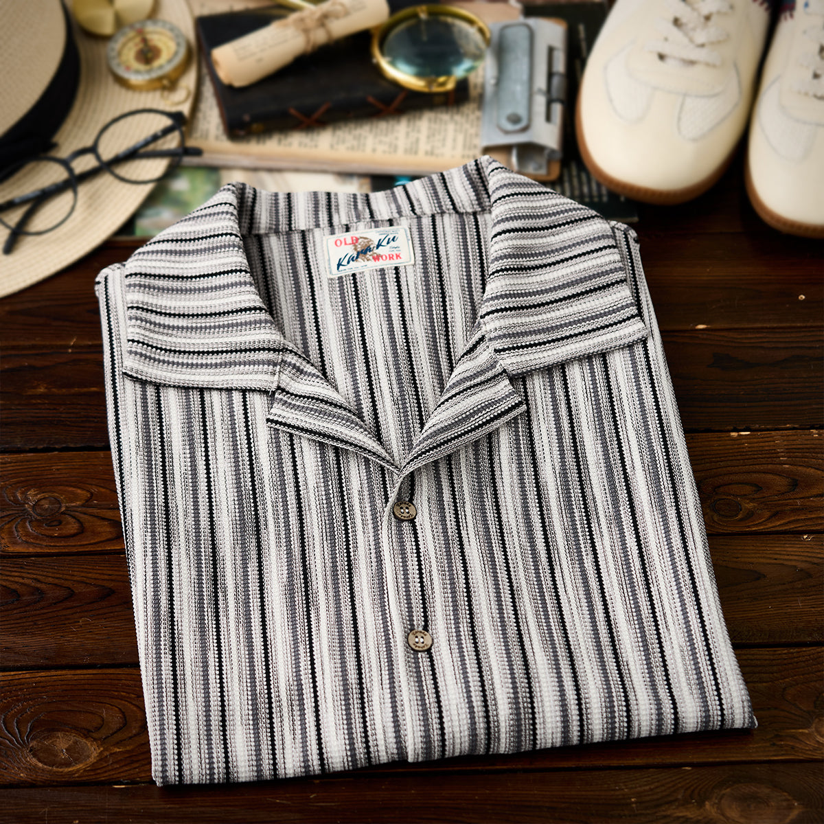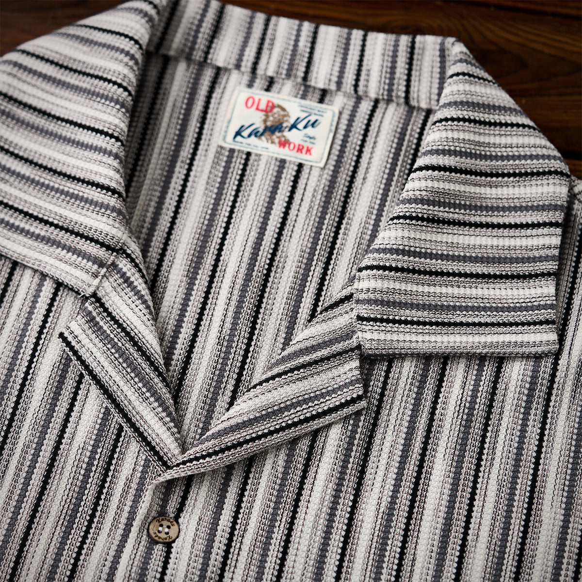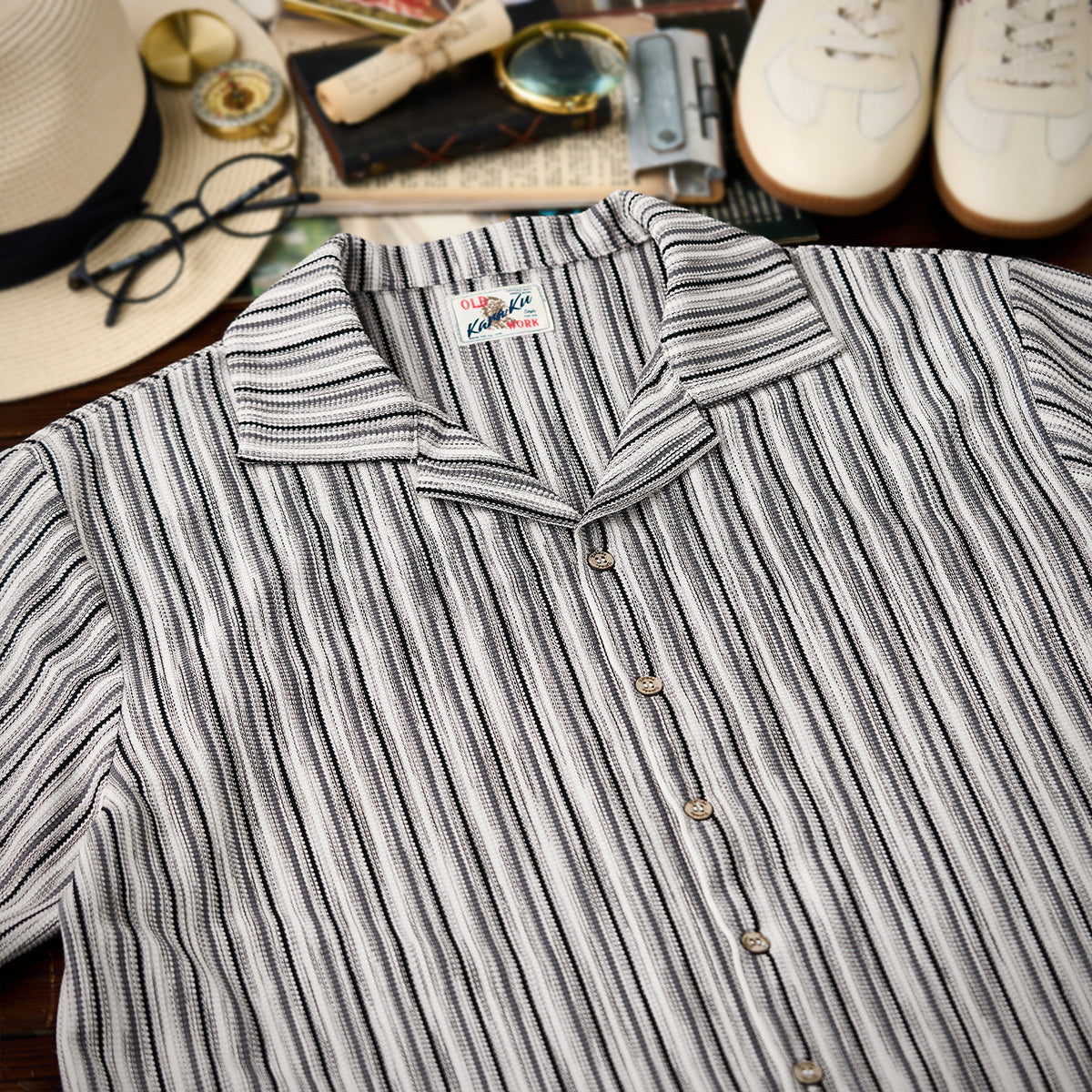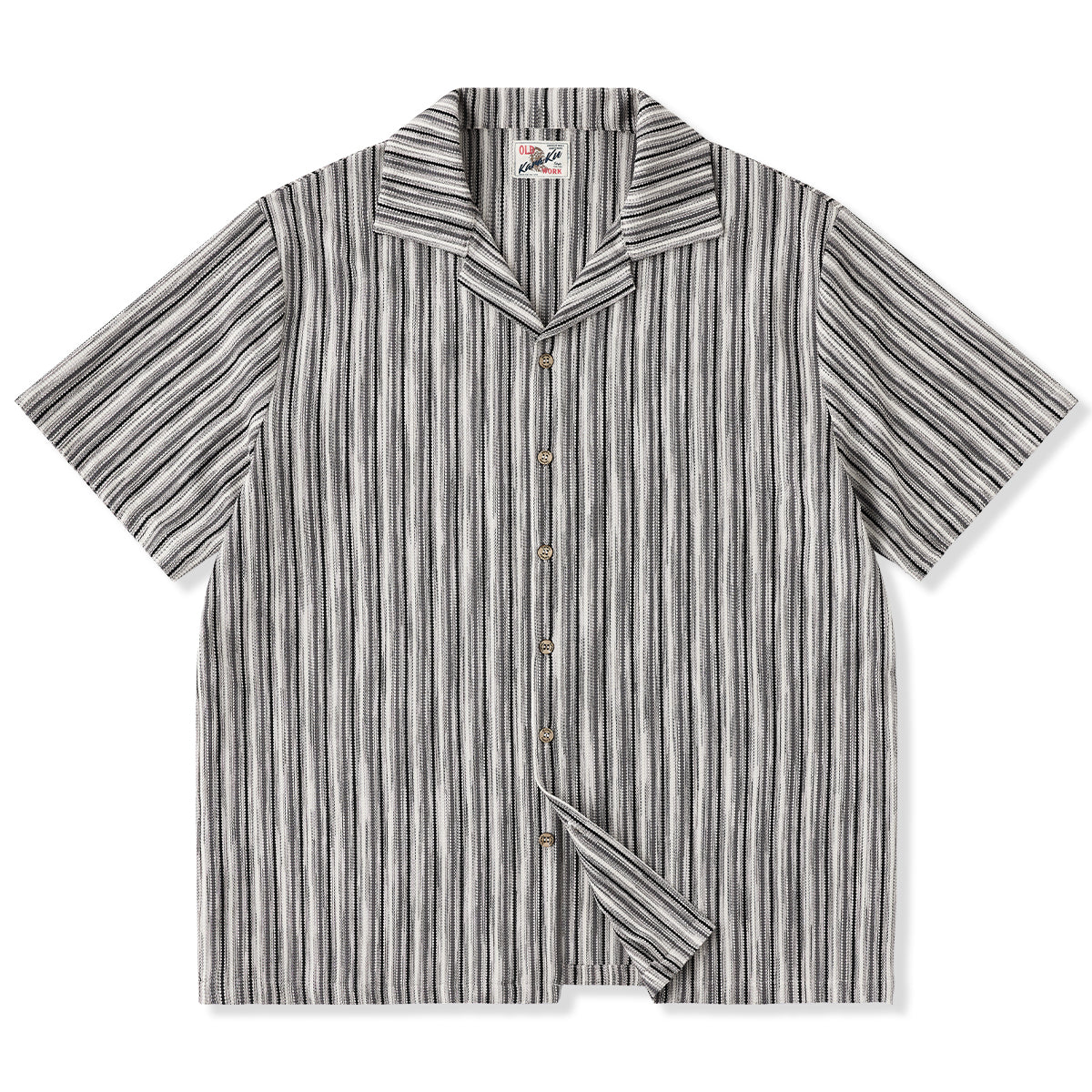 マルチストライプ柄ジャカード織りキューバカラー半袖シャツ