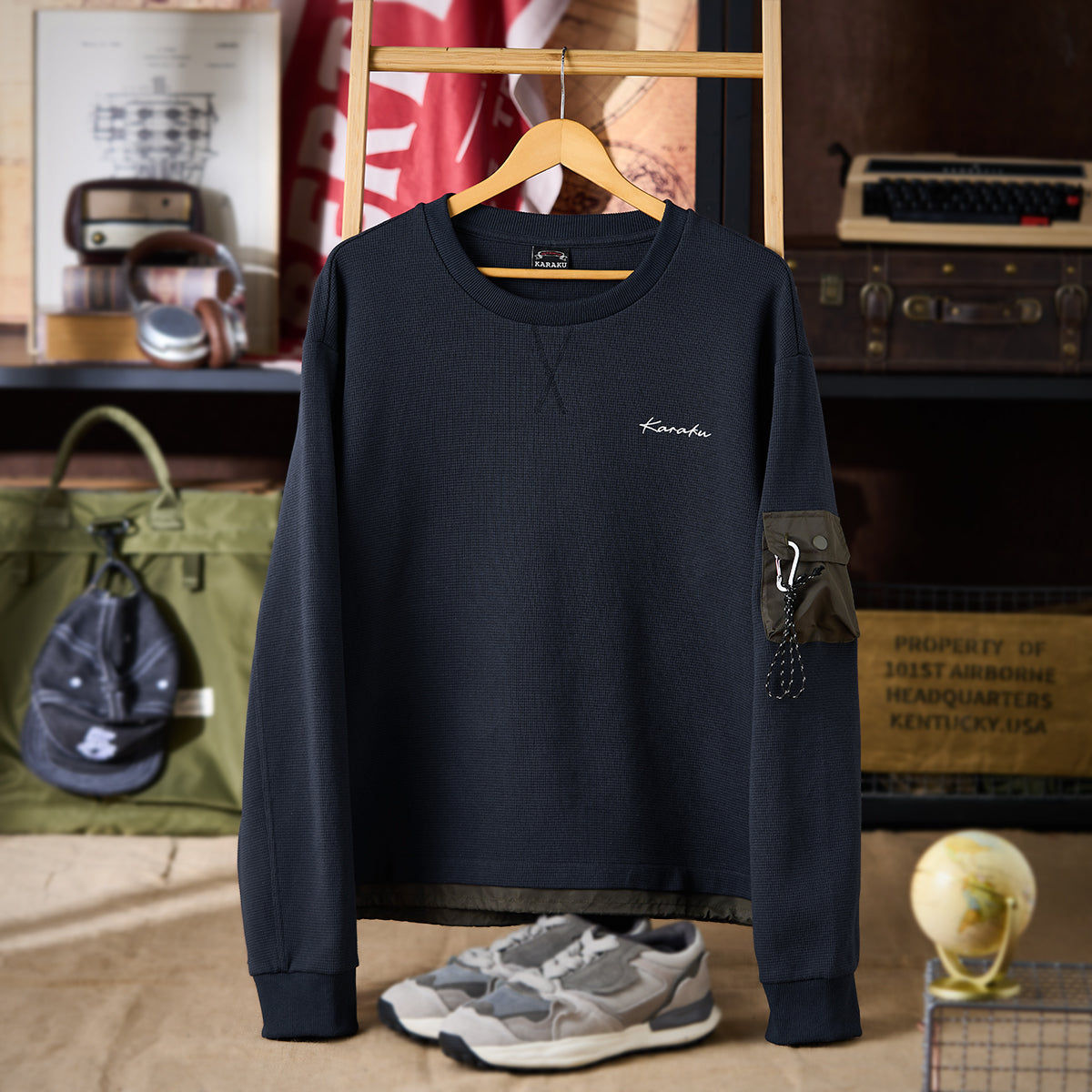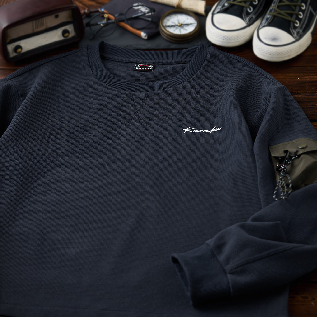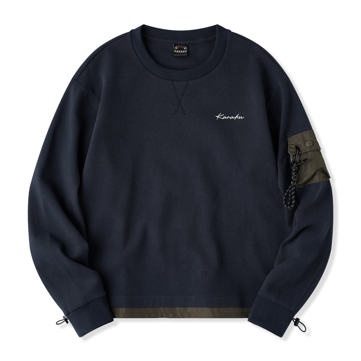 【予約】Karaku刺繍入り 裾異素材コンビワッフルマウンテンスウェット