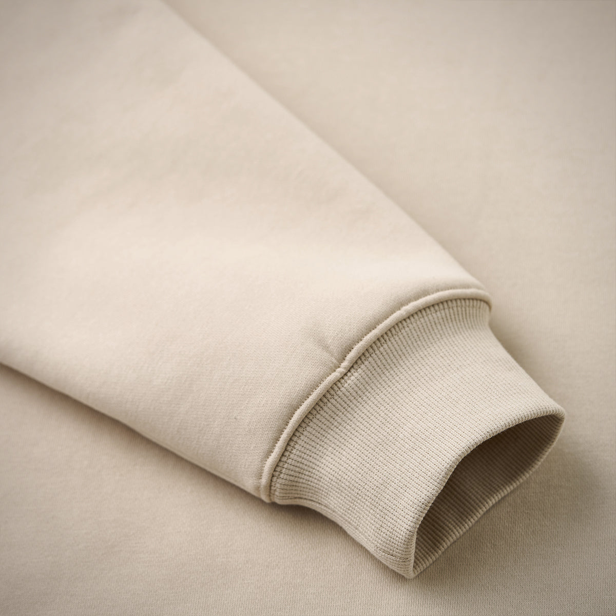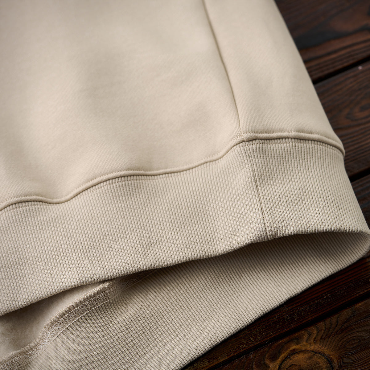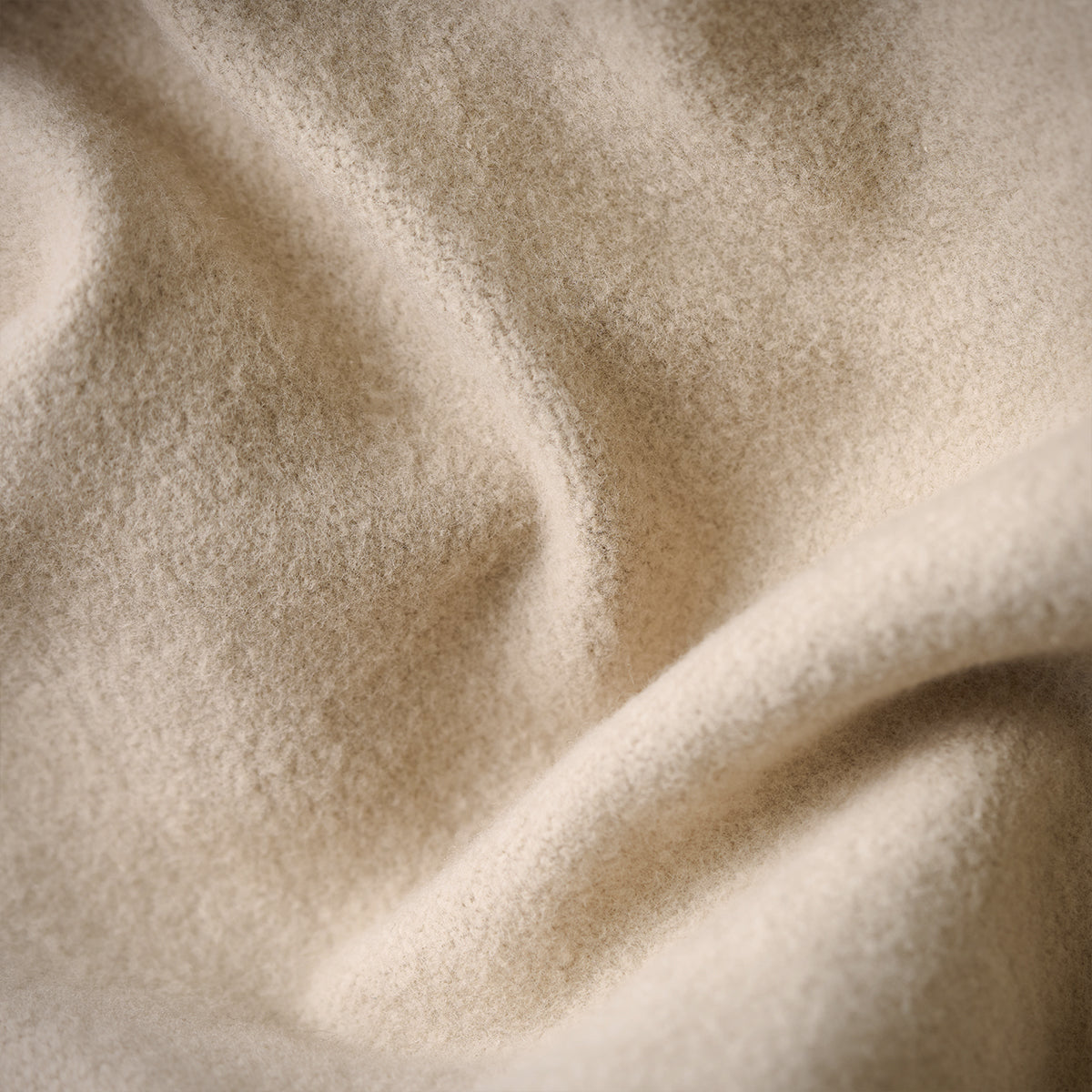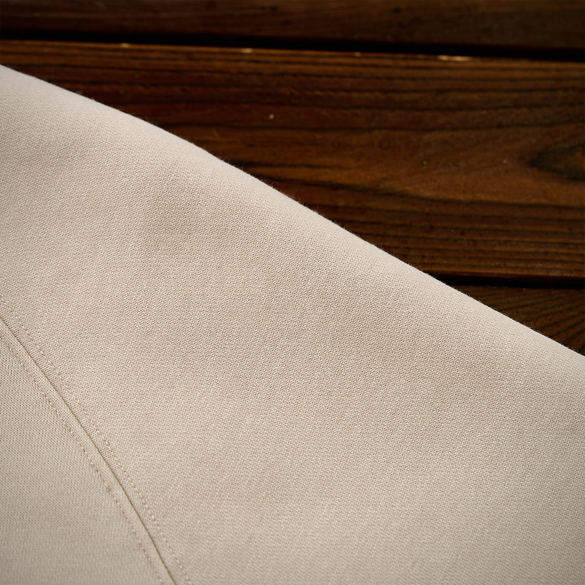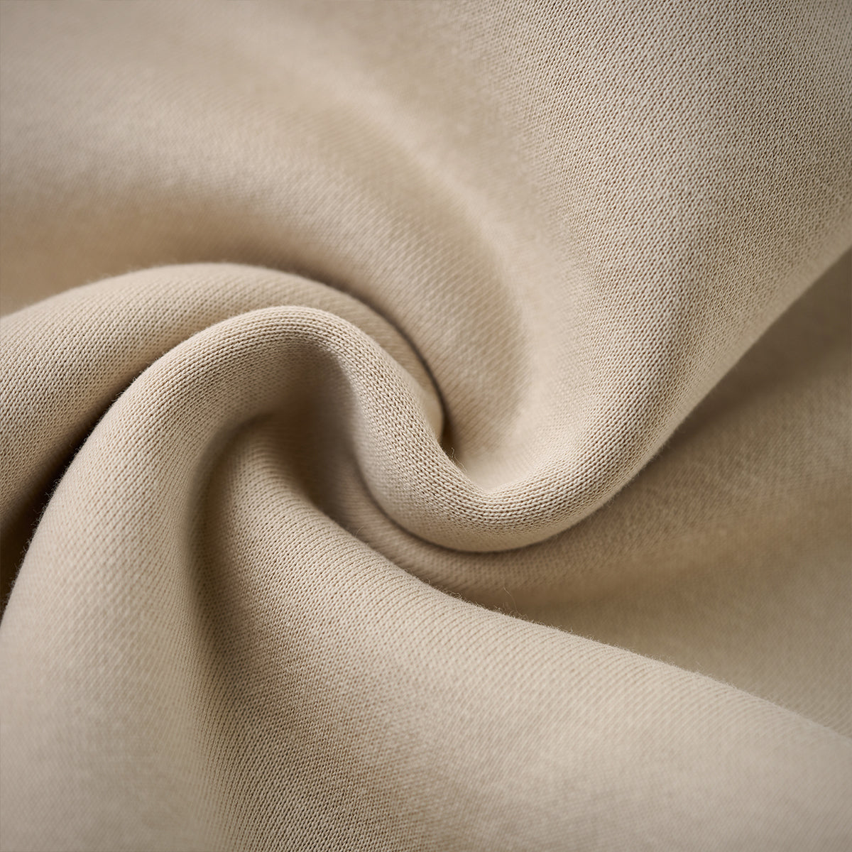 コットンを使用し、厚すぎず薄すぎない適度なハリがあり、年間を通じて着用可能。裏にはふんわりと暖かい裏起毛素材で、肌触りも抜群。