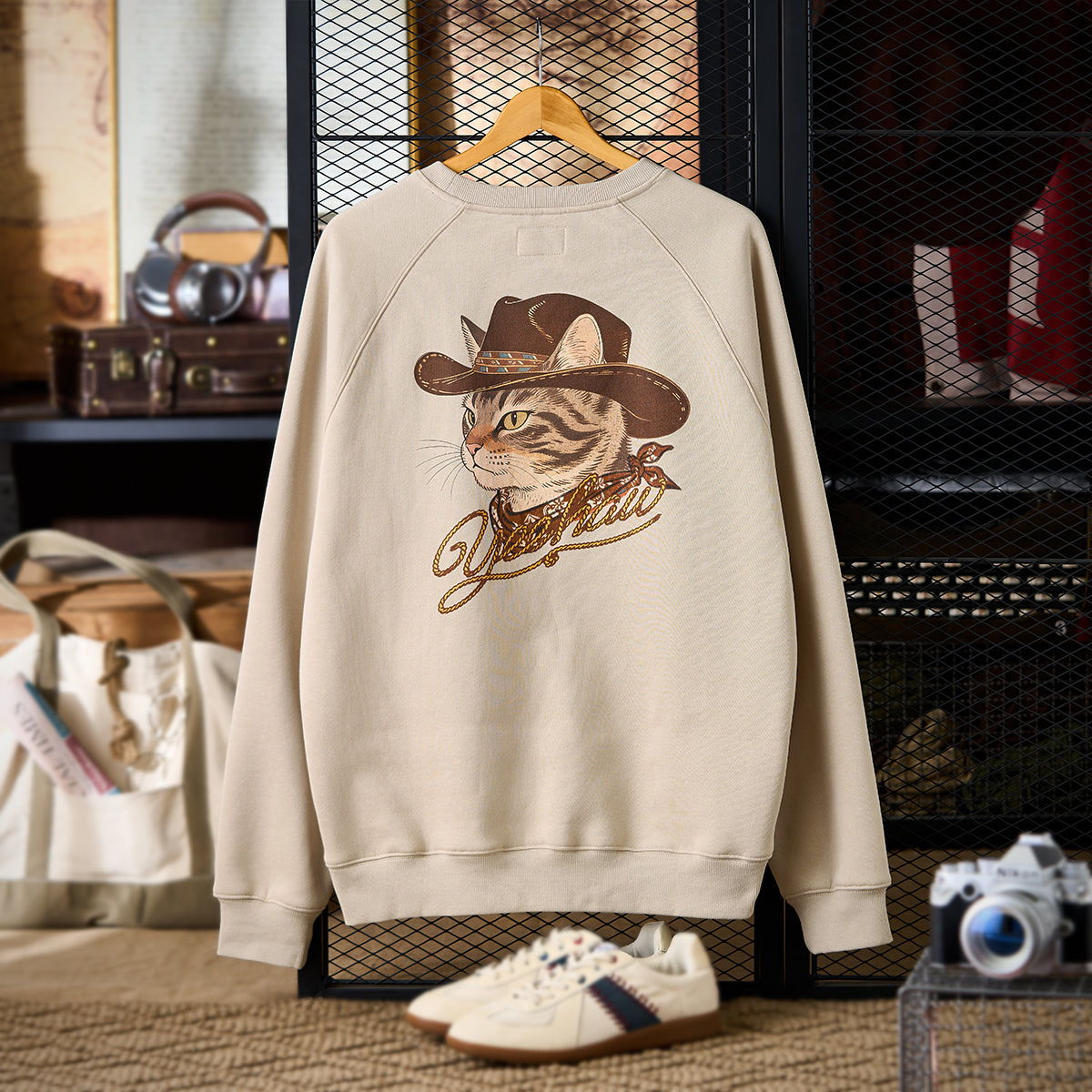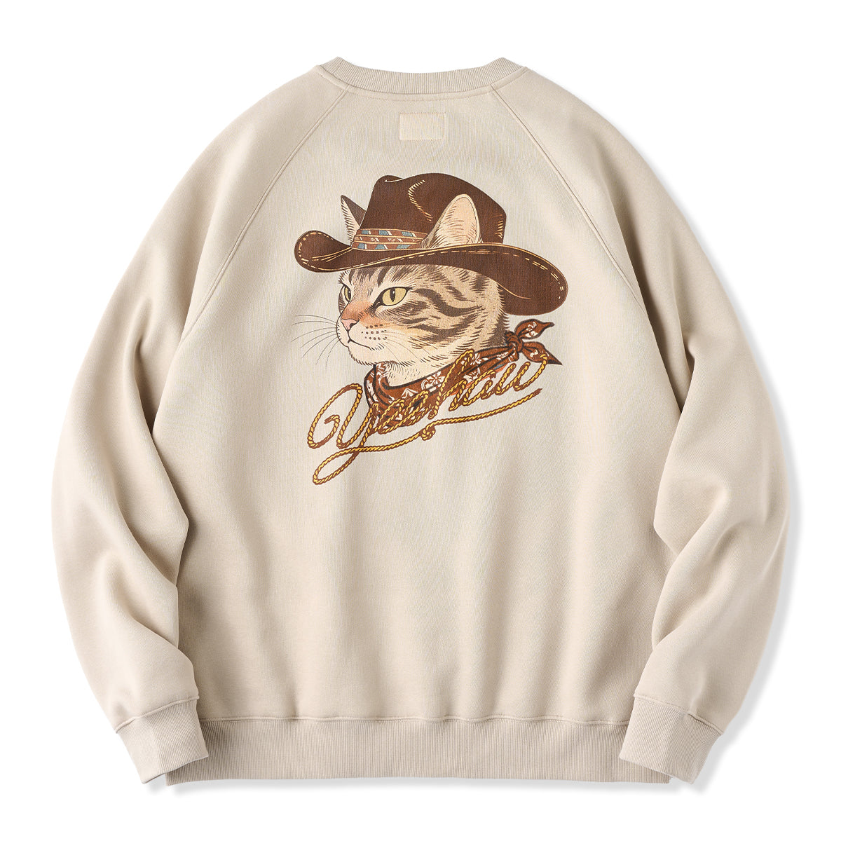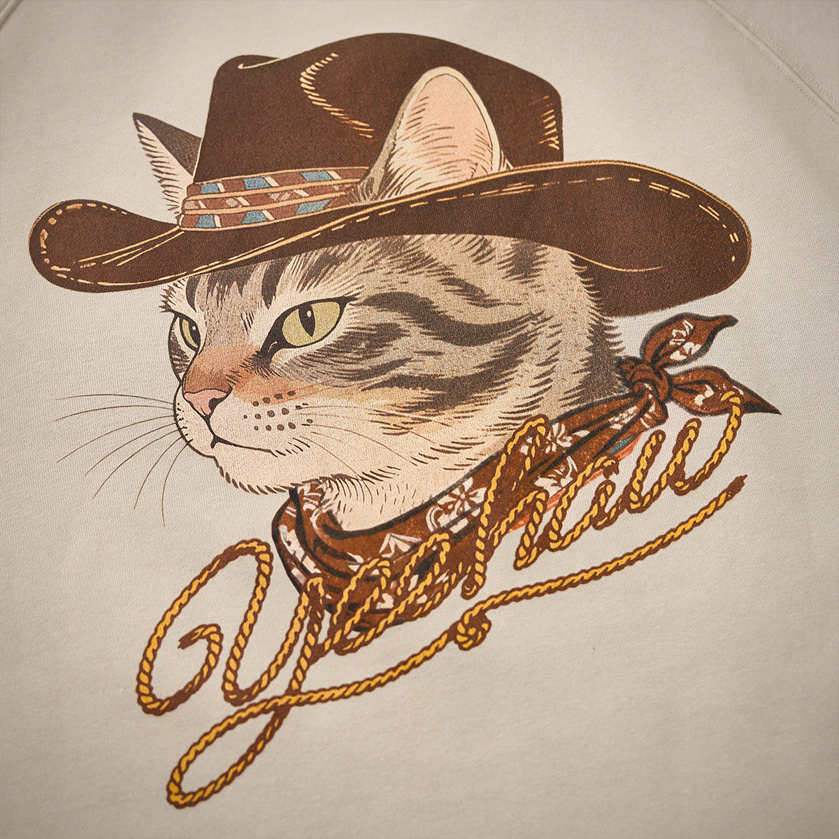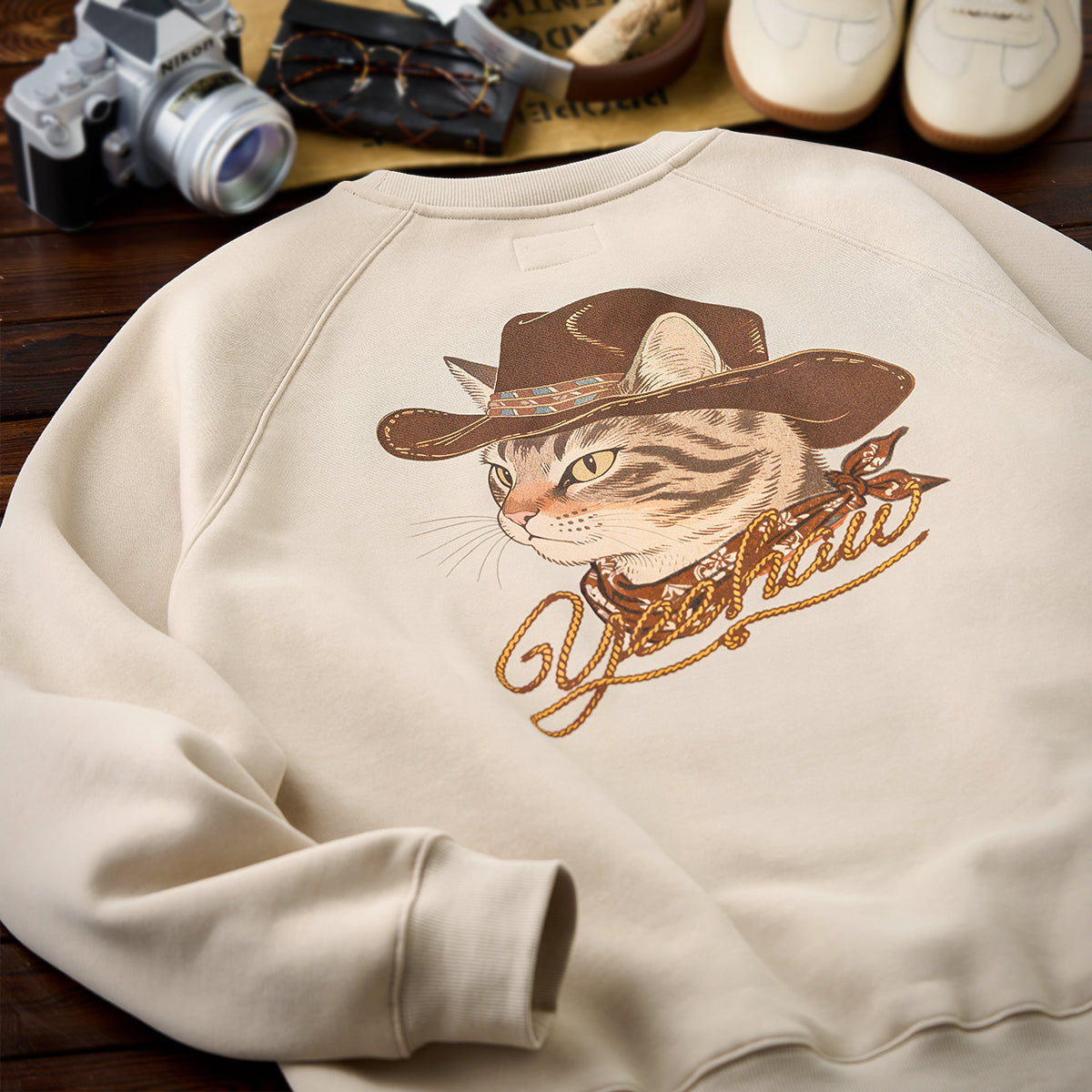 【予約】「ウエスタンハットをかぶったカウボーイ猫」プリント裏起毛スウェット