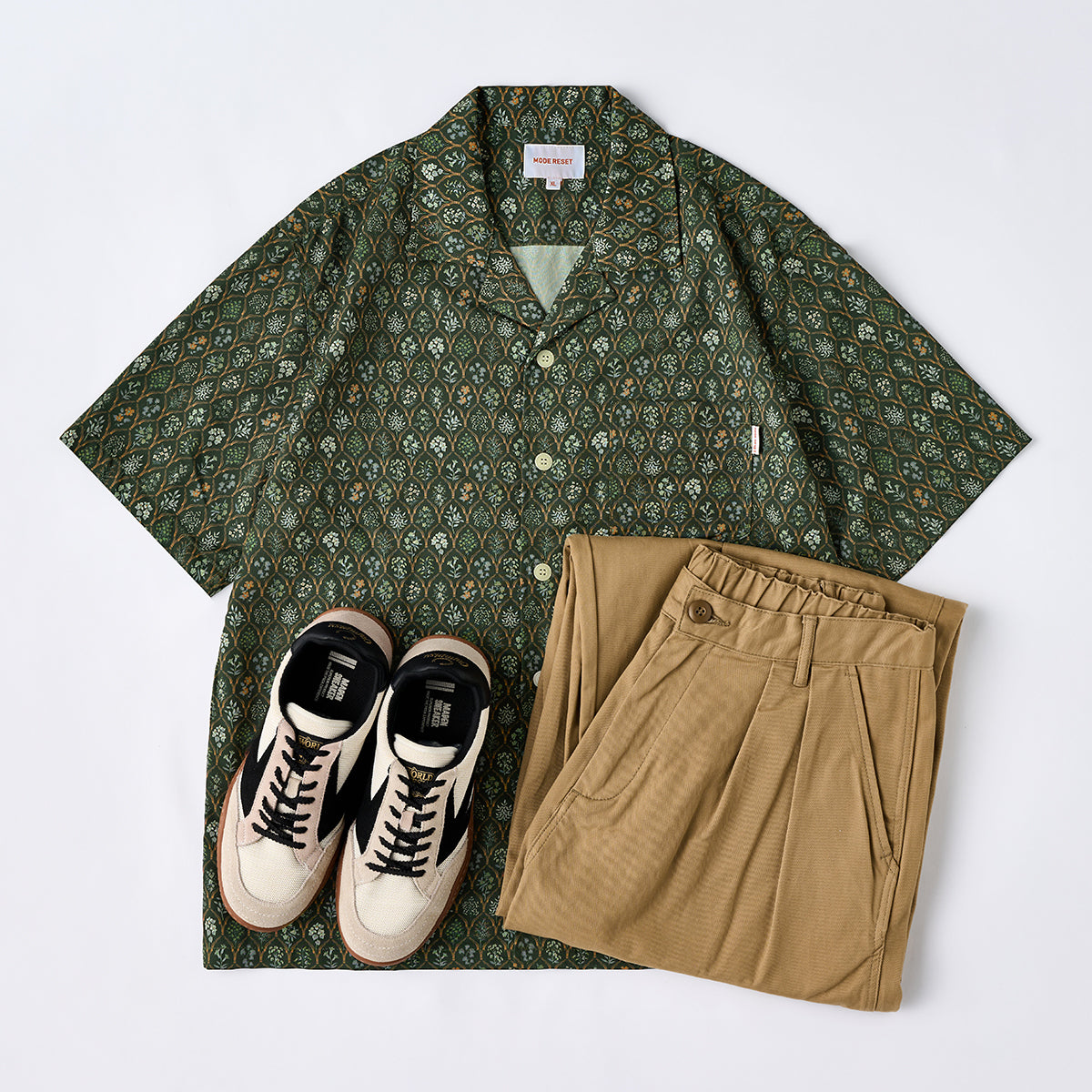 ボディーに花弁模様などの植物総柄のプリントをあしらい、「本草図譜」をモチーフにした柄を敷き詰めるデザインがオシャレ。たっぷりなドレープ感とリラックスフィットなシルエットが、今どきな気分を表現してくれるトレンド感満載。