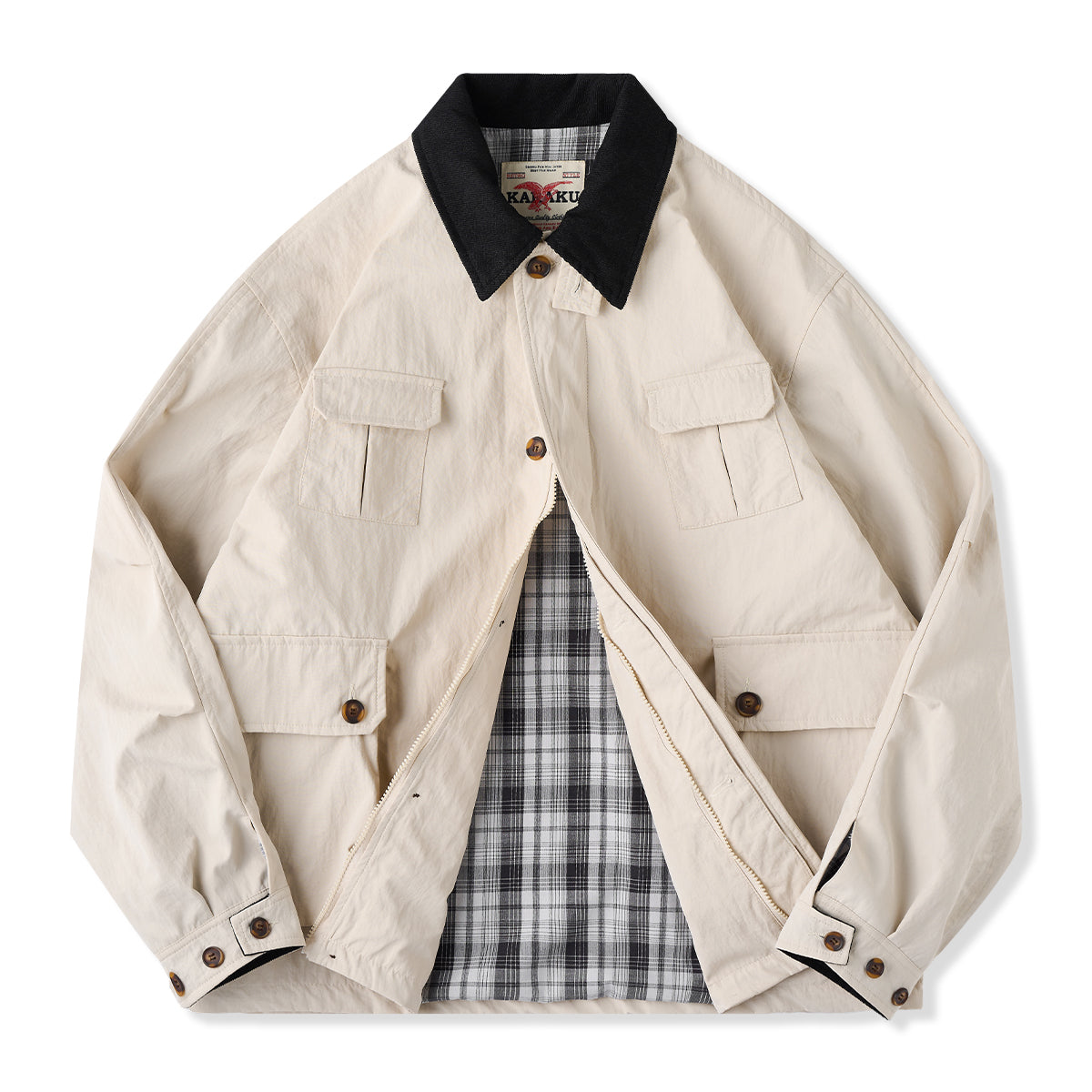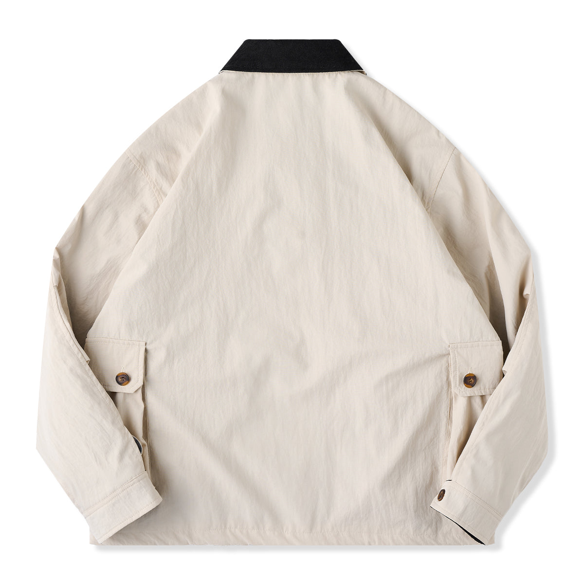 Jaket berburu kalis air kolar/lapik lengan korduroi
