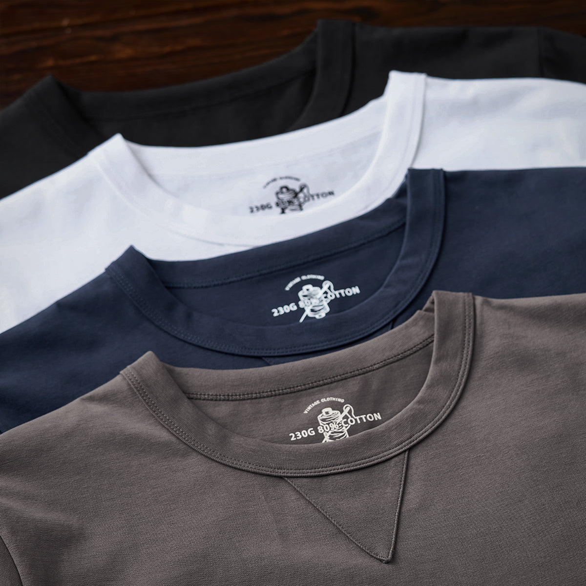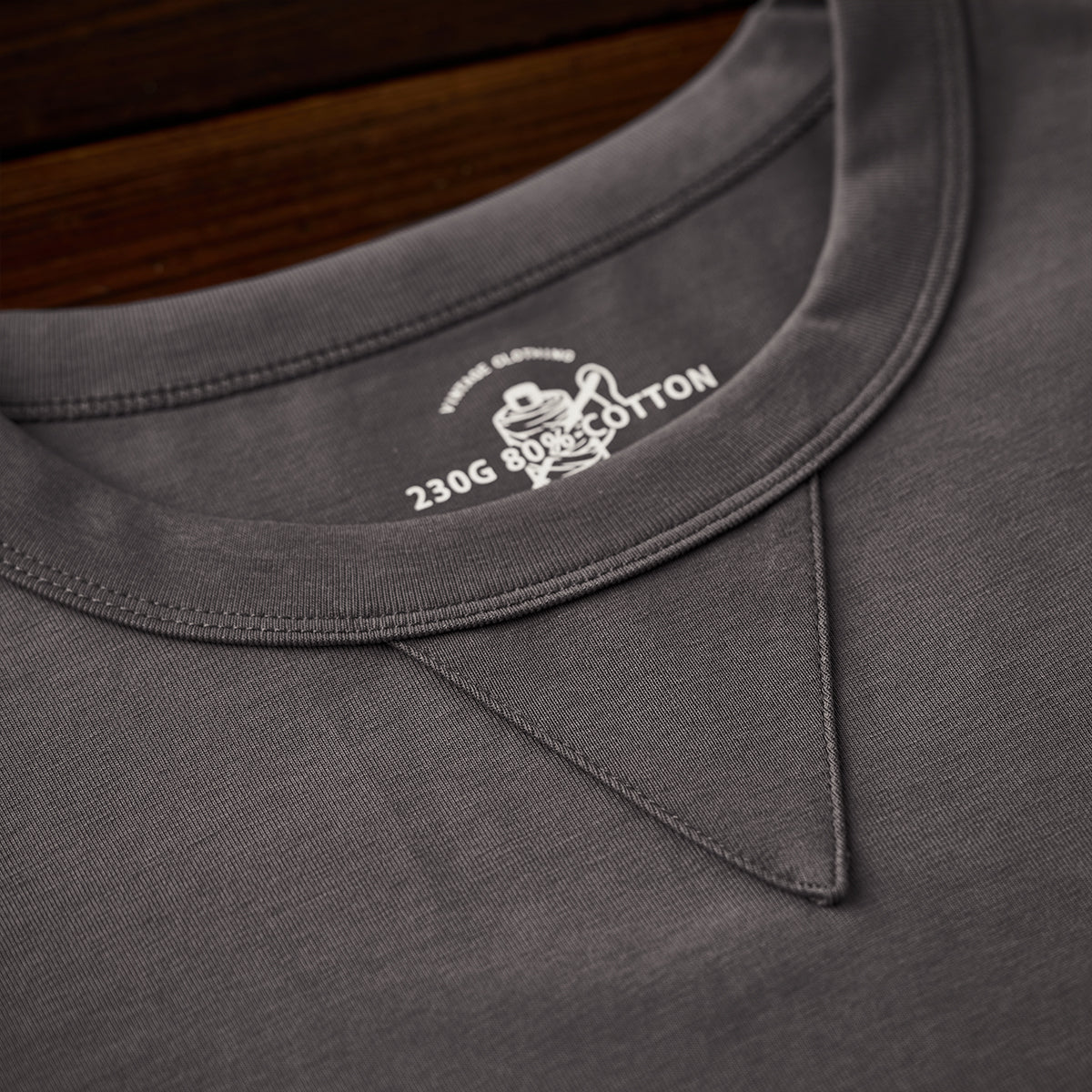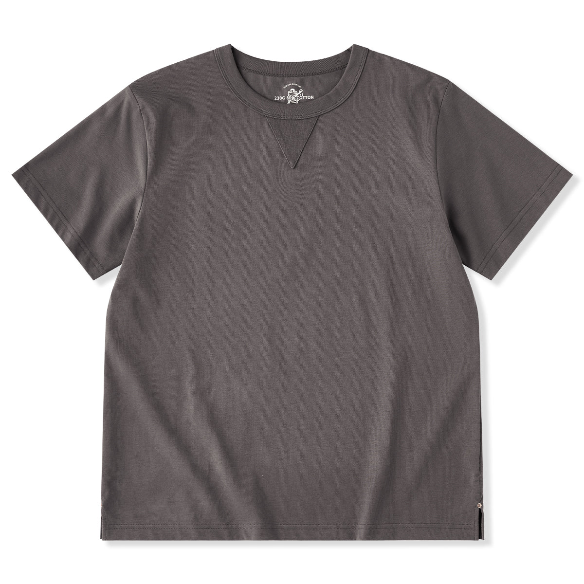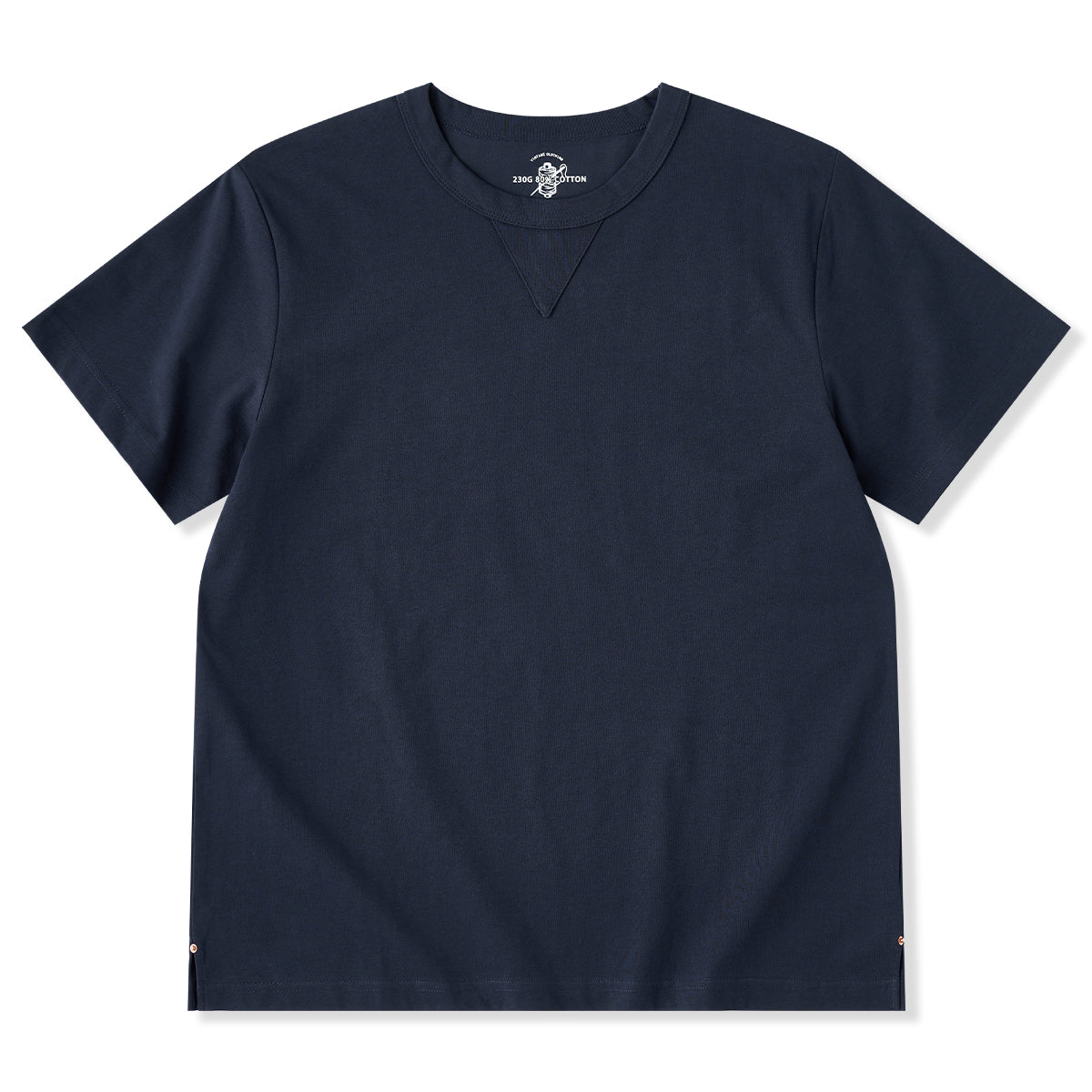 クラシックなクルーネックデザインで、カジュアルかつ洗練された印象を与え。下にV字ステッチが施されて、デザインにアクセントを加えている。