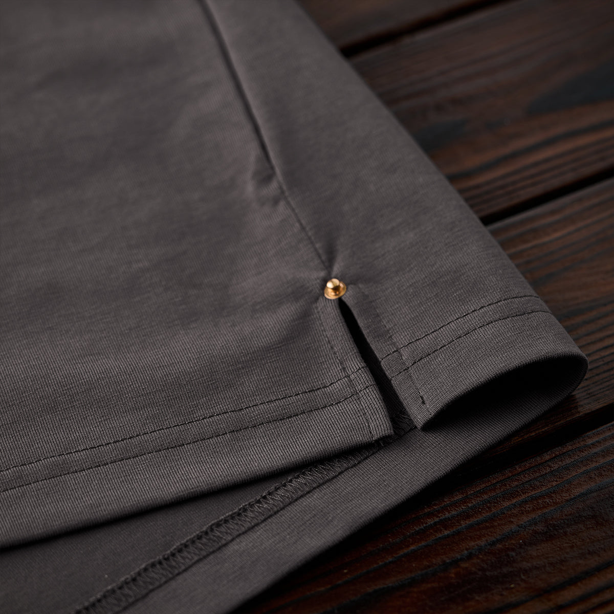 袖口や裾に施されたステッチが控えめながらもデザイン性を高めて、縫い目がしっかりして、耐久性がありそうな作る。裾のサイド部分にスリットと小さな金属リベットが施されて、動きやすさとデザイン性の両方を考慮している。