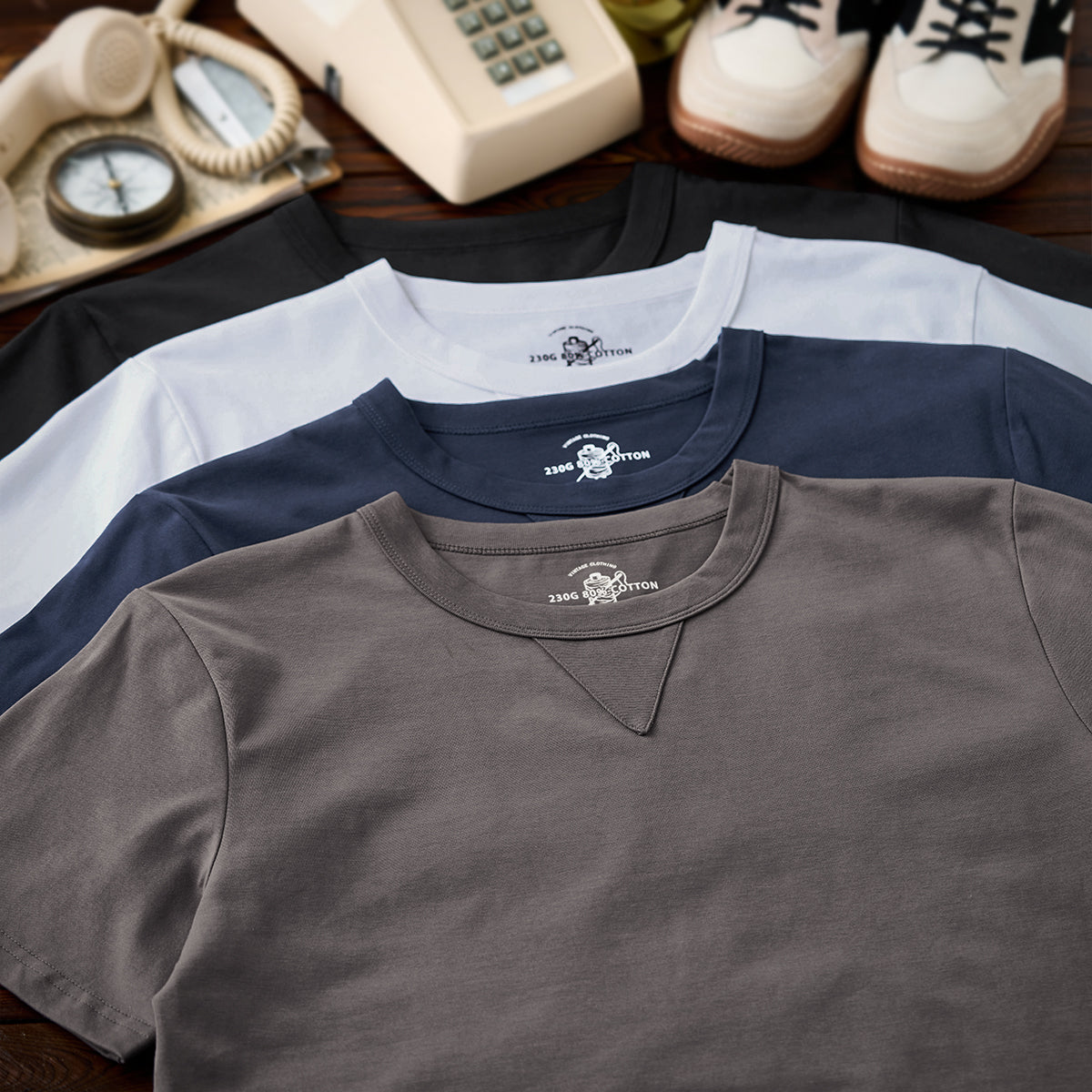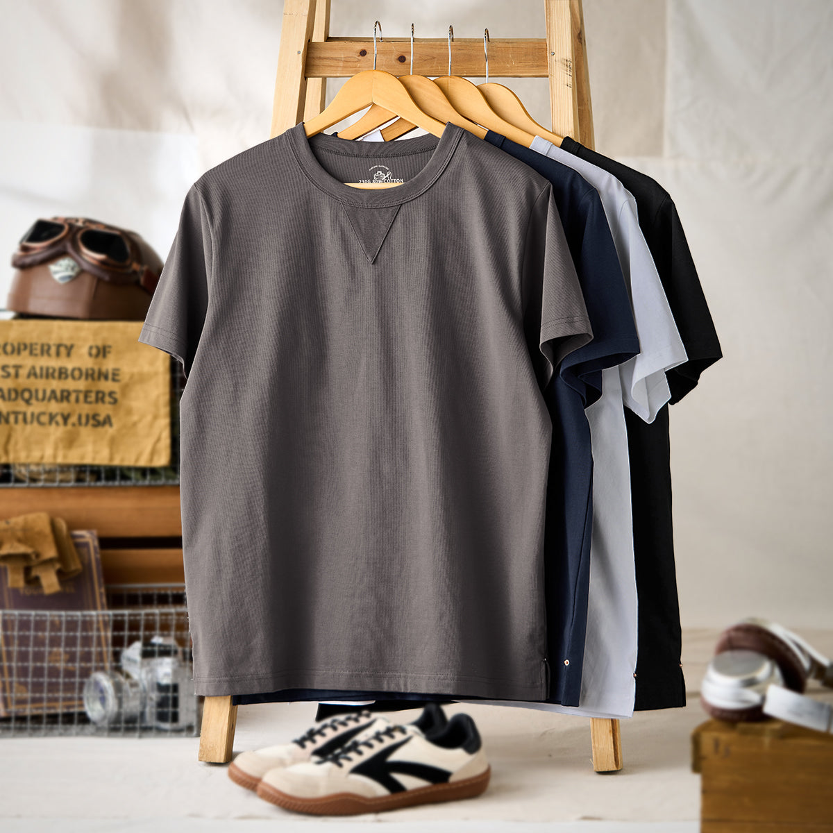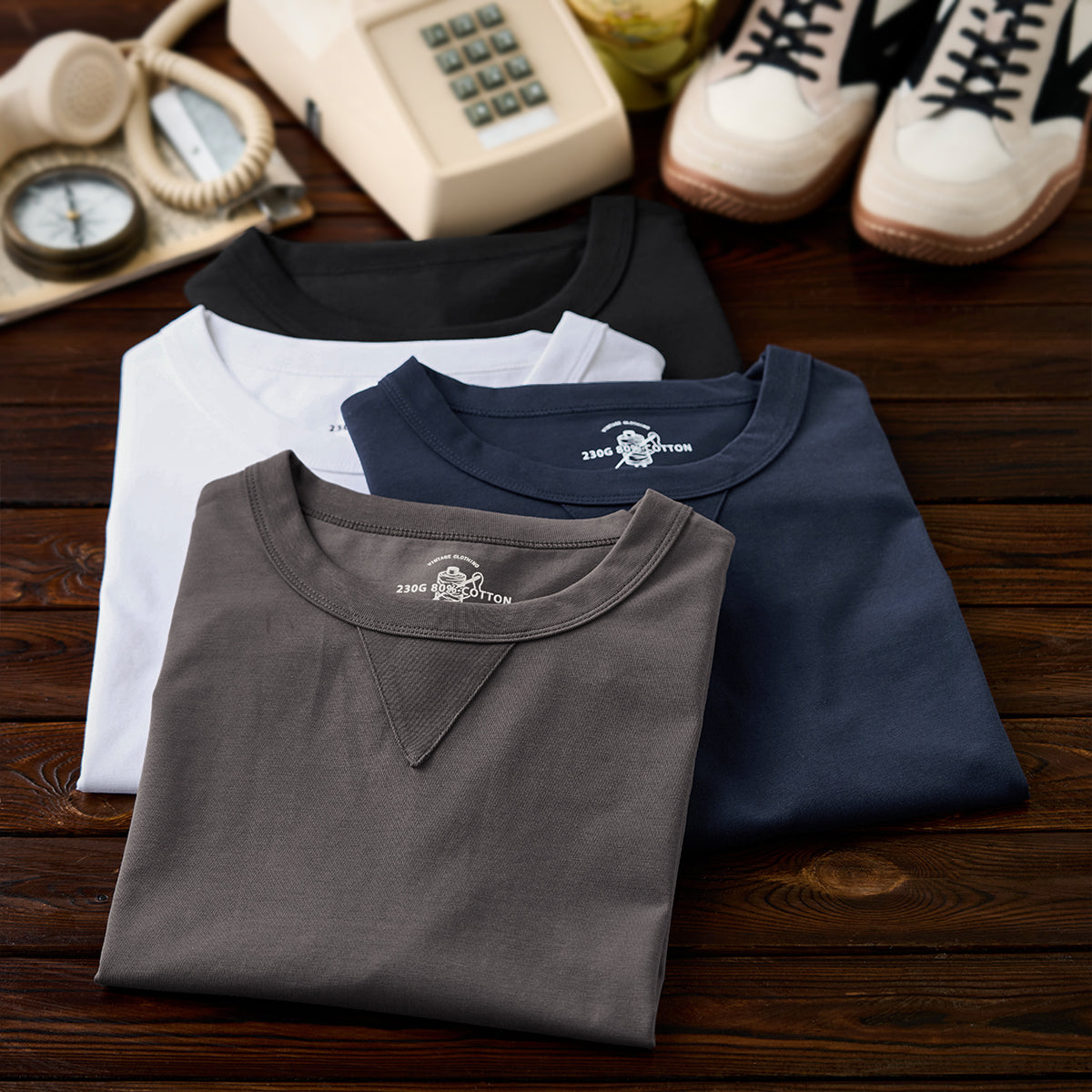 旬のグレーをはじめ、洗練された印象のホワイト、大人の穏やかな印象のダークブルーやブラックなど4色で展開、スタイルに合わせてお選びいただける。