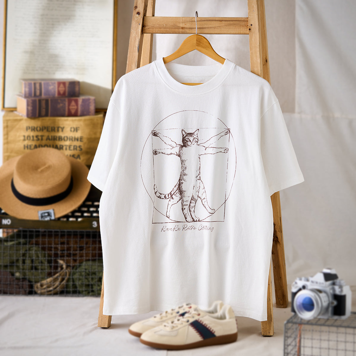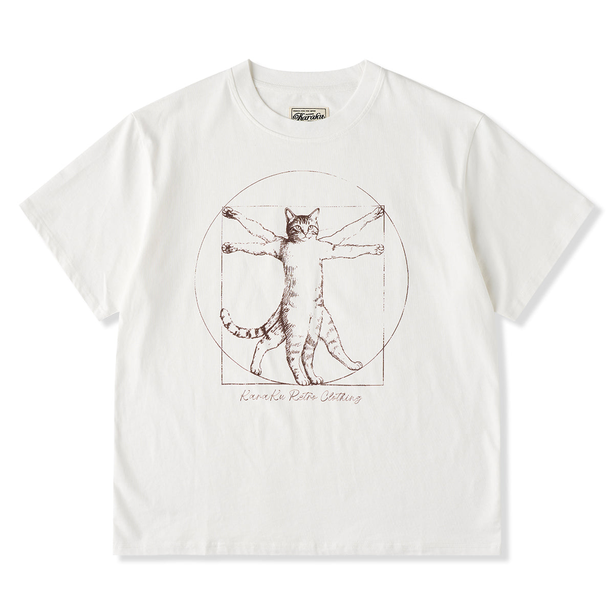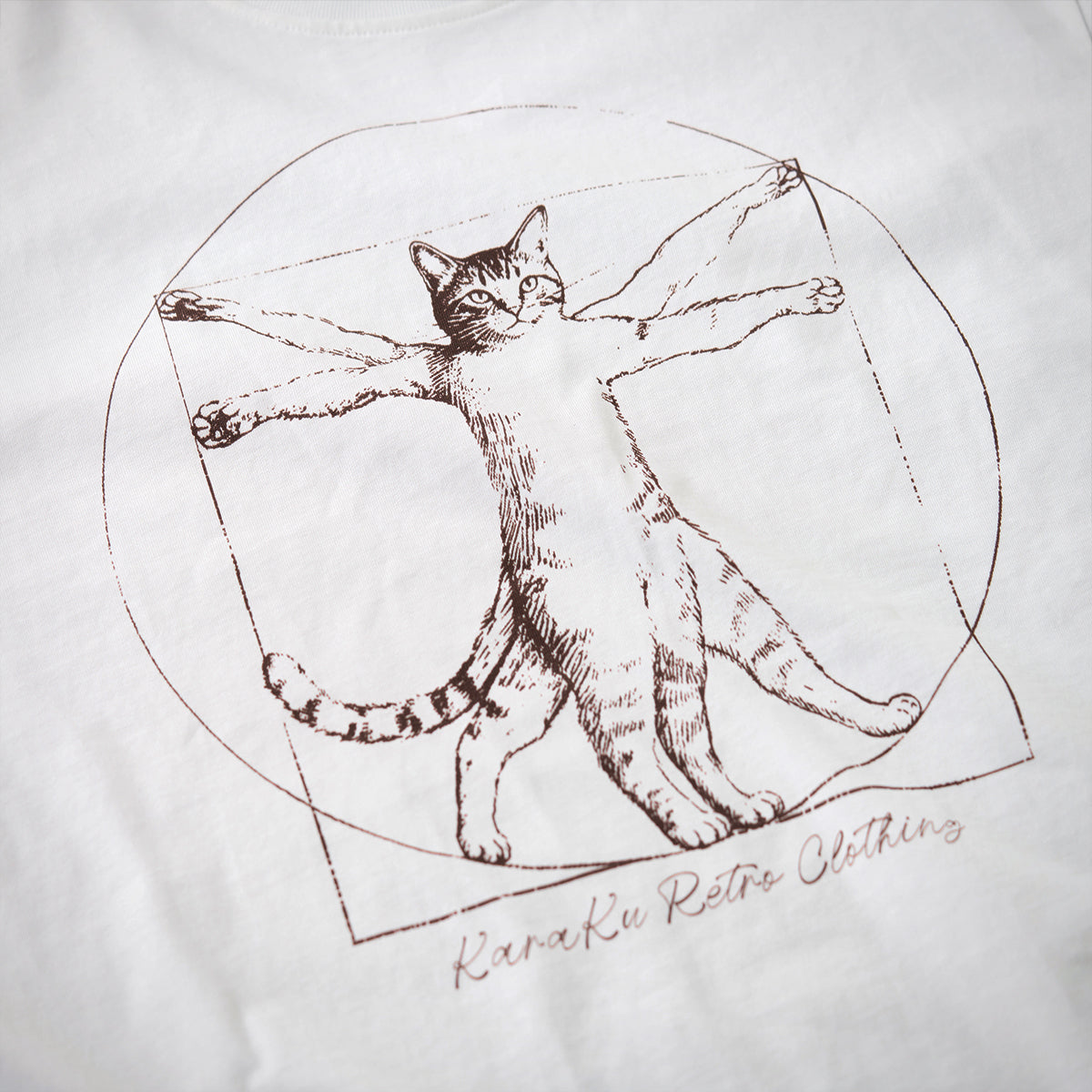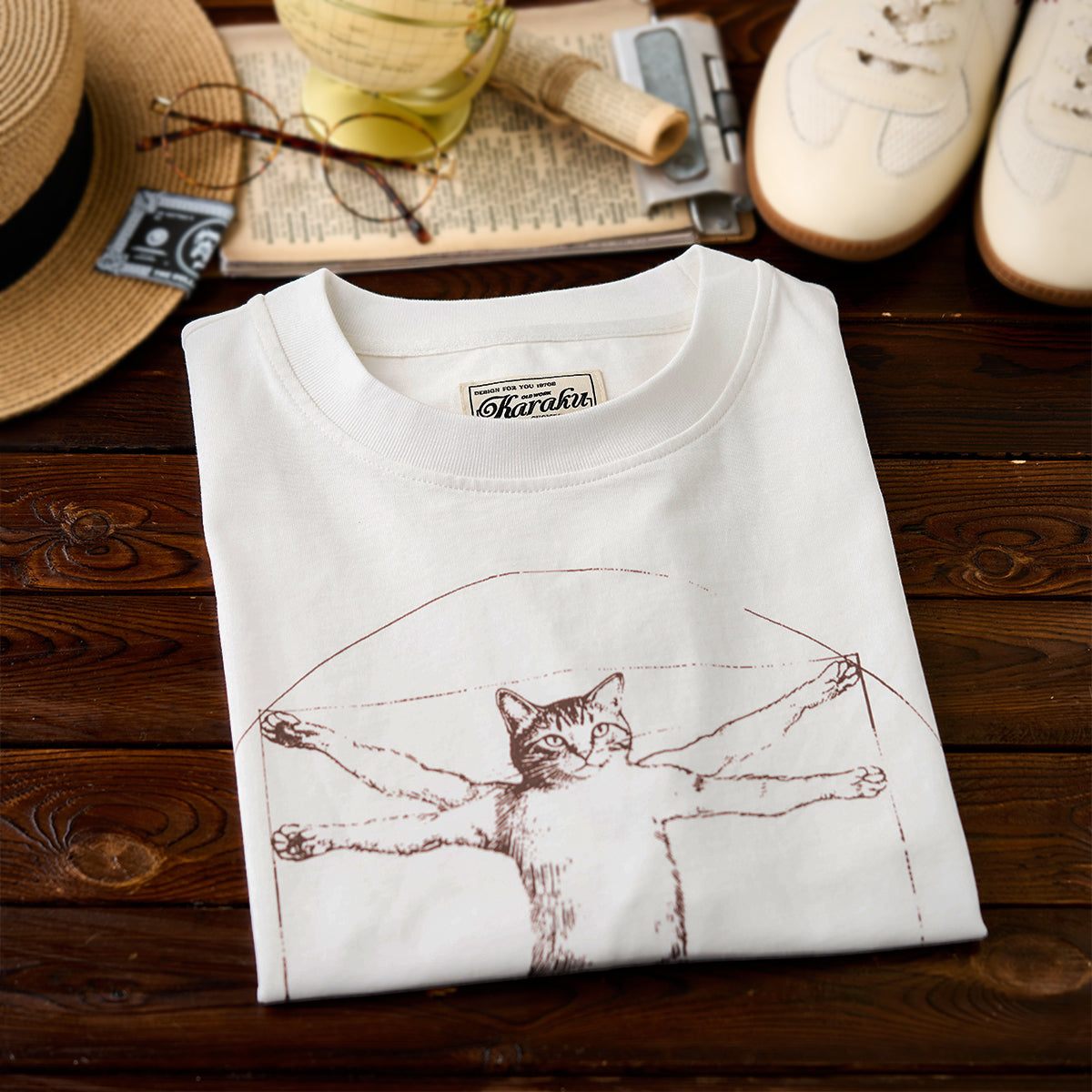 「ウィトルウィウス的にゃん体図」スケッチ風線画コットンTee