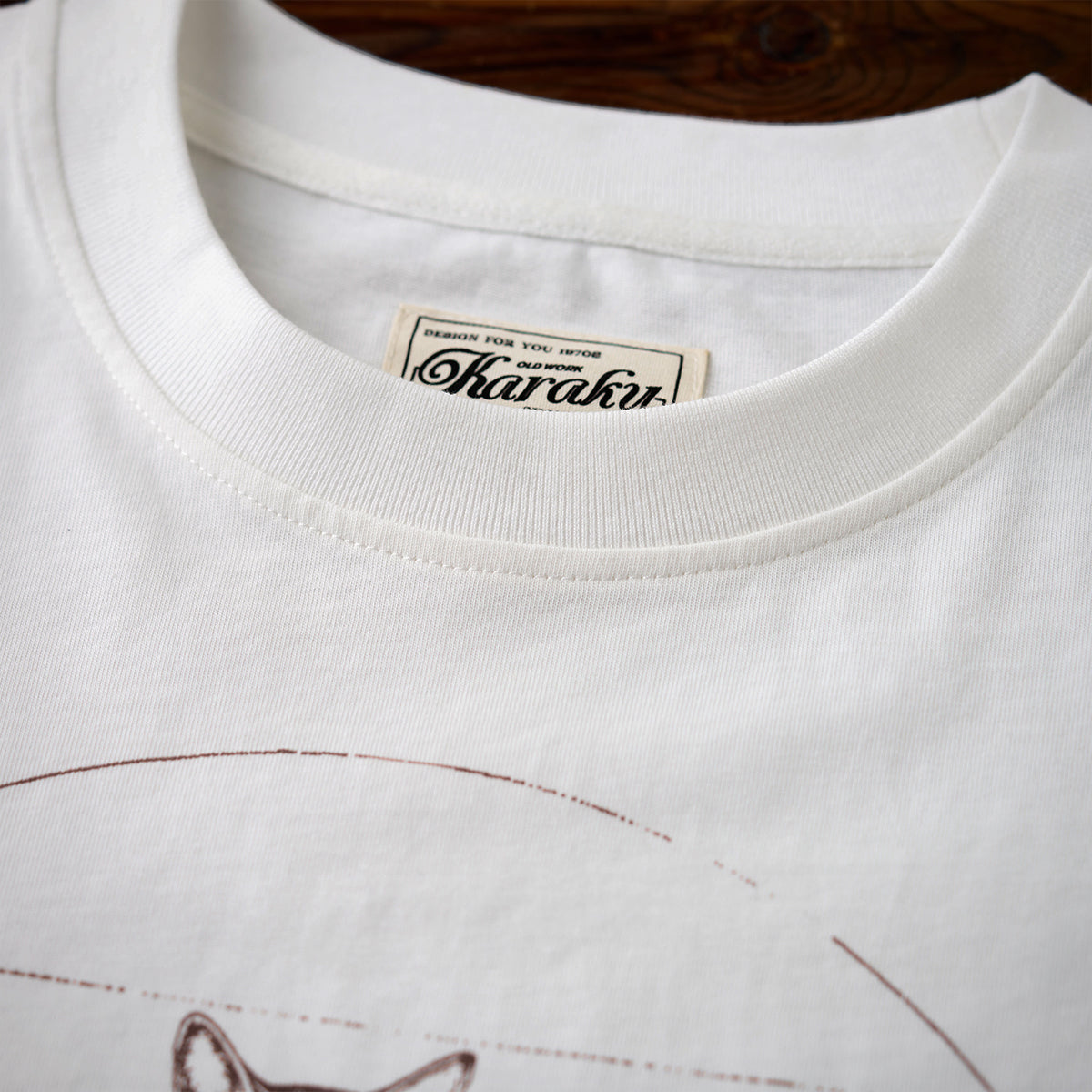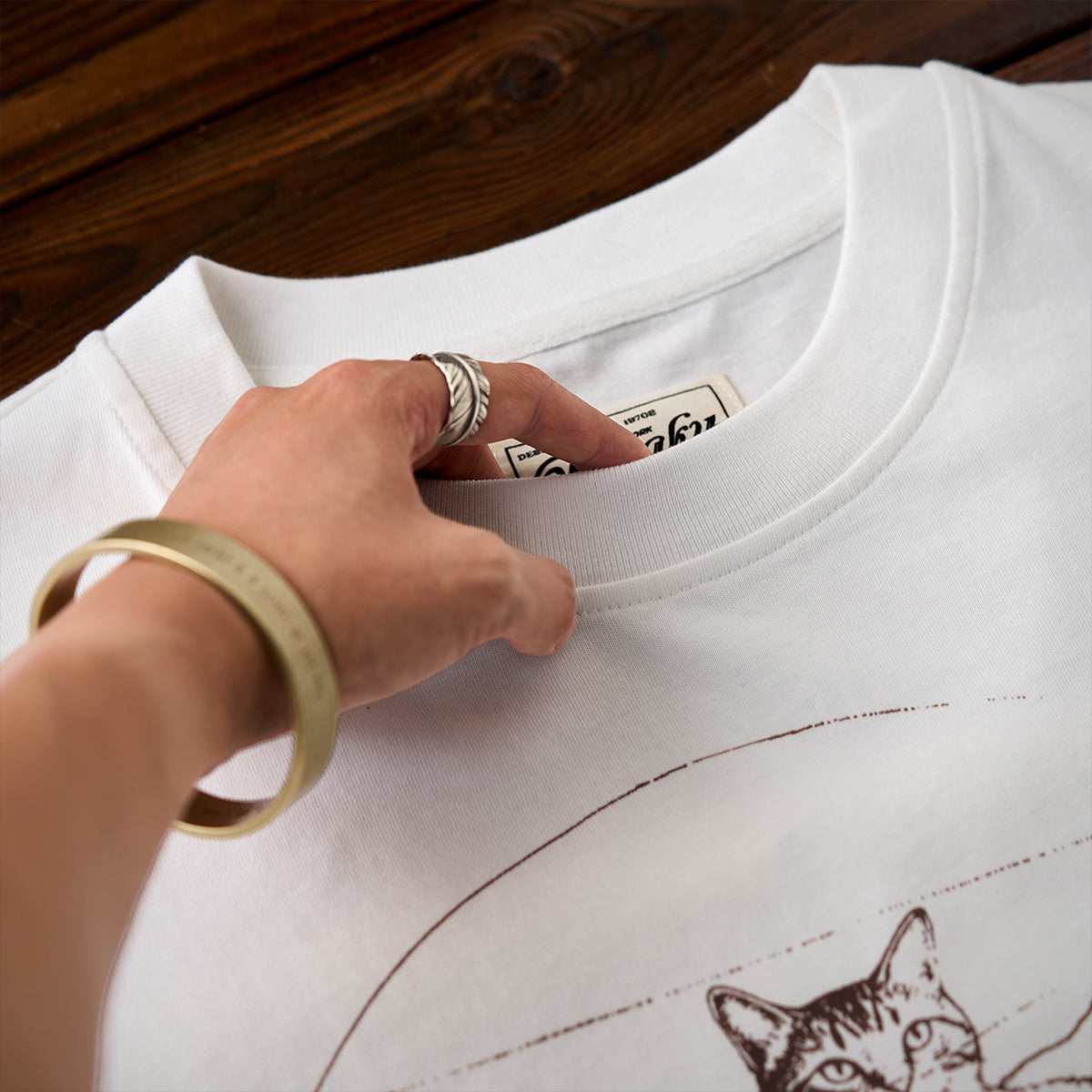 シンプルながら強烈なパロディ性があり、アートファンや猫好きの双方にアピール。カジュアルなスタイルにぴったり、日常はキャンバススニーカーと合わせても気軽に出掛けたくなります。