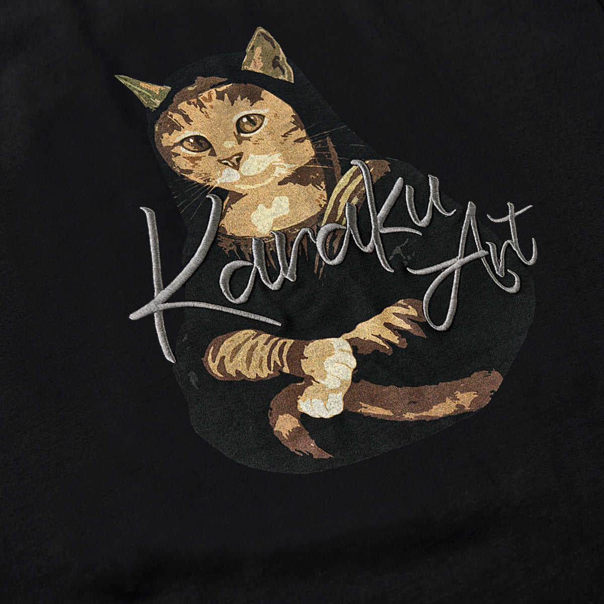 手書き風「KaraKu Art」刺繍は背景に自然に溶け込むように配置されて、イラストの主張を邪魔していません。