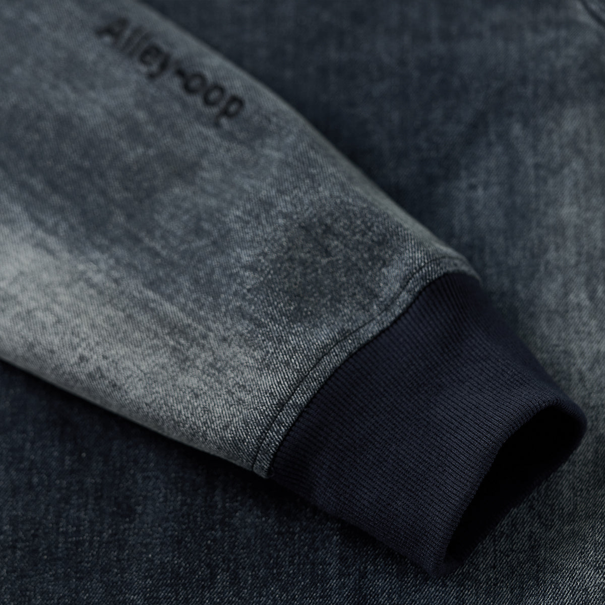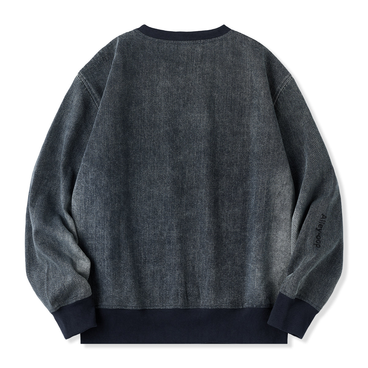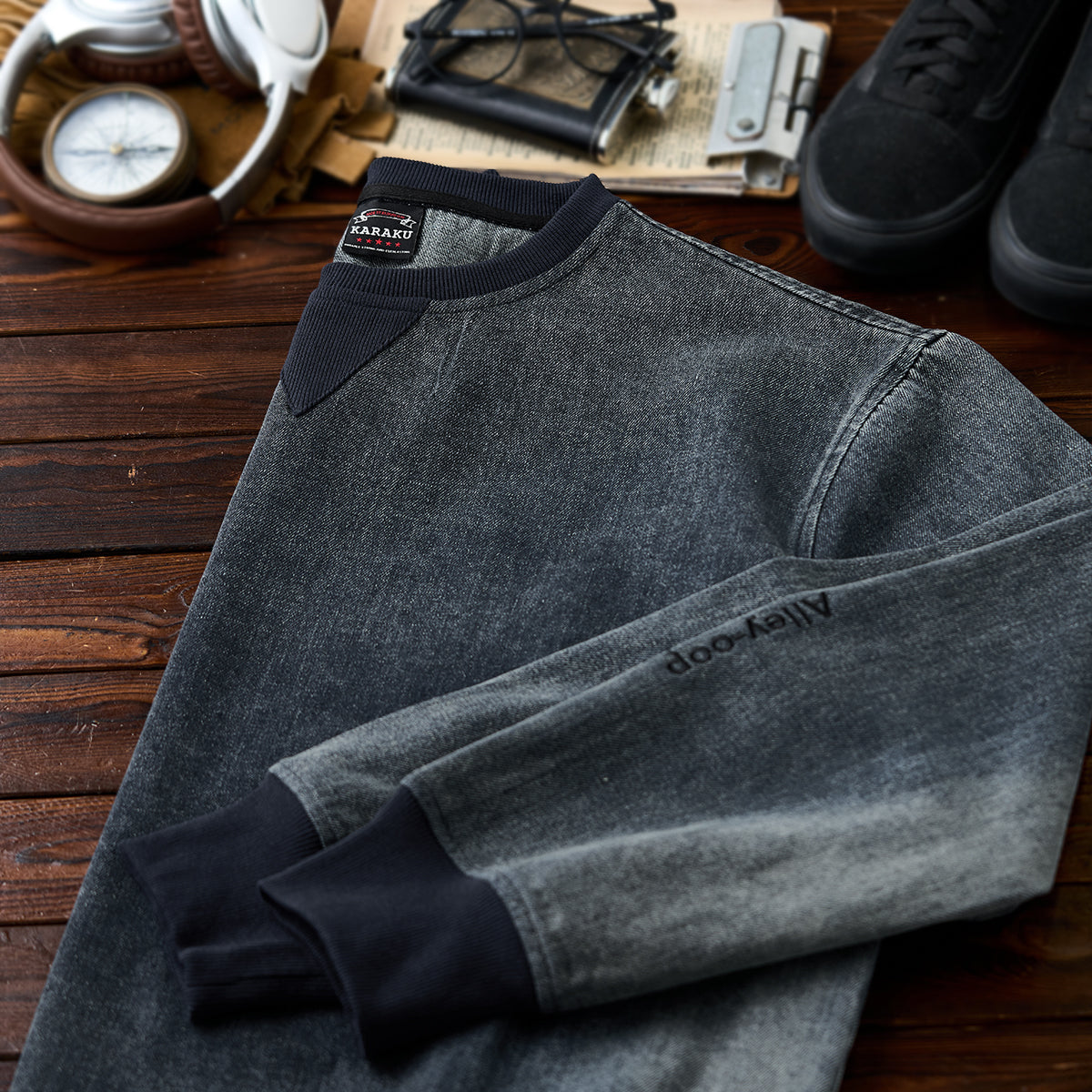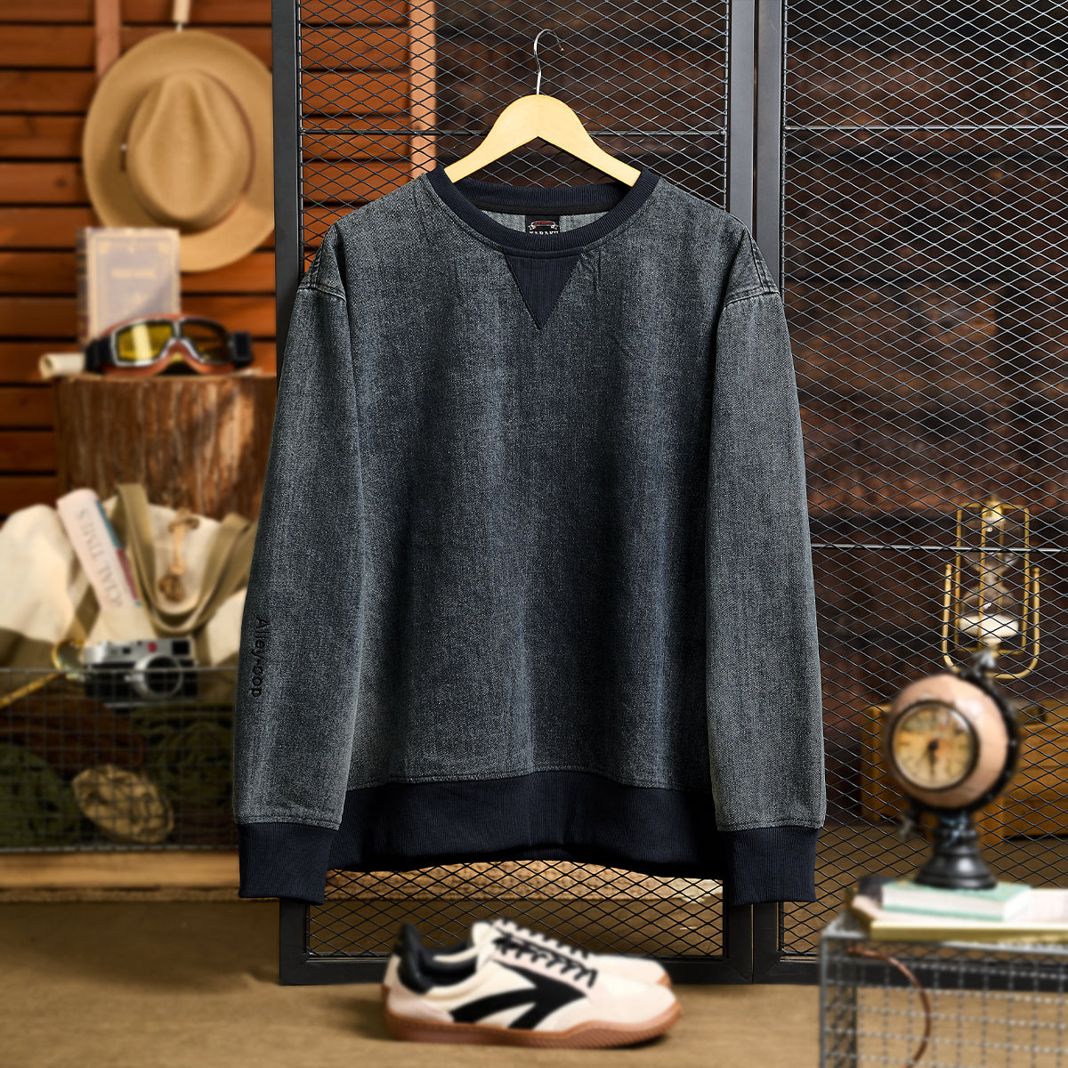 【予約】袖「Alley-oop」刺繡 Vガゼットストーンウォッシュデニムスウェット