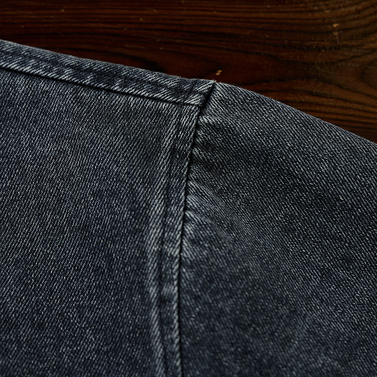 コットンをメインに使用し、その柔らかさと通気性によって、着心地の良さと快適さを提供します。ストーンウォッシュ特有の色落ちとヴィンテージ感が、カジュアルかつ洗練された雰囲気を演出しています。