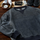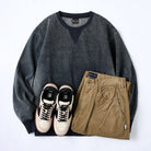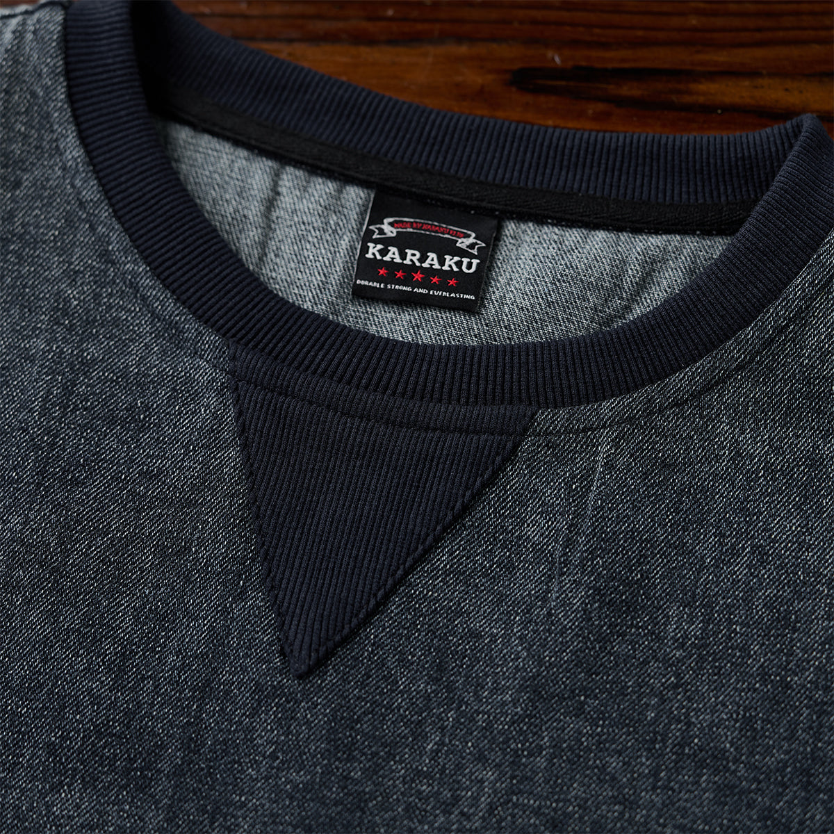 襟元の「Vガゼット」デザインは、クラシックなスウェットシャツの伝統的なディテールを取り入れ、デザイン性と機能性を両立させています。