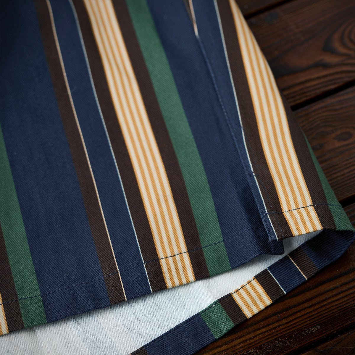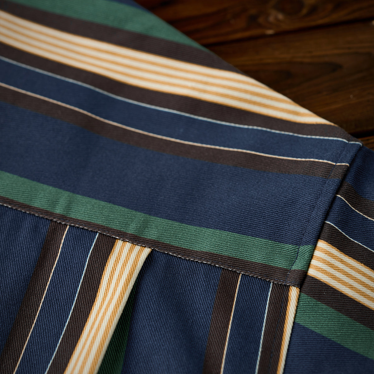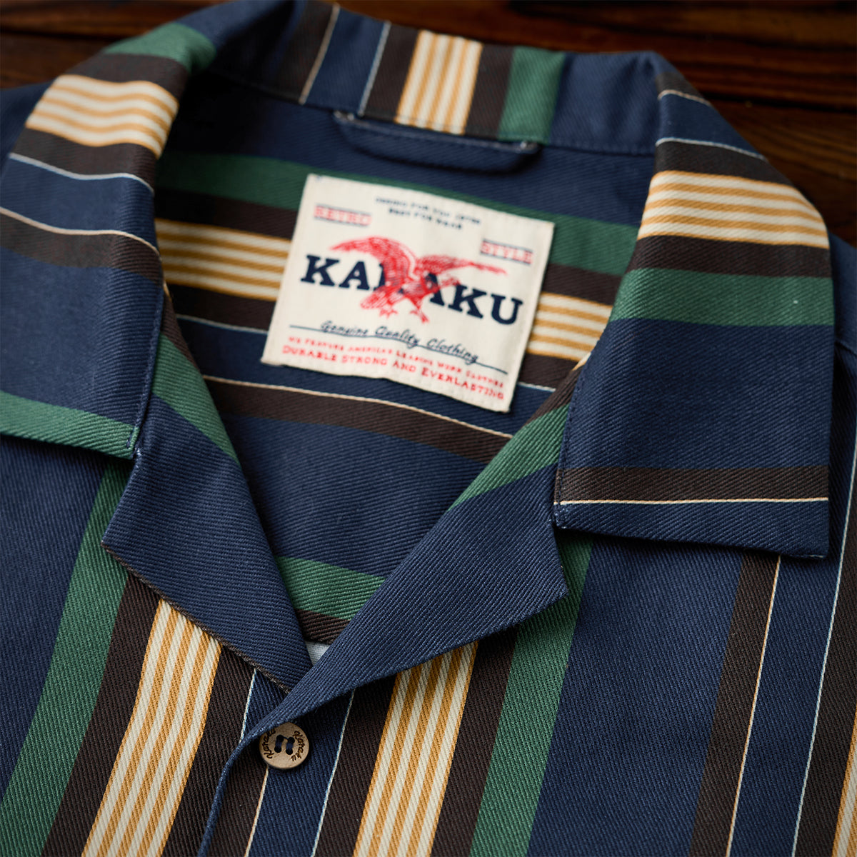 【予約】「STAY TRUE」刺繍ワッペン マルチストライプ柄オープンカラーシャツ