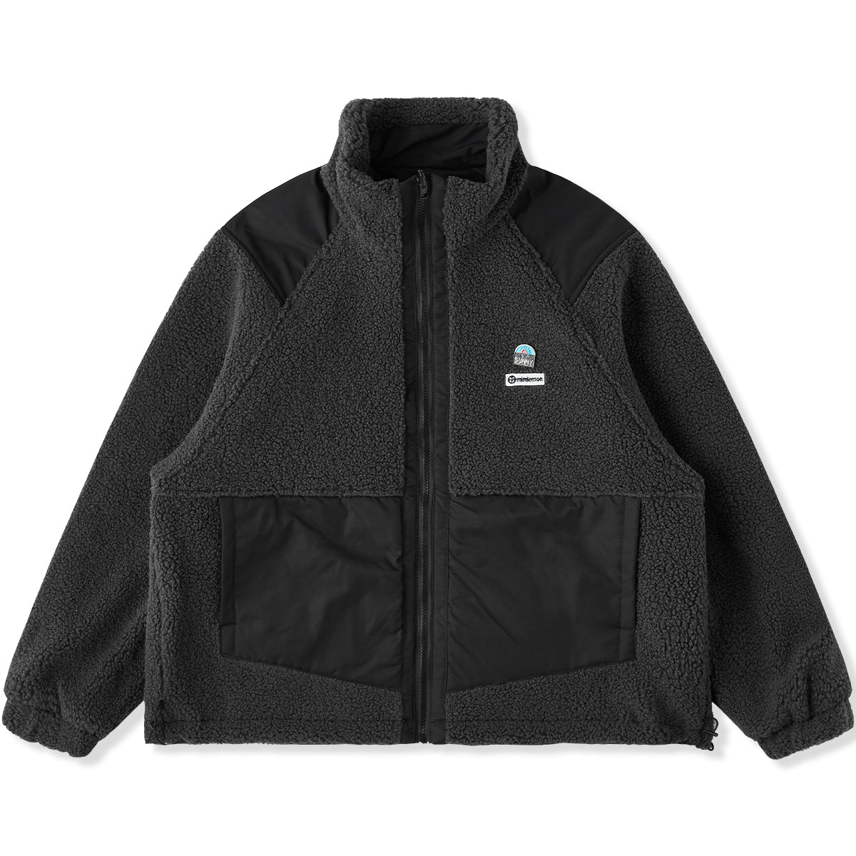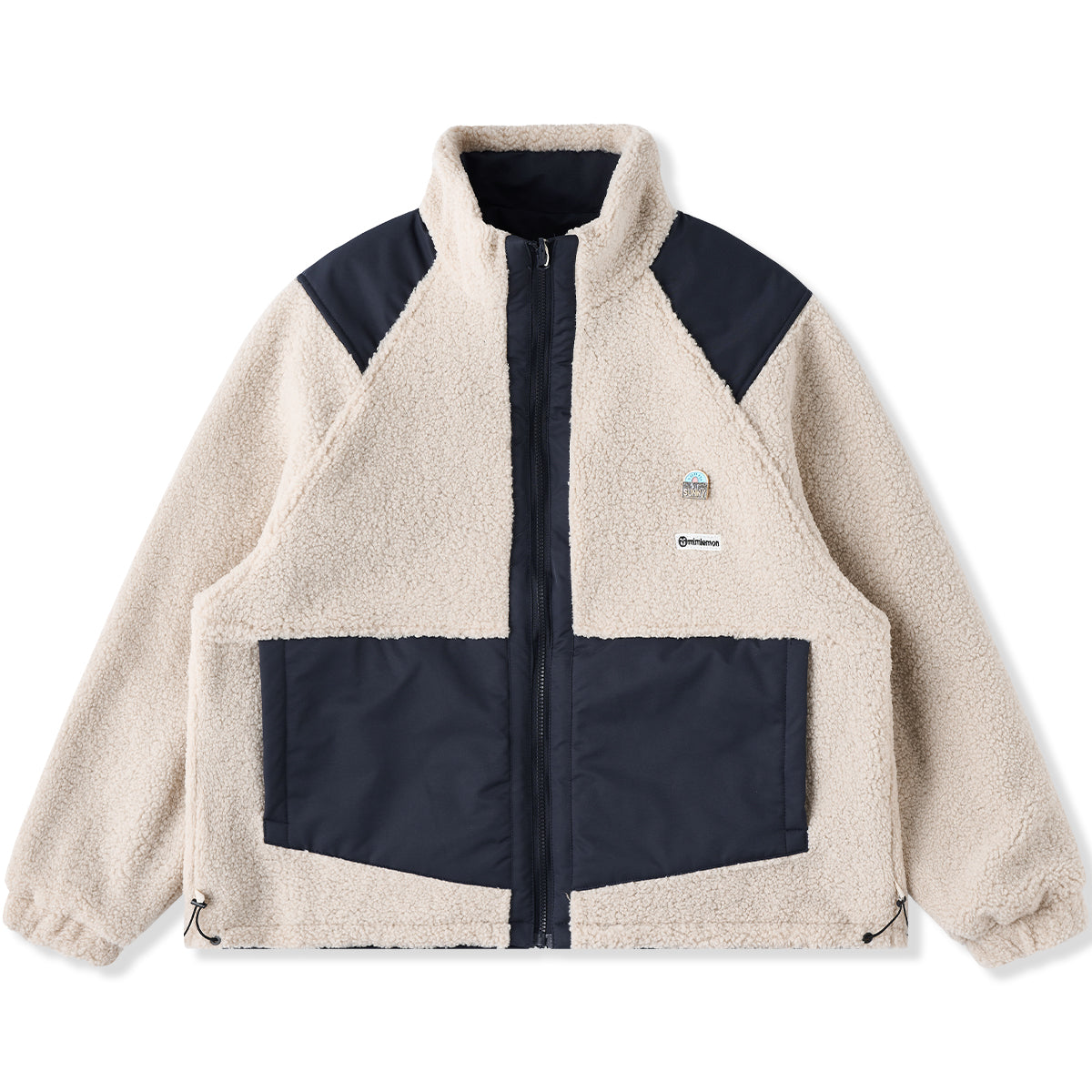リバーシブル仕様 無地&ボア・異素材コンビスタンドカラージャケット
