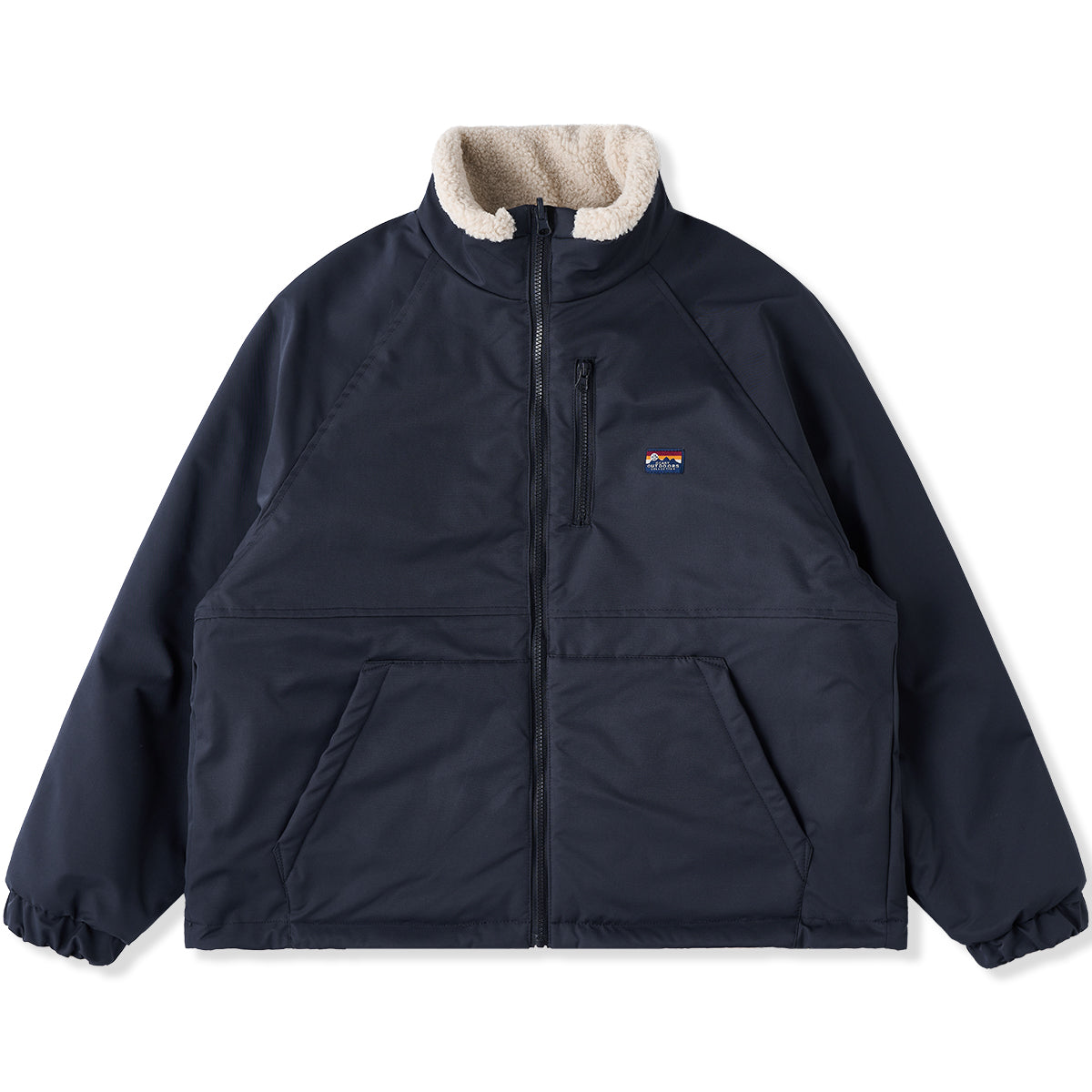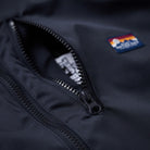胸元にシンプルなワッペンとロゴ刺繍が施されており、アクセントとなっています。袖口と裾にゴム入りで風の侵入を防ぎます。