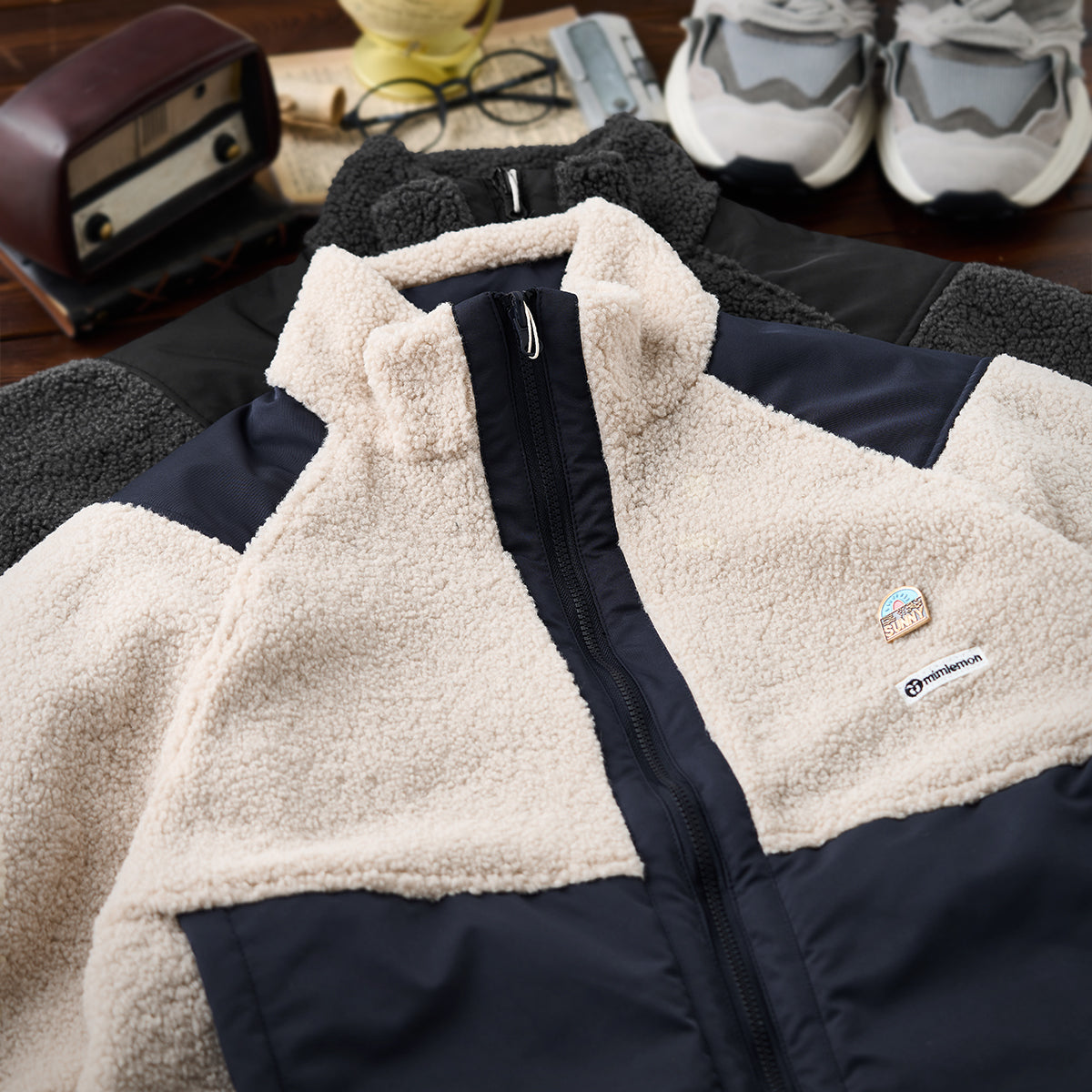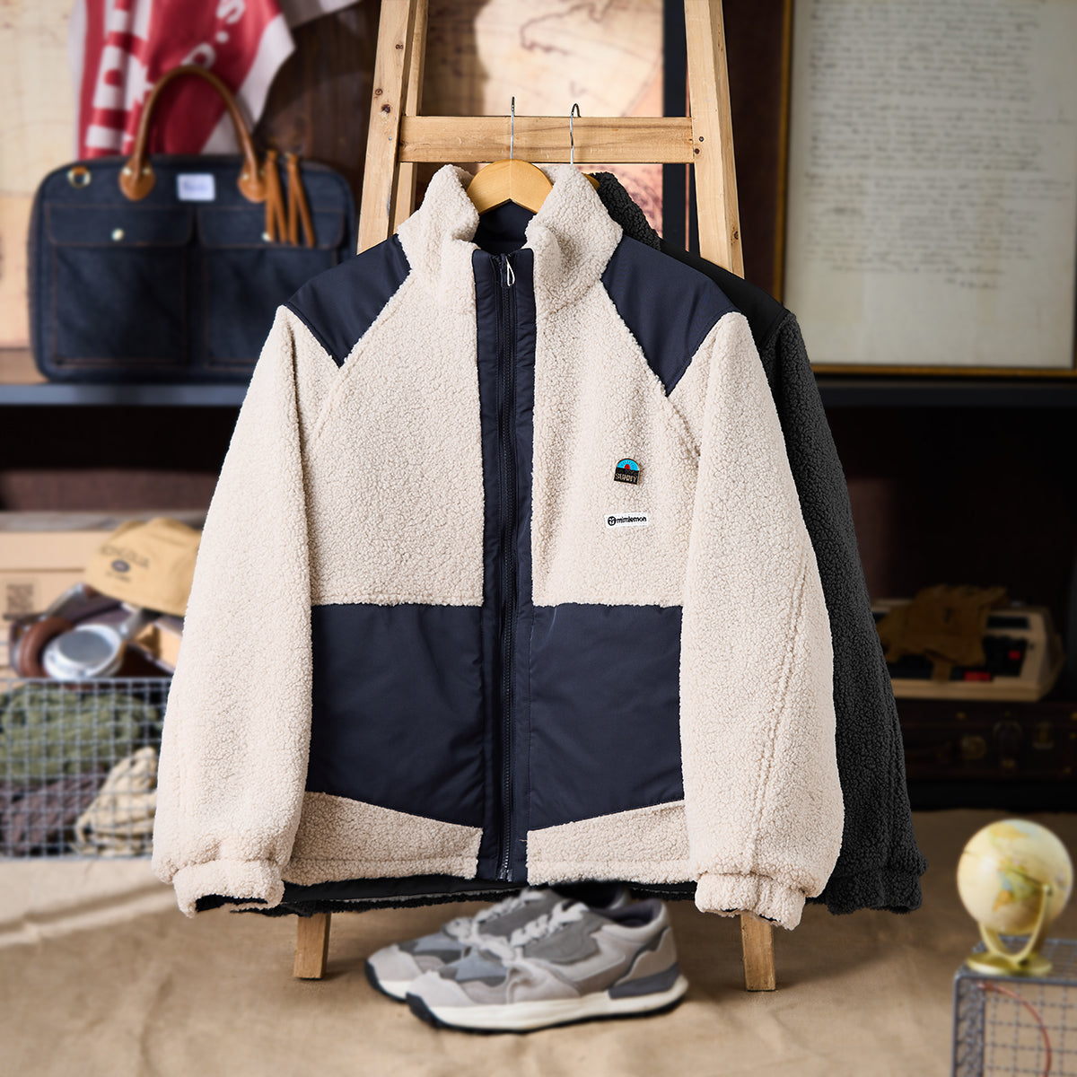 表面は異なる素材を組み合わせており、フリース素材とナイロン素材を切り替え可能です。リバーシブルデザインにより、用途やスタイルに応じて気軽に変更できるのが特徴です。