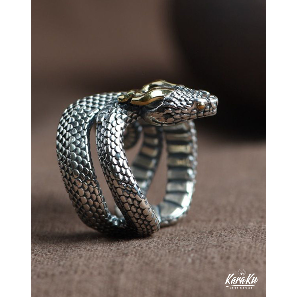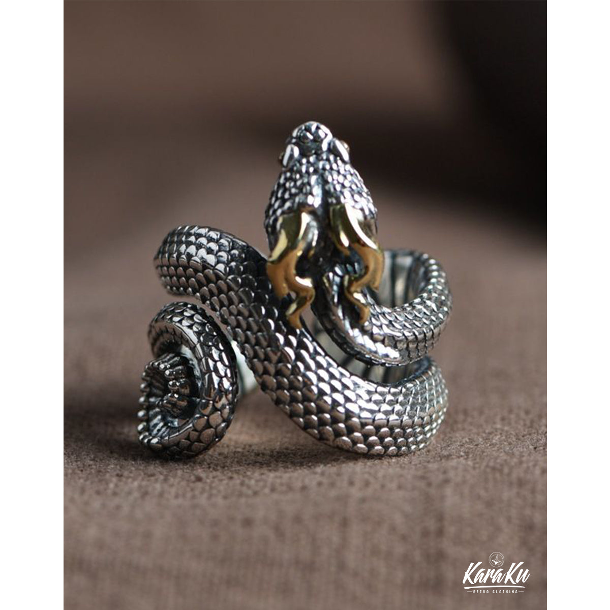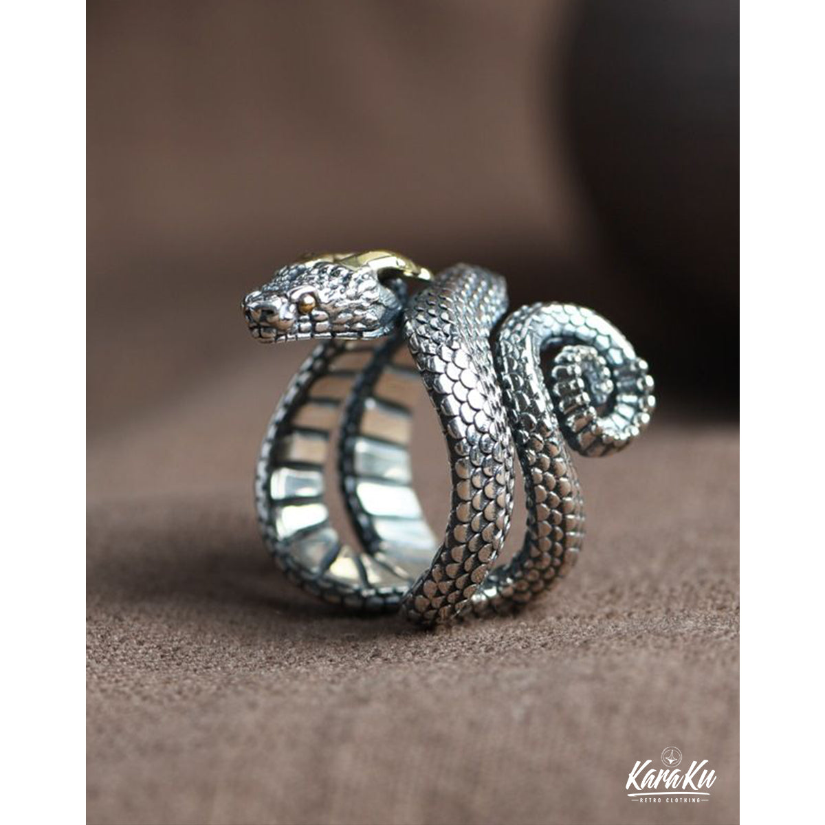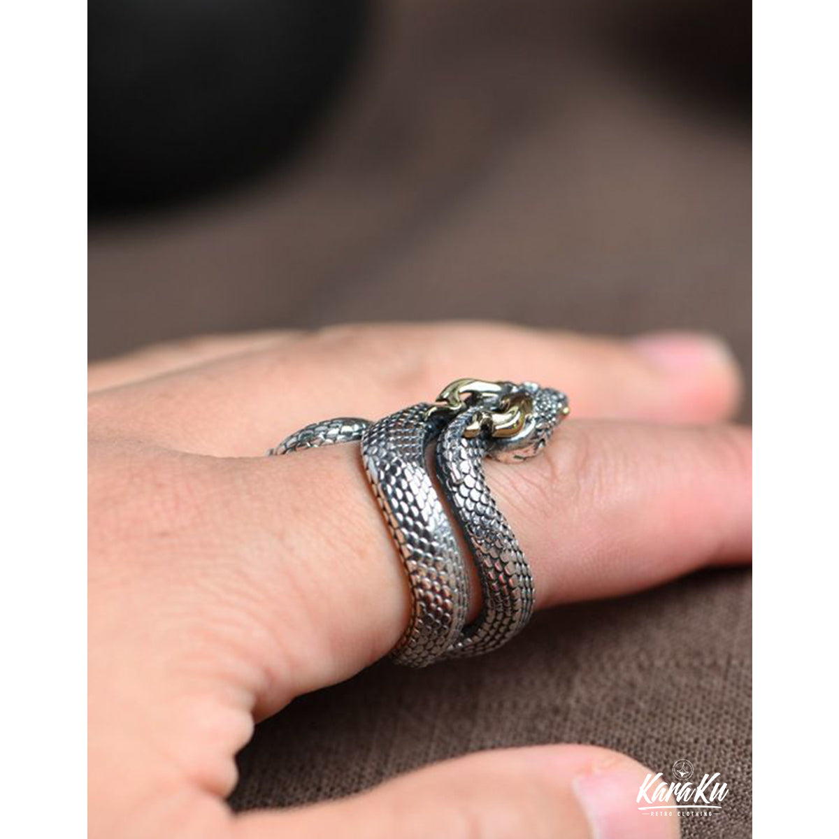 シルバー925を使用して、高級感と重厚感がある。 表面はテクスチャ加工が施されて、ヘビの鱗の質感をリアルに表現し、 マットな質感と光沢のある部分の組み合わせが、奥行きのあるデザインを生み出している。