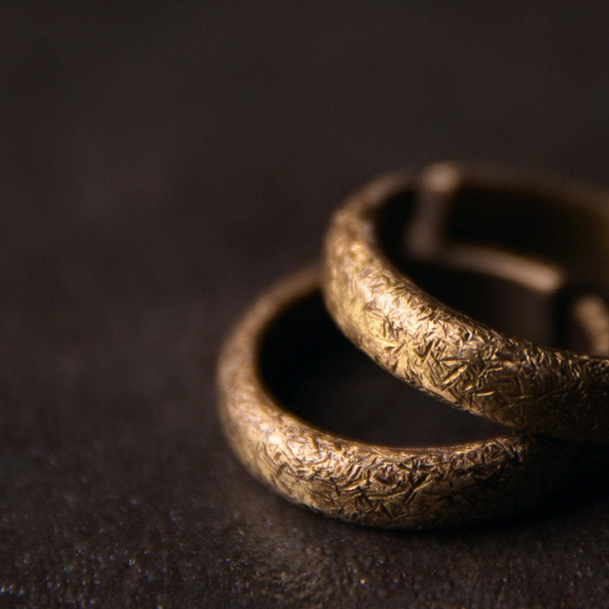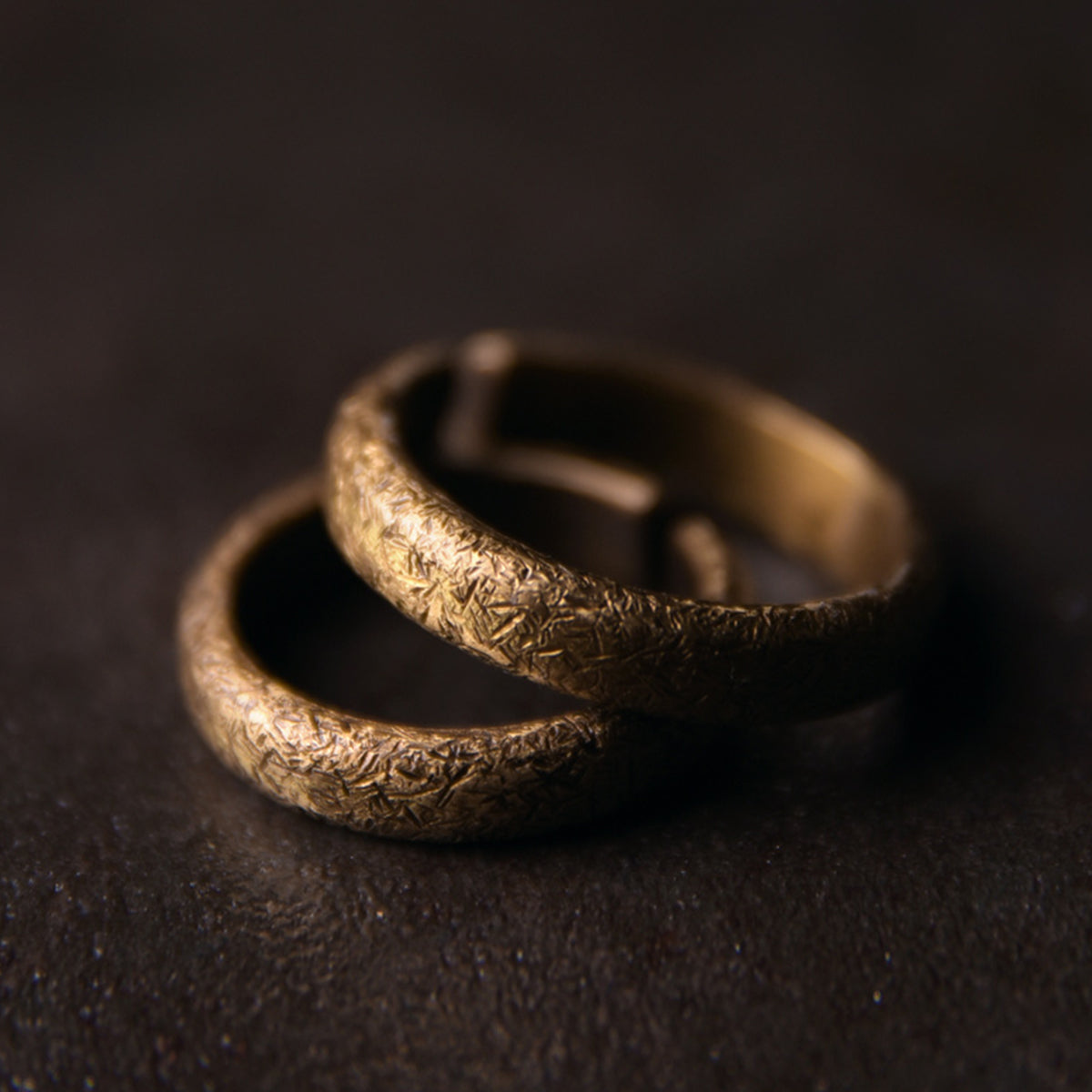 「職人手作り」ランダムテクスチャ真鍮オープンリング