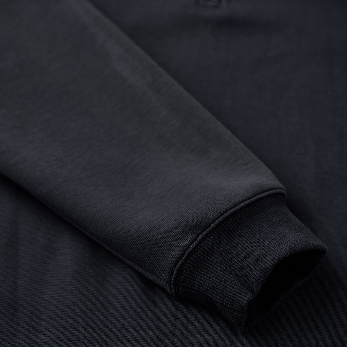 前立てにアンティークブロンズカラーのハーフジップをあしらったプルオーバースウェット。シンプルなデザインに、ヴィンテージ感漂う金具の色味がアクセントとなり、上品さと無骨さを両立しています。ゆったりとしたシルエットで、インナーとのレイヤードやジップの開閉による着こなしアレンジも自在。リブ仕様の袖口と裾が程よくフィット感を生み、デイリーからアウトドアシーンまで幅広く対応します。カラーは使いやすい3色展開。シンプルでありながらディテールにこだわりを感じさせる、長く愛用できる一着です。