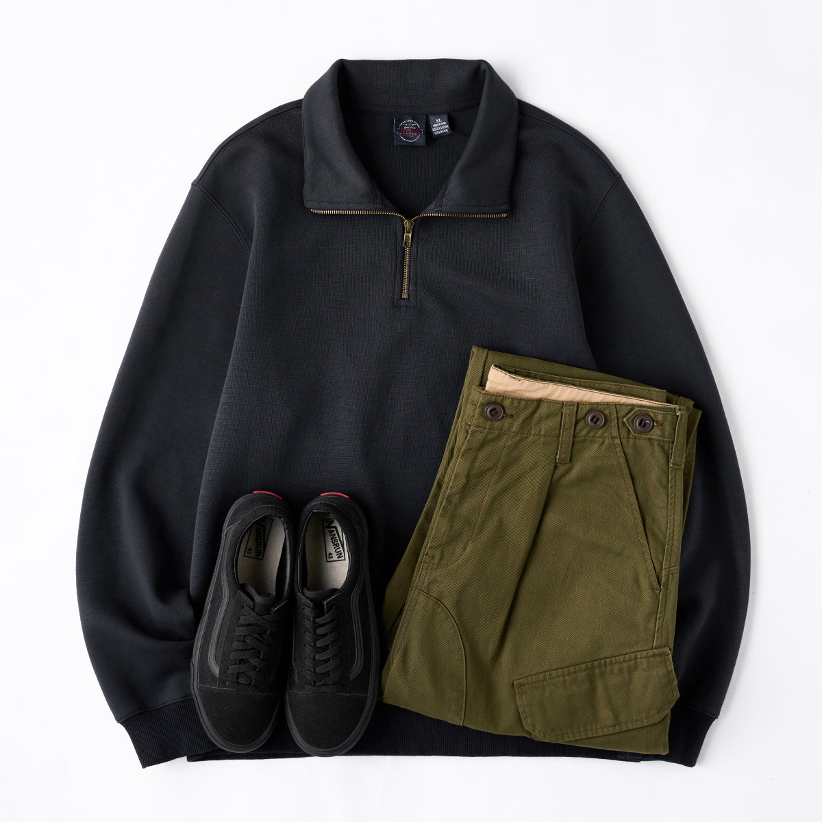 3色展開 アンティークブロンズハーフジップ付きエアーレイヤースウェット