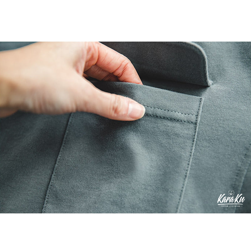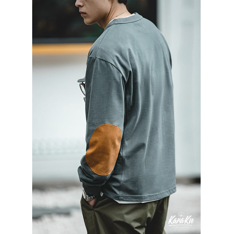Item ini mempunyai reka bentuk tampalan yang menarik perhatian pada kedua-dua siku, memberikannya rasa vintaj dan membuat kenyataan walaupun dipakai bersendirian. Bentuknya telah menjatuhkan bahu, memberikannya ketahanan dan rasa santai. Dijahit dua kali pada leher dan labuh, kolar berusuk dan cuffs, dan bahu jatuh yang memberikan suasana santai tanpa terlalu ketat, manakala siluet longgar menghilangkan perasaan tidak halus dan mencipta kesan matang. Diperbuat daripada 100% kapas, ia mempunyai tekstur yang tahan lama dan hangat, serta mempunyai penyerapan air dan keanjalan yang sangat baik. Bukan sahaja selesa dan tahan lama, ia juga mempunyai tekstur gebu yang memberikan keselesaan maksimum.