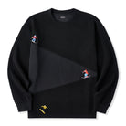 大人気の刺繍入りTシャツが長袖で新登場!半袖モデルは清潔感あるホワイト、長袖はシックなブラックで展開。異素材の切り替えで雪山の斜面を表現したユニークな一着です。前身頃には立体感のあるピケ編み生地を採用し、斜めの切り替えラインが雪山の傾斜を想起させるデザインに。その"斜面"には軽やかに滑走するスキーヤーが刺繍で配置され、遊び心のあるディテールがシンプルなTシャツにストーリーを加えます。街でもアウトドアでも映える、“着るグラフィック”を楽しめるアイテムです。