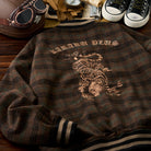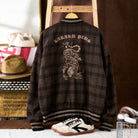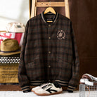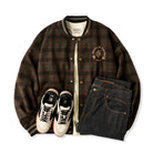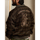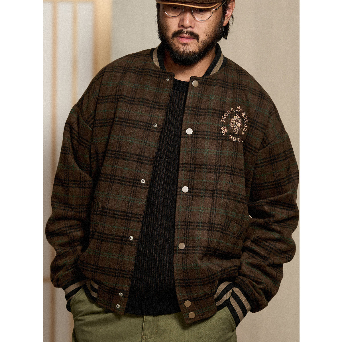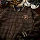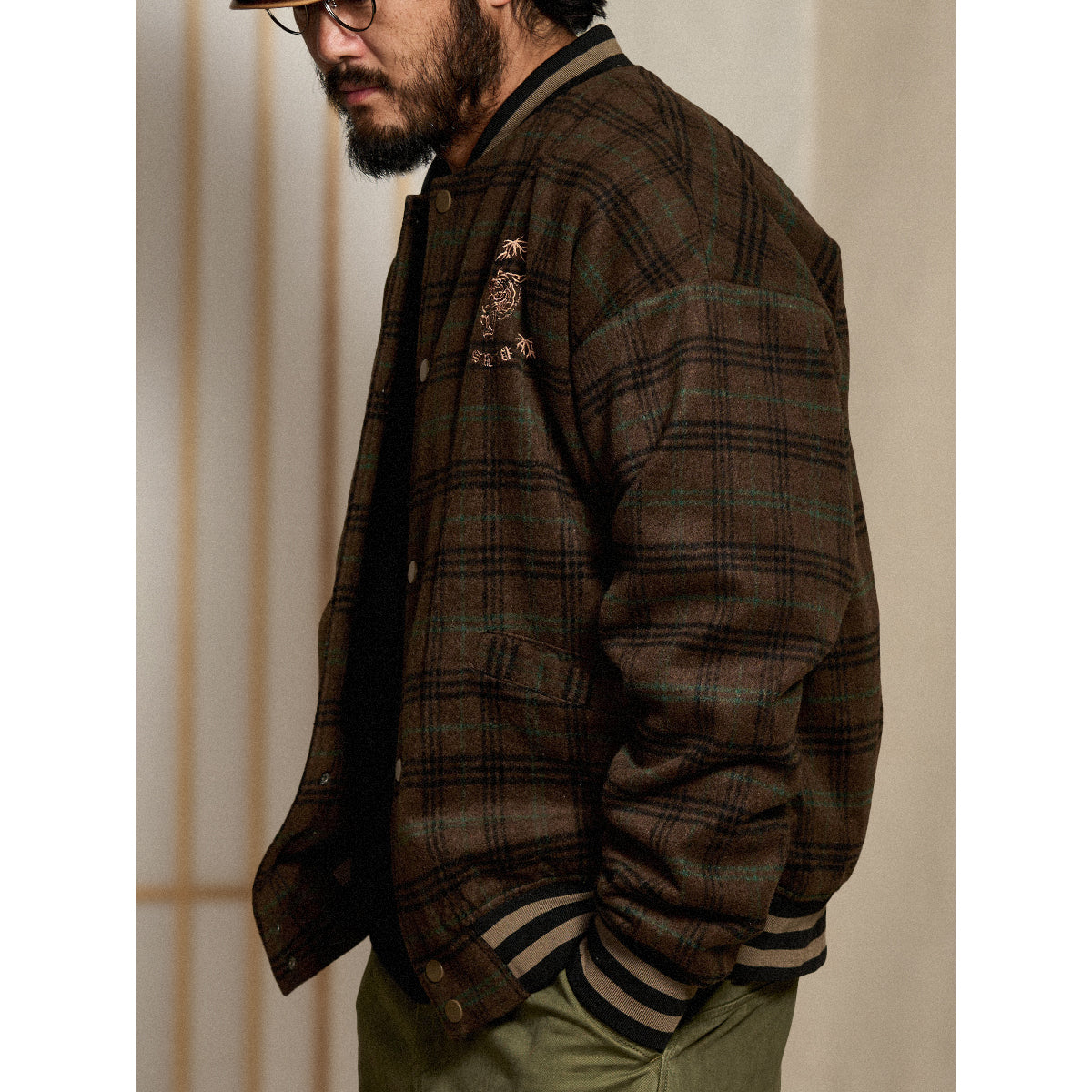 虎刺繡 ウール混ツイードチェック柄ベースボールジャケット