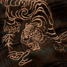 虎の尾や体に描かれた曲線的な模様は、伝統的な和柄の要素を取り入れて、豪華さと繊細さを兼ね備えている。虎の周囲にも竹や風を表現するようなデザインが施され、自然との一体感を感じさせる。