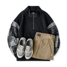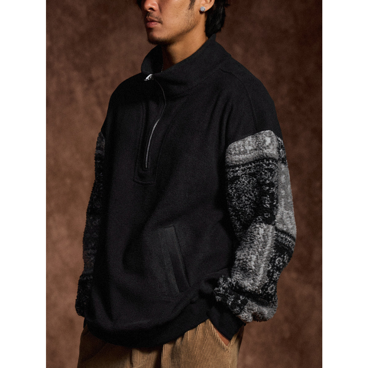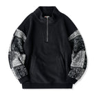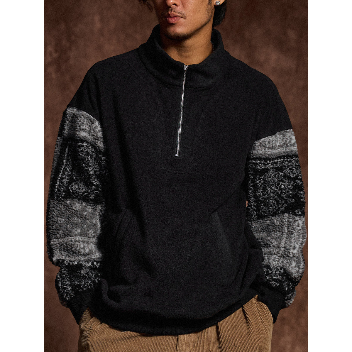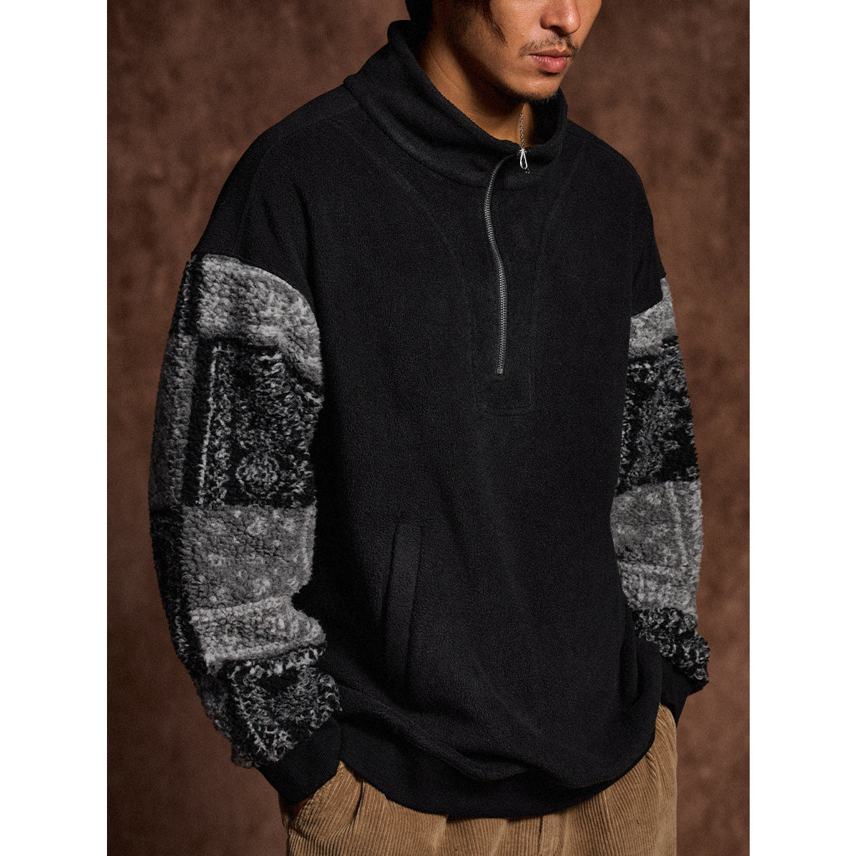 袖ペイズリー柄ボアコンビ 両面起毛フリースハーフジップスウェット