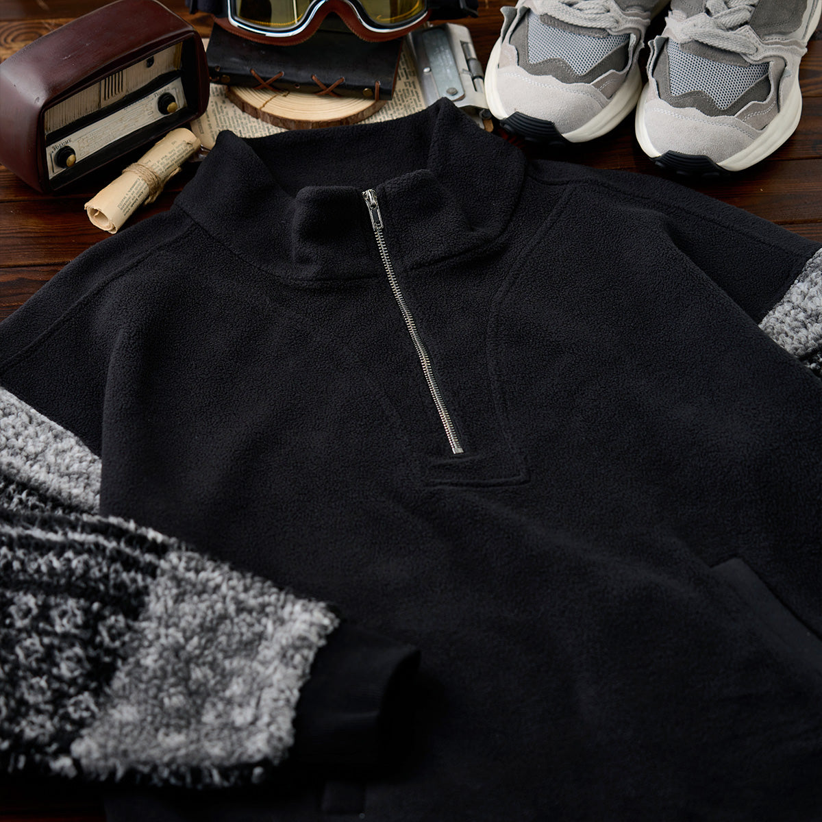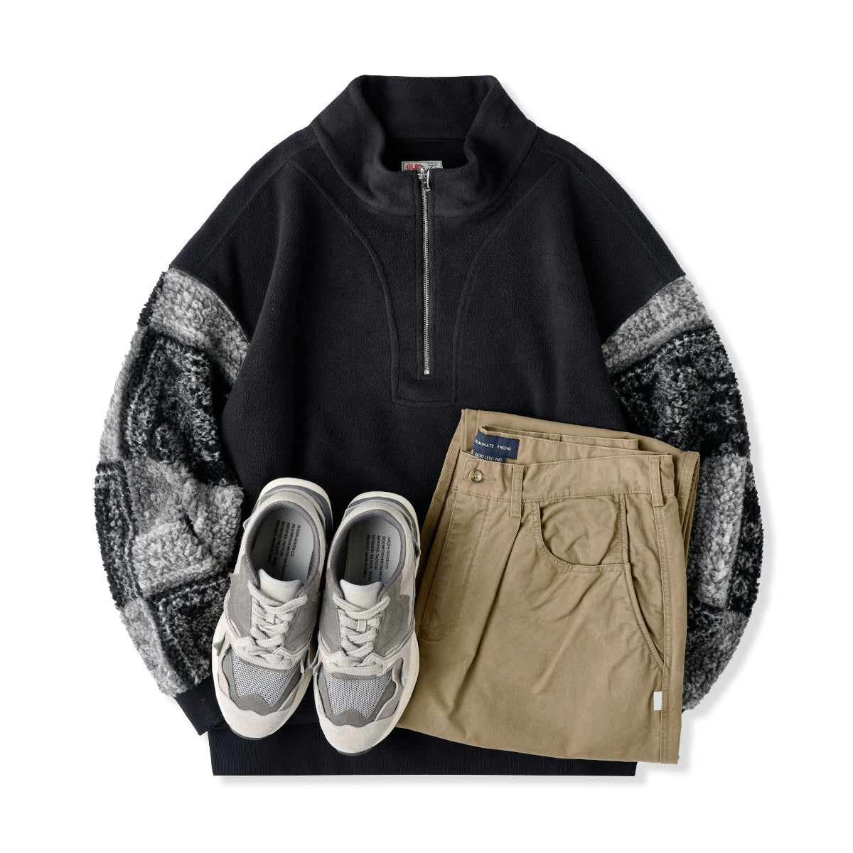 ハーフジップデザインは、着脱のしやすさとスタイリングの自由度を提供。ジップを開閉することで、カジュアルからスポーティな雰囲気まで調整可能です。