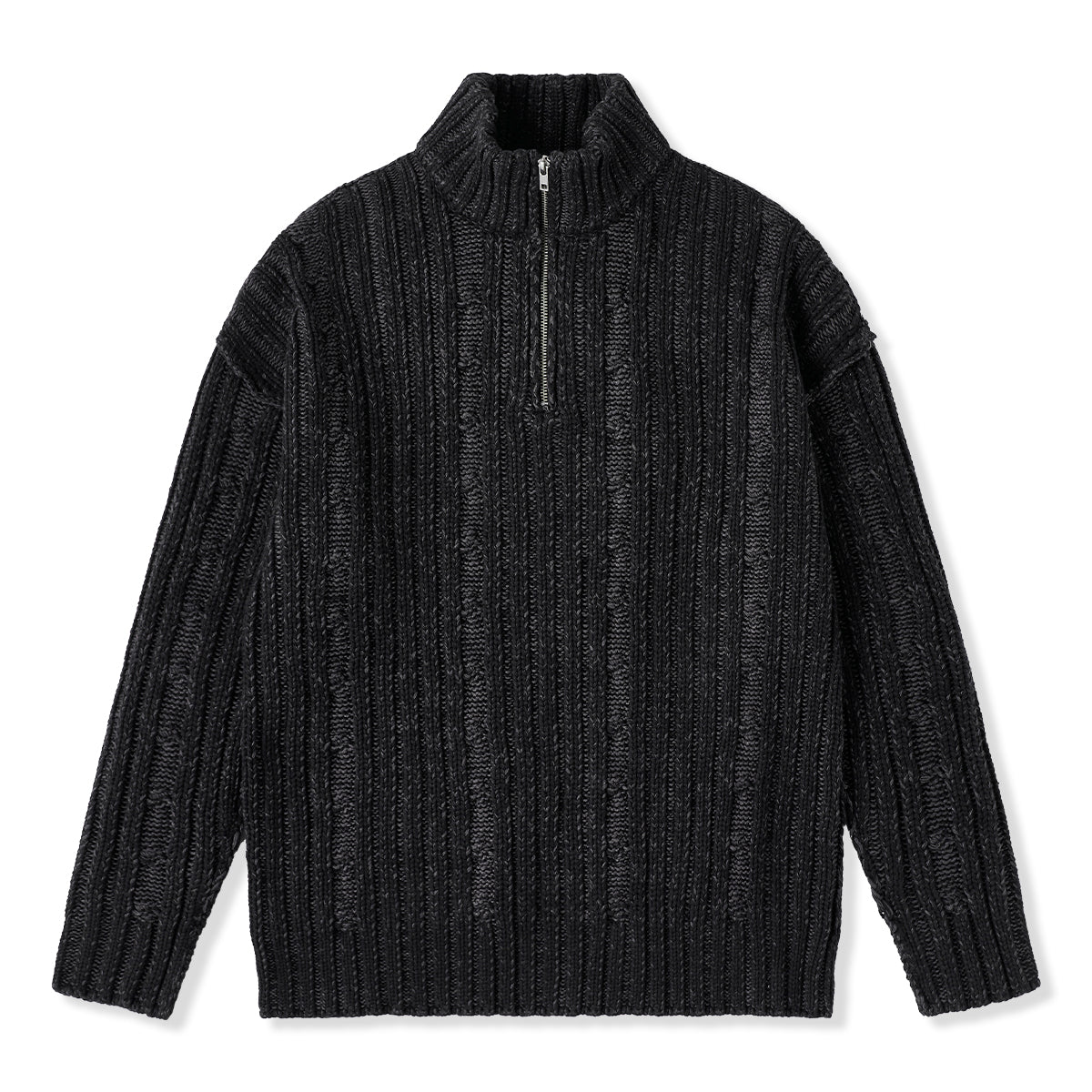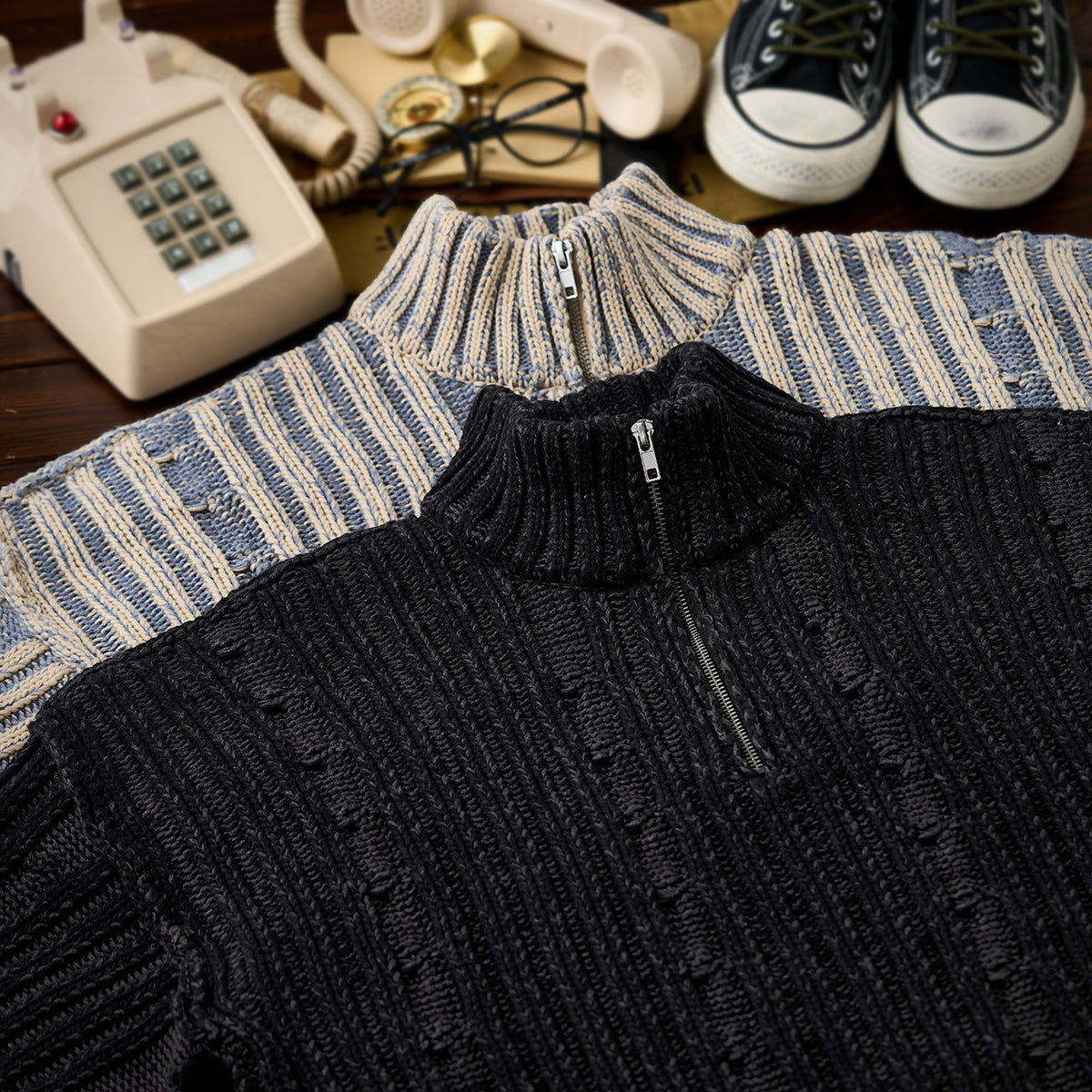 2色展開 リブ編みハーフジップスタンドカラーニットセーター