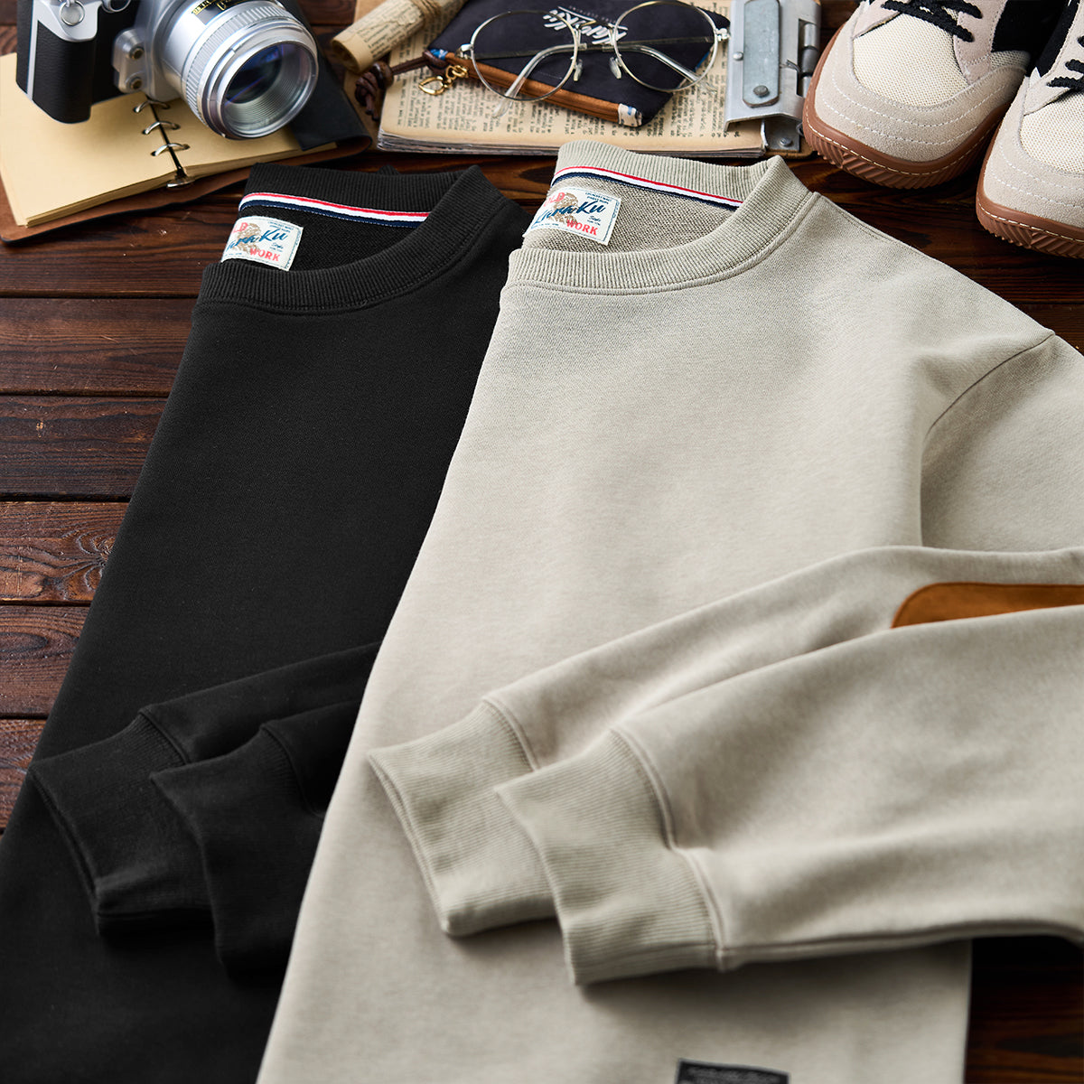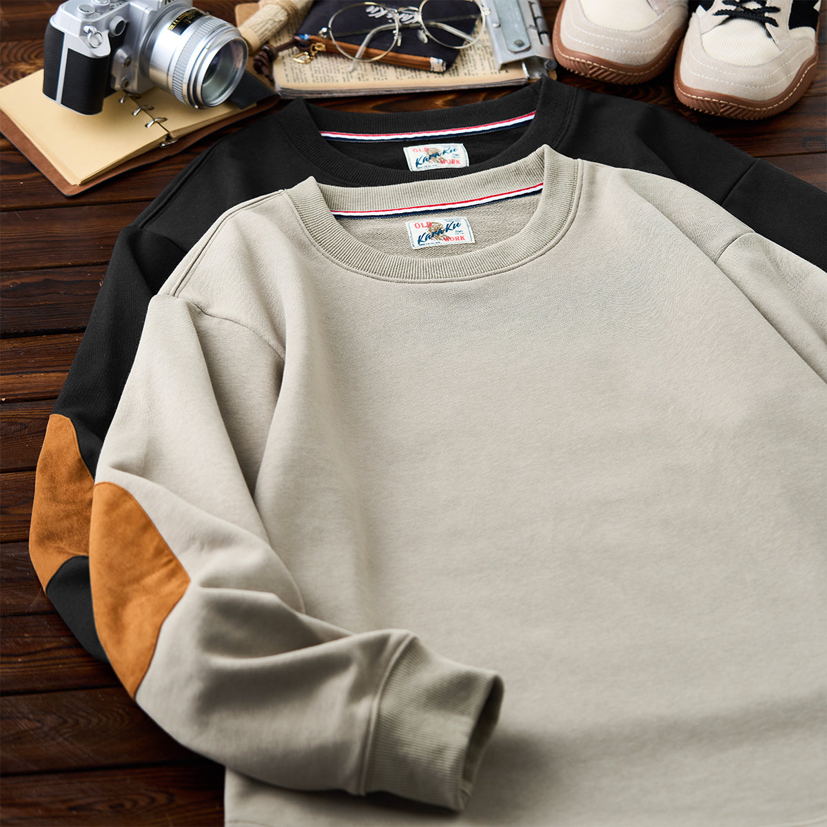 【予約】赤ヒモ付き 肘スエードパッチ入り裏パイルクルーネックスウェット