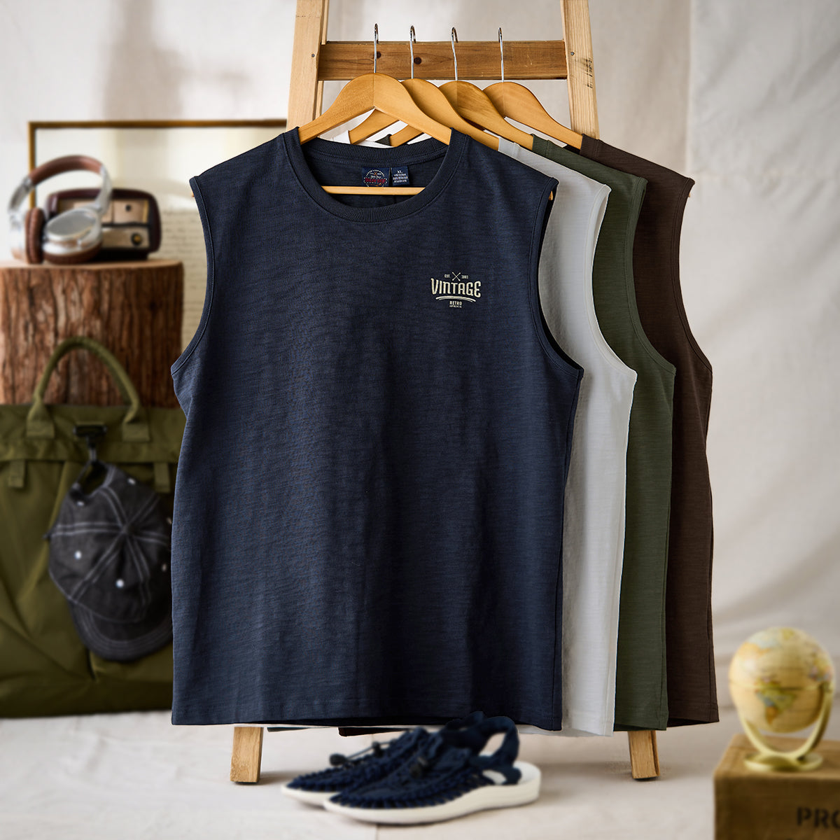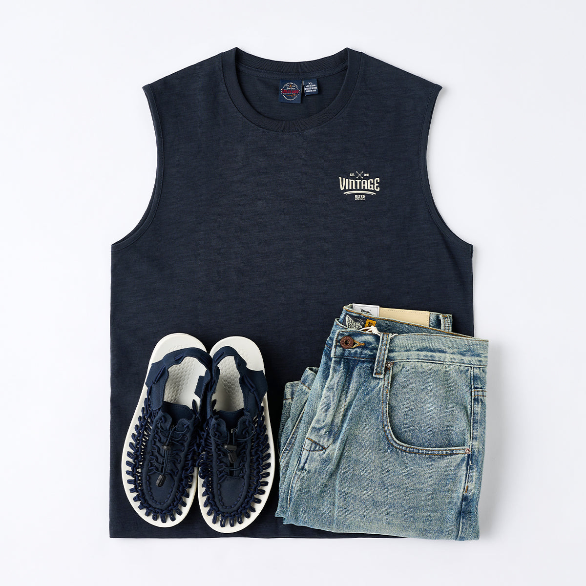 ベーシックながらも、胸元のミニプリントが程よいアクセントになったタンクトップ。一枚でもインナーとしても使いやすい万能アイテムです。柔らかく肌なじみの良いコットン素材を使用し、汗ばむ季節でも快適な着心地を実現。シルエットはややゆとりのあるレギュラーフィットで、リラックス感も◎。選べる4色展開で、スタイルや気分に合わせてチョイス可能。カジュアルコーデはもちろん、ストリートやアウトドアスタイルにもぴったりです。
