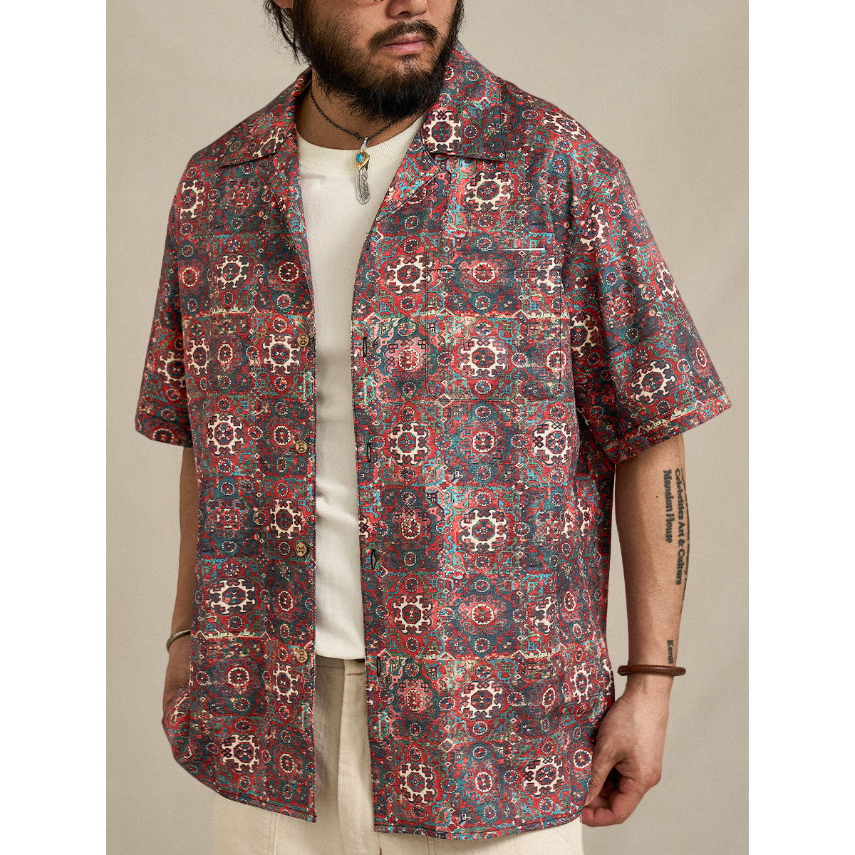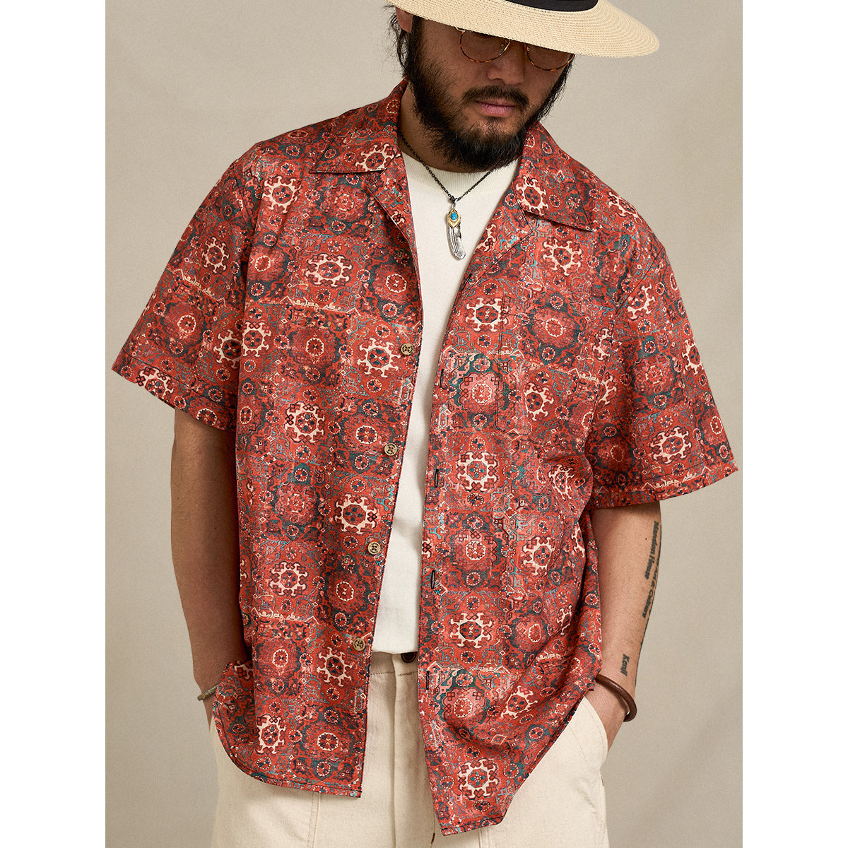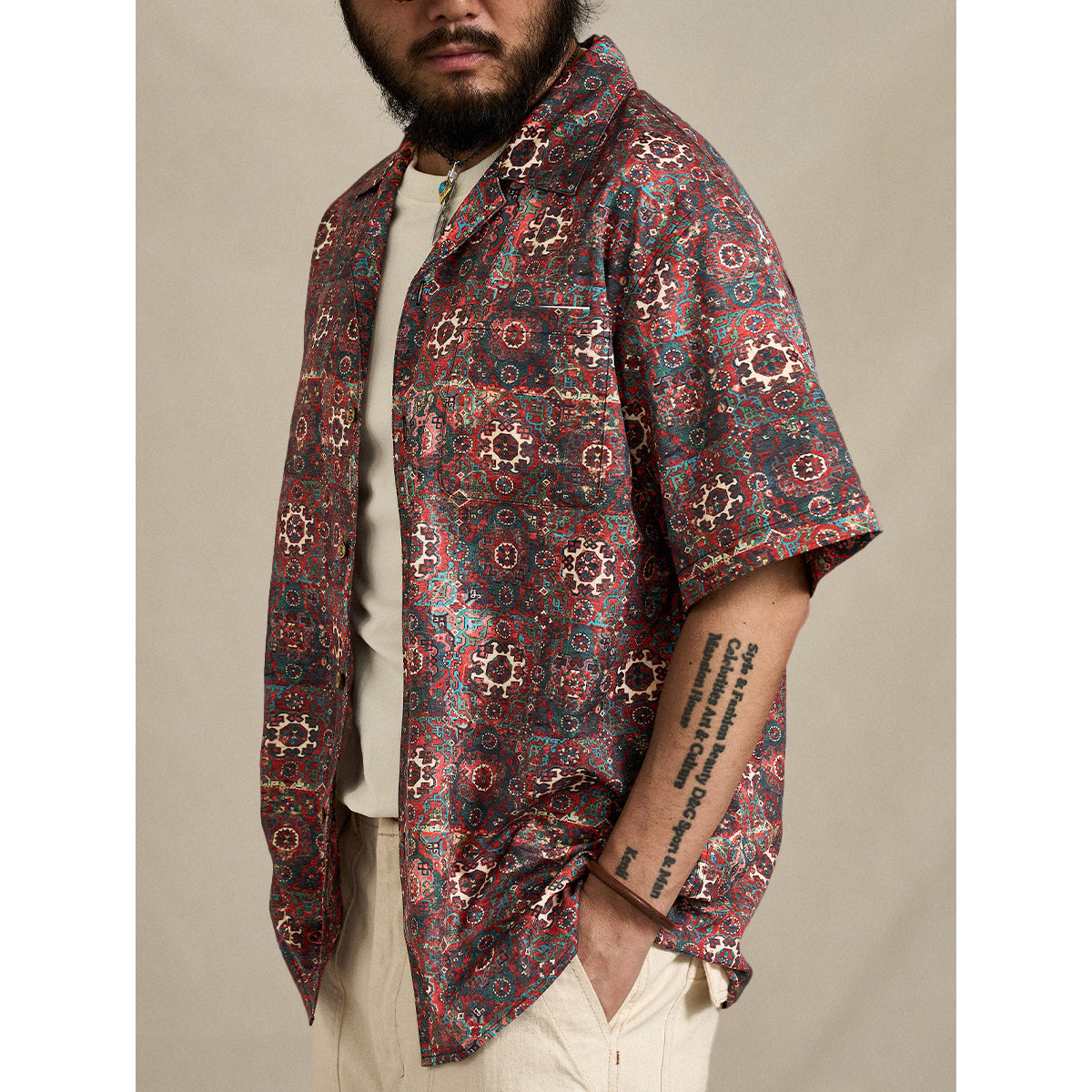 【予約】ペルシャエスニック調パターン総柄アロハシャツ