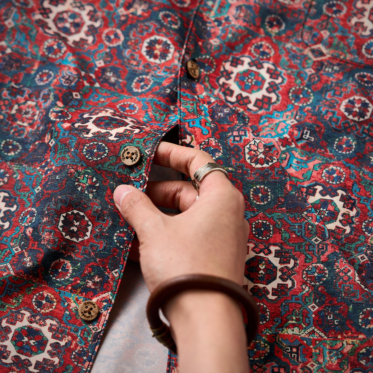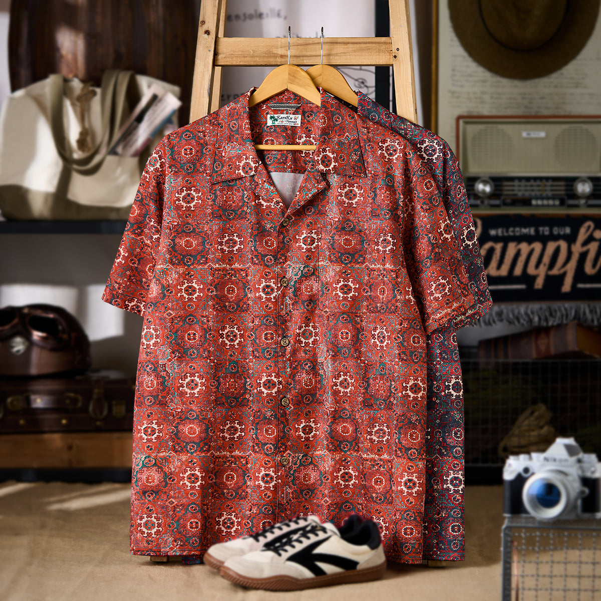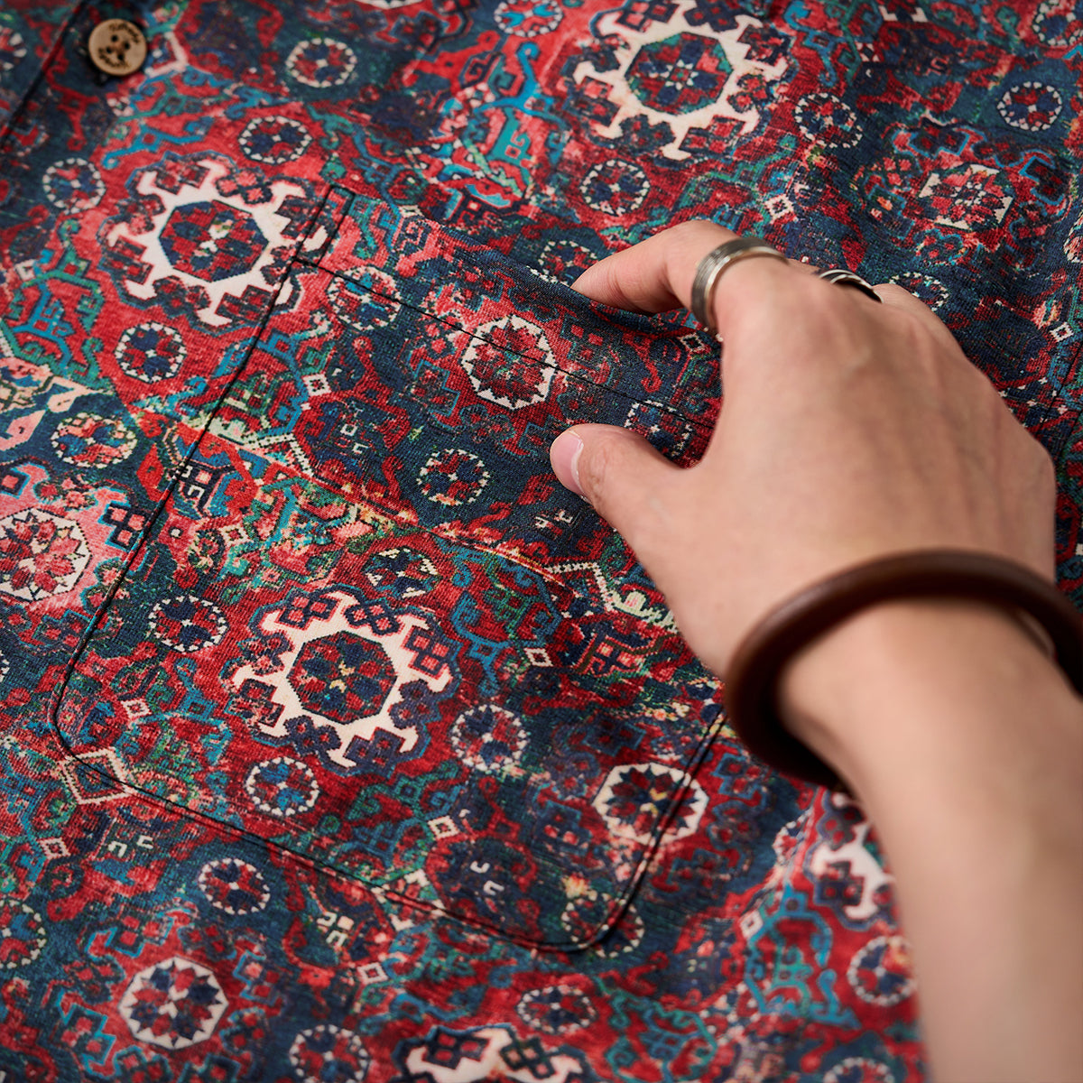 【予約】ペルシャエスニック調パターン総柄アロハシャツ