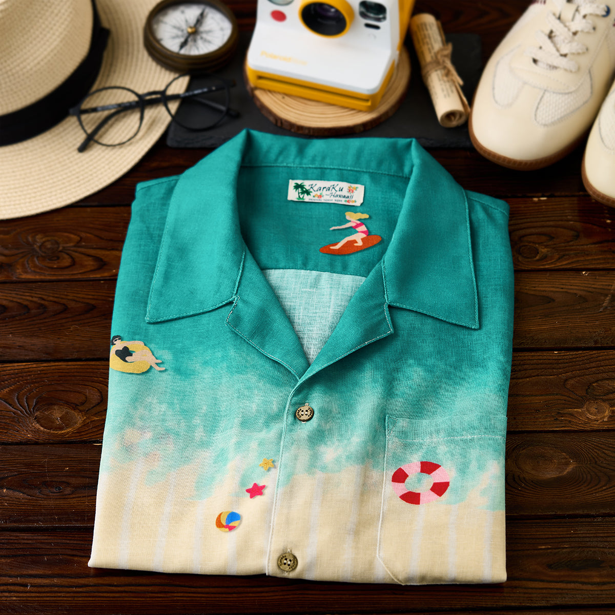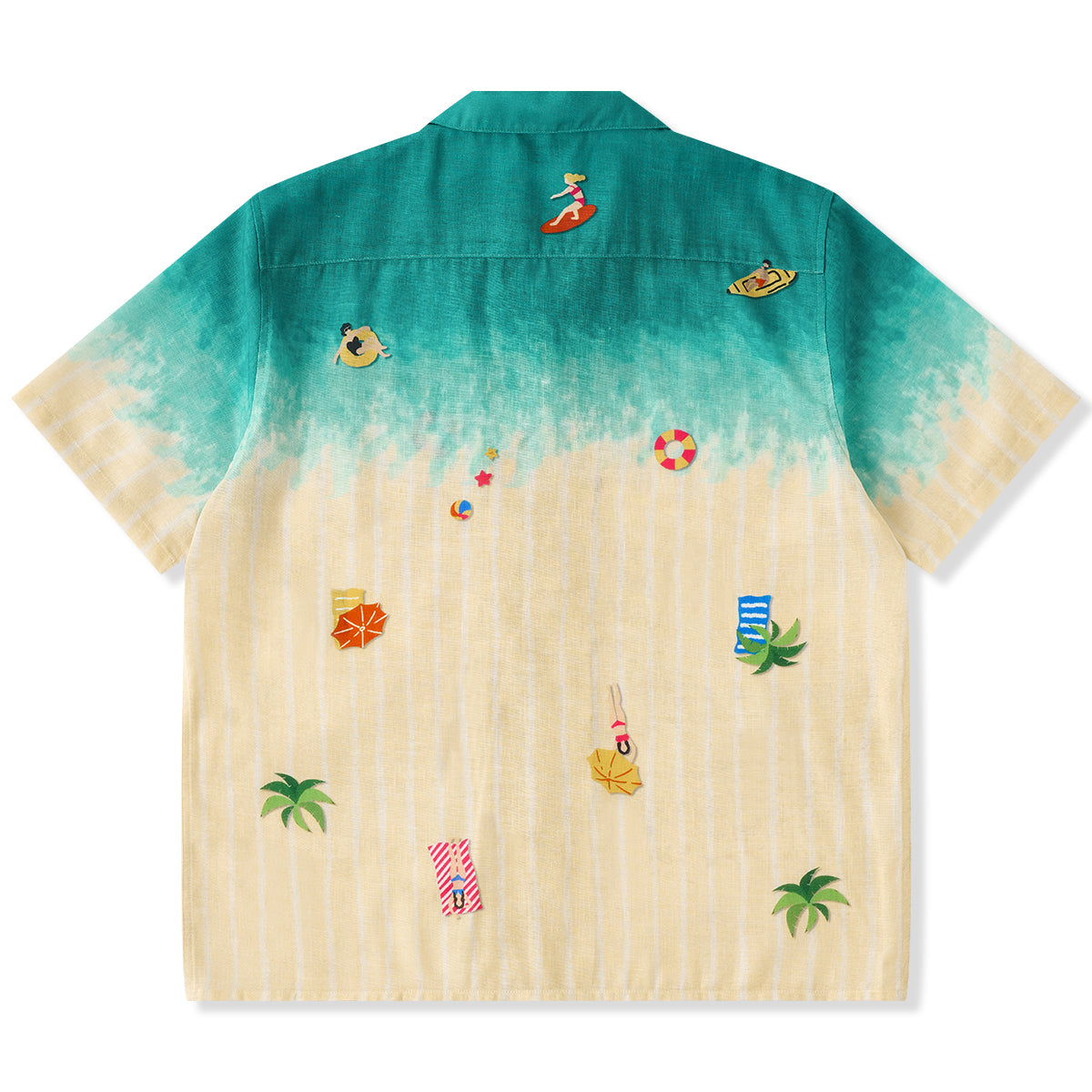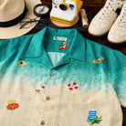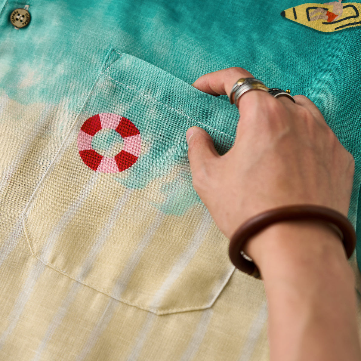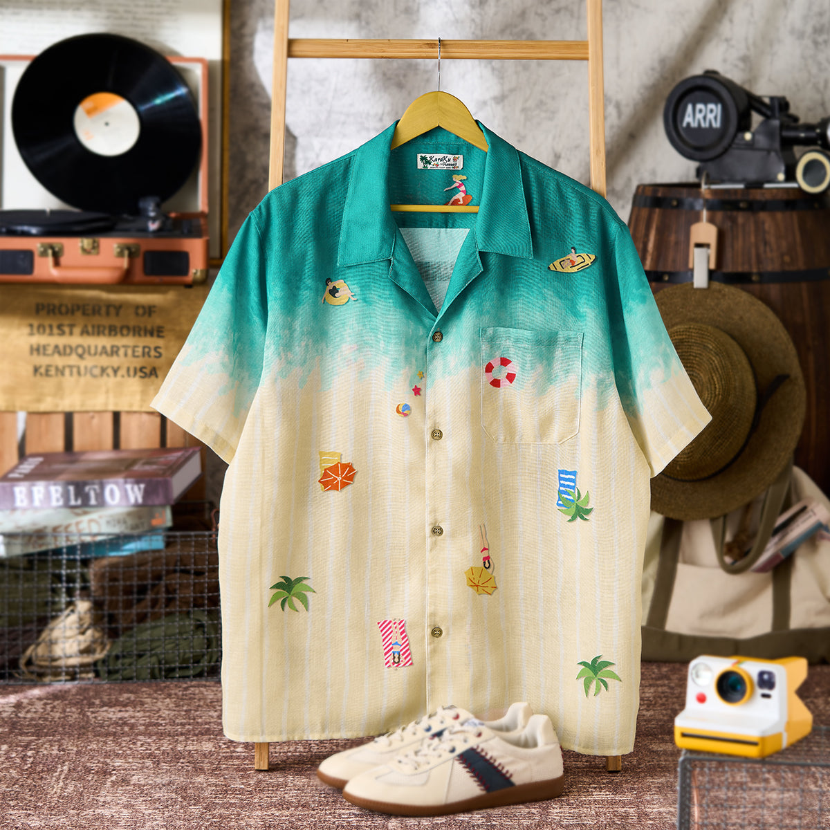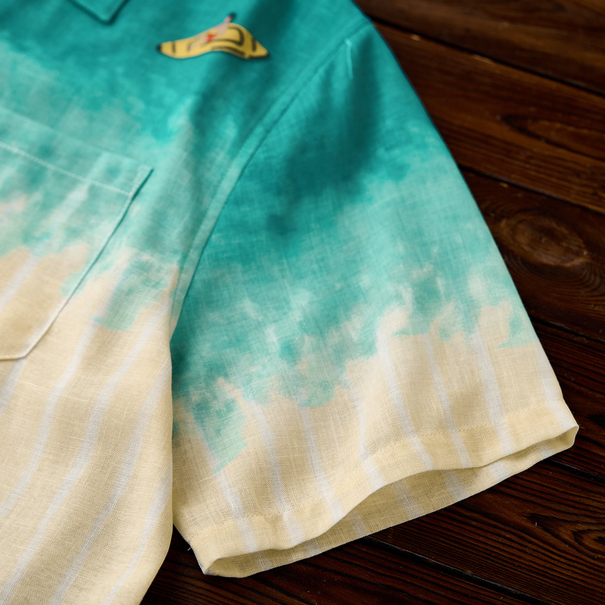 【予約】「ハワイのビーチ俯瞰」グラデーションフェイクコットンアロハシャツ