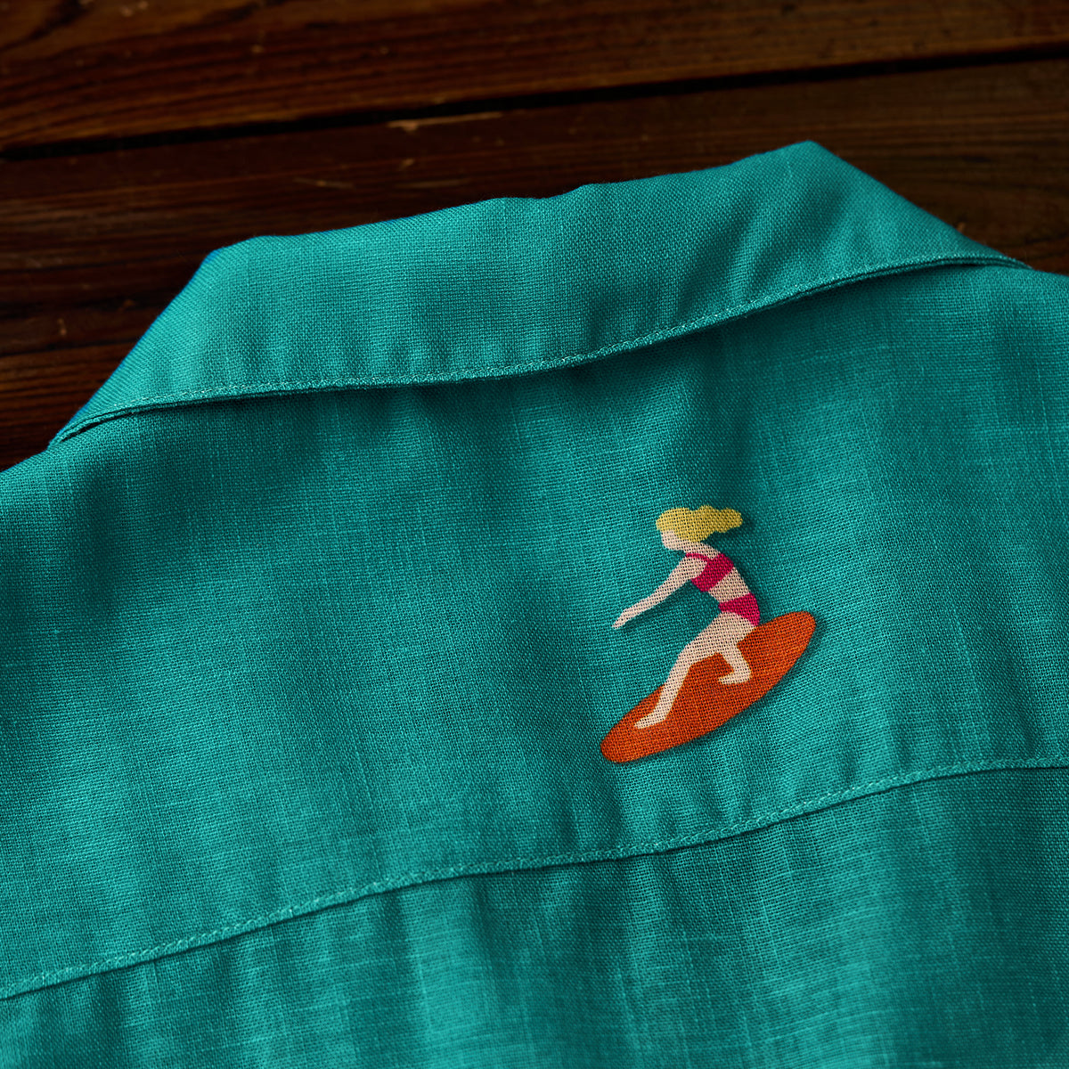 ポリエステルを使用した「フェイクコットン」は、綿のようなナチュラルな見た目を維持しつつ、「シワになりにくい」「速乾性が高い」というメリットがあります。薄手の生地感はドレープが出やすく、アロハ特有のリラックスしたシルエットを強調します。